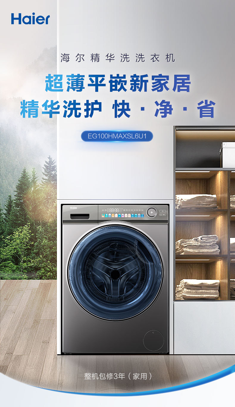 하이얼/하이얼 EG100HMAXSL6U1 10kg 대직경 세척 및 건조 통합 주파수 변환 드럼 세탁기스토어 가기