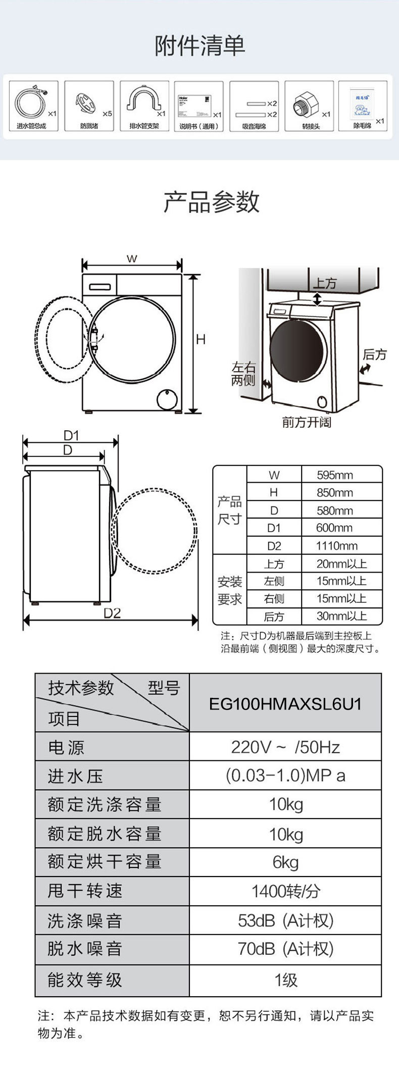 하이얼/하이얼 EG100HMAXSL6U1 10kg 대직경 세척 및 건조 통합 주파수 변환 드럼 세탁기