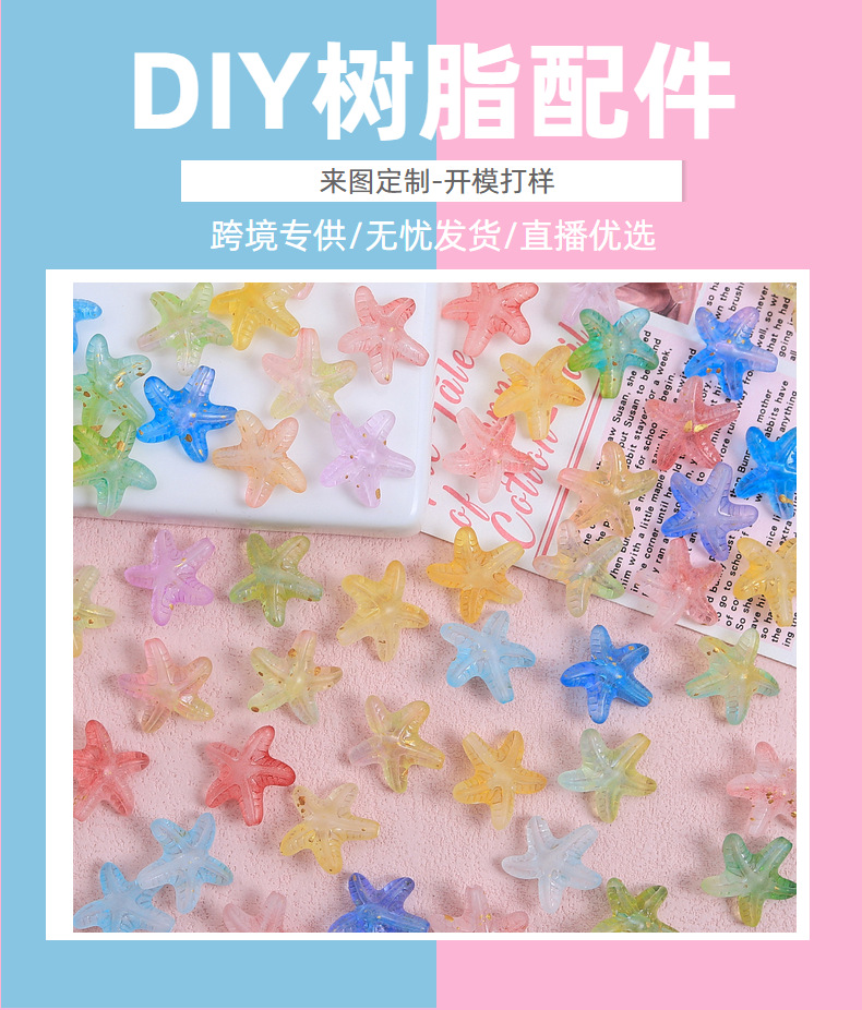 구멍 구슬 크림 접착제 DIY 수제 헤어 클립 냉장고 소재 수지 액세서리 도매를 통해 만화 그라디언트 불가사리스토어 가기