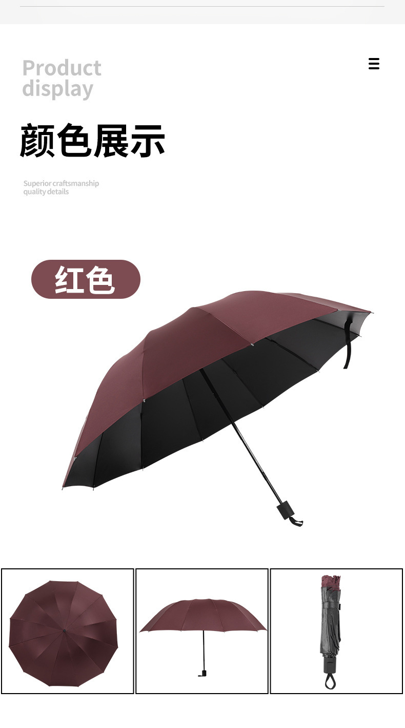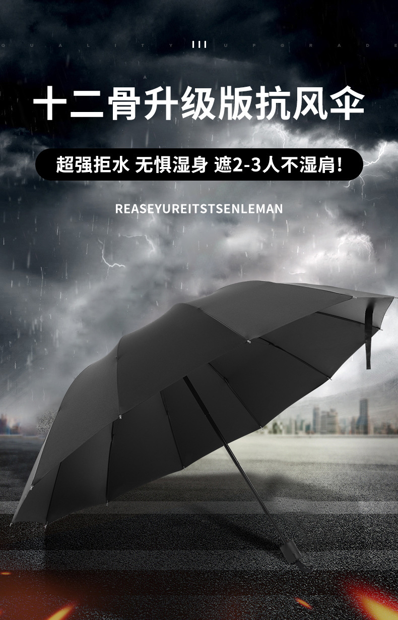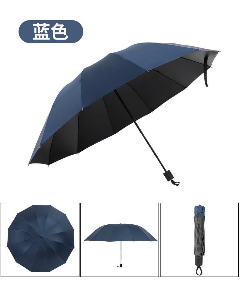 12-뼈 확대 검은 고무 우산 이중 사용 남성 비즈니스 우산 3 배 자외선 차단제 이중 광고 우산 도매