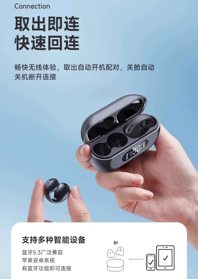 새로운 TWS 뼈 전도 무선 블루투스 헤드폰 클립 귀 미니 디지털 디스플레이 높은 음질 스포츠 진정한 소음 감소 x22스토어 가기