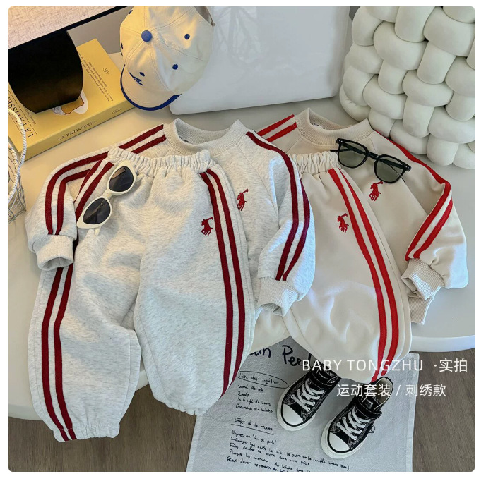 봄과 가을 면화 어린이 운동복과 운동복 정장 소년과 소녀를위한 긴팔 바지 중대형 어린이 스포츠 바지 세트 아동 의류 도매