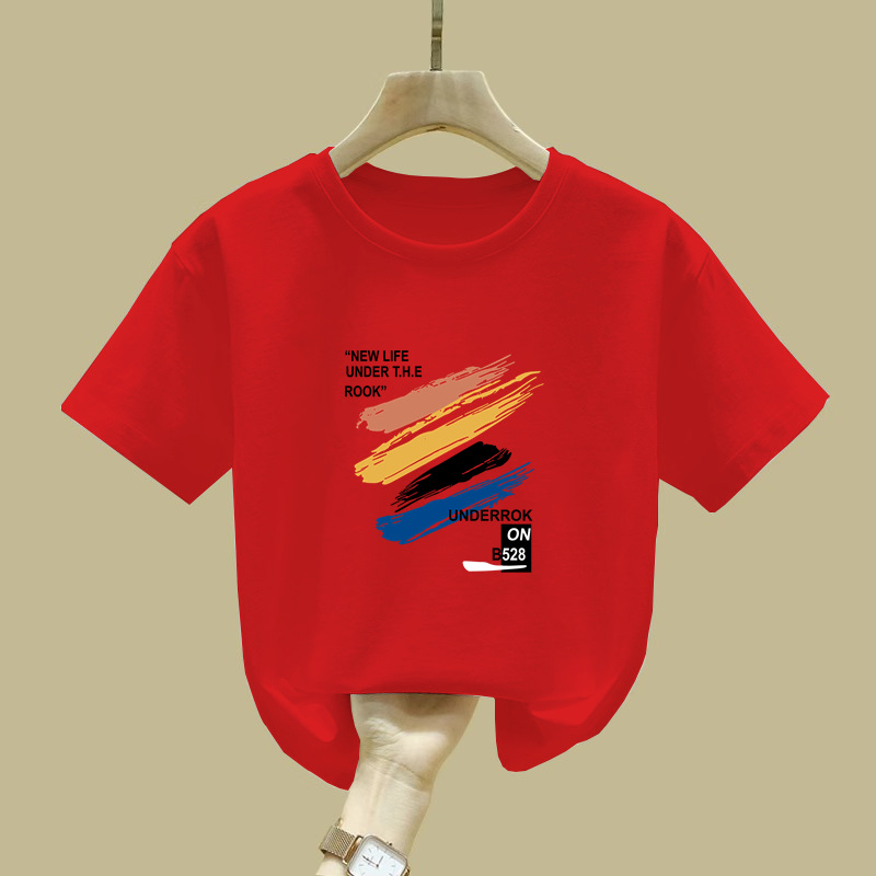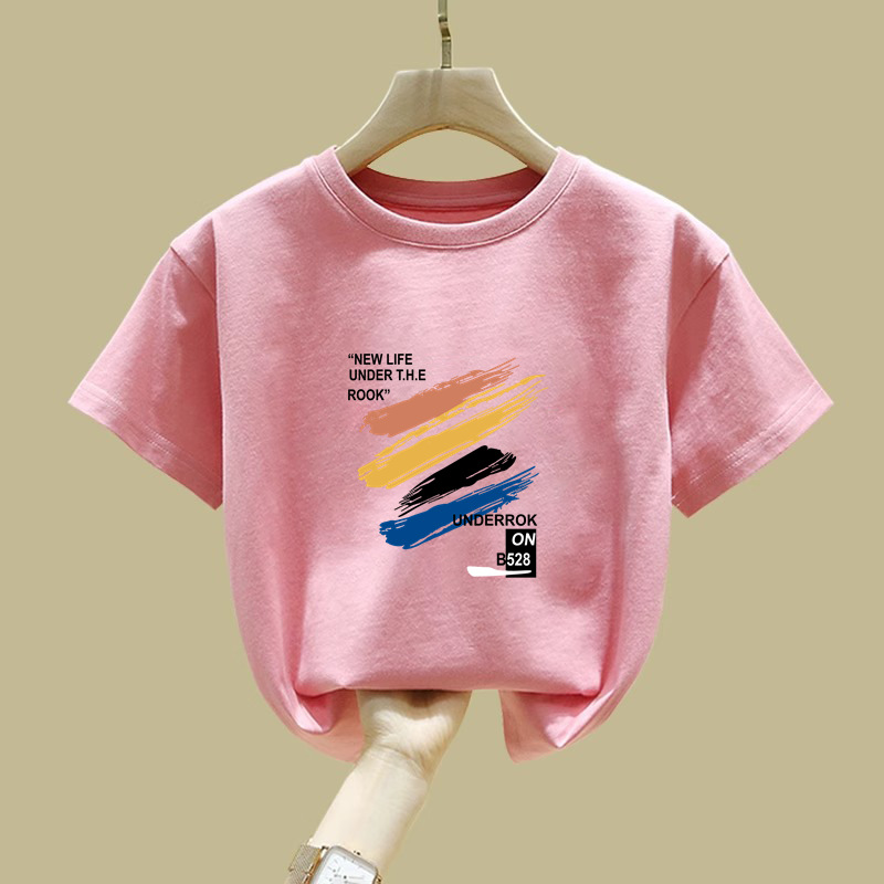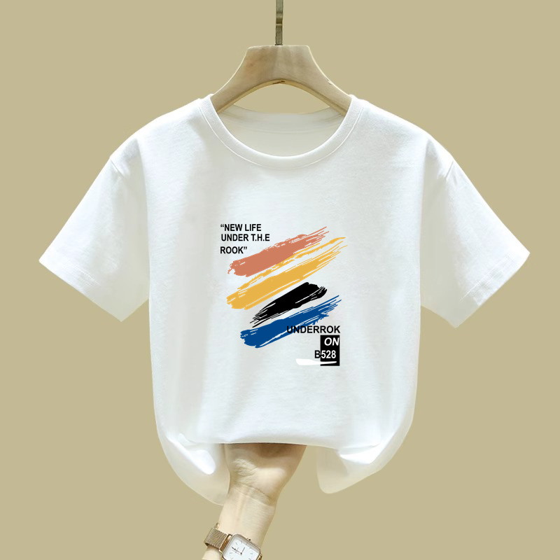 2397 # 소년 소녀를위한 어린이 페인트 인쇄 코튼 반팔 티셔츠 여름 착용 게으른 틈새 미중 및 큰 어린이 코튼 탑