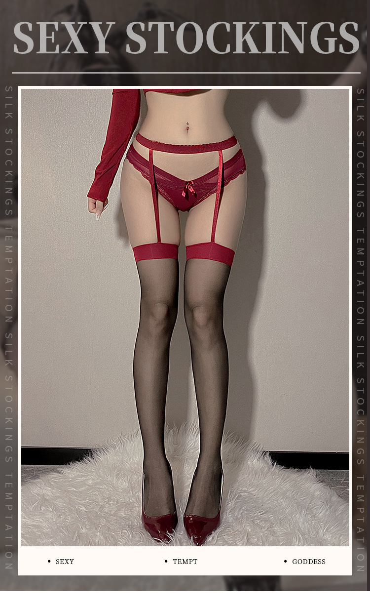 섹시한 슬링 원피스 양말 순수한 욕망 레드 실크 스타킹 여성의 대비 컬러 레드 에지 블랙 실크 롱 튜브 섹스 초박형 섹스 순수한 욕망스토어 가기