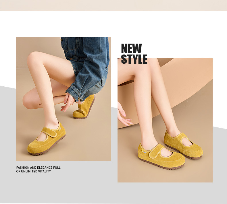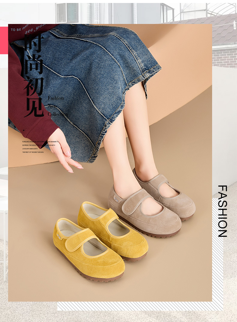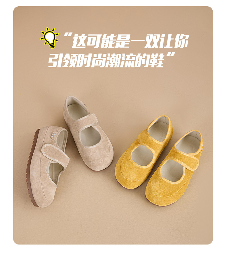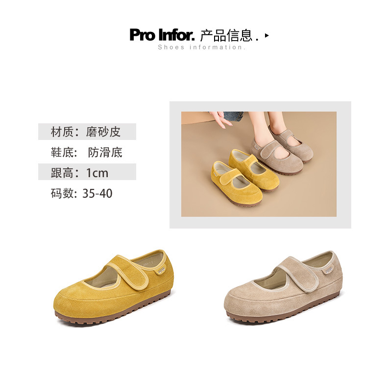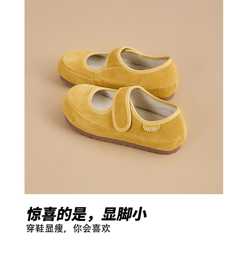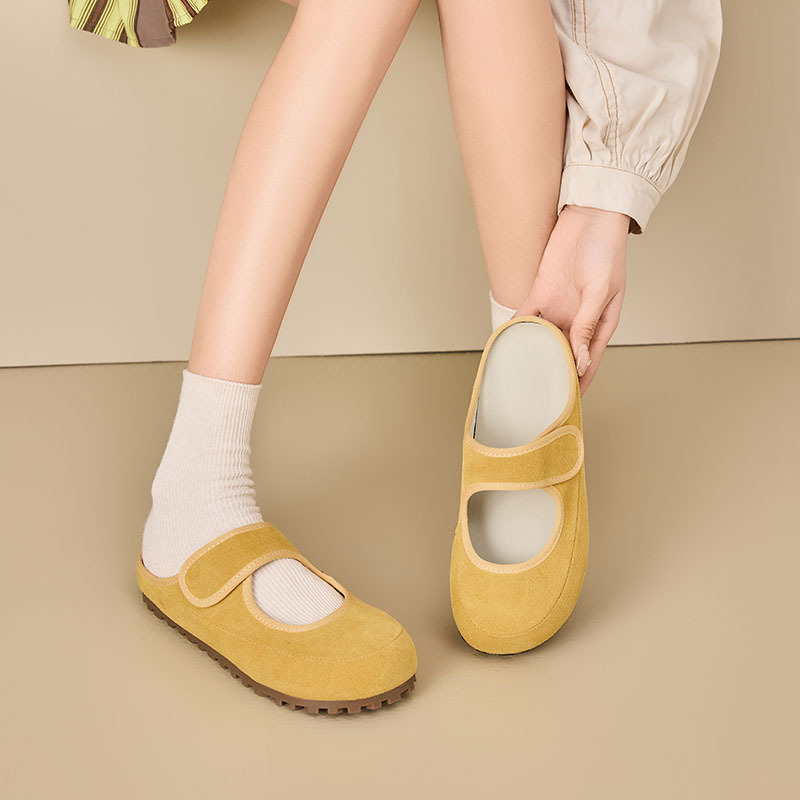 메리 제인 여성 신발 2025 봄 새로운 편안한 서리 가죽 정품 가죽 귀여운 벨크로 얕은 노란색 신발스토어 가기