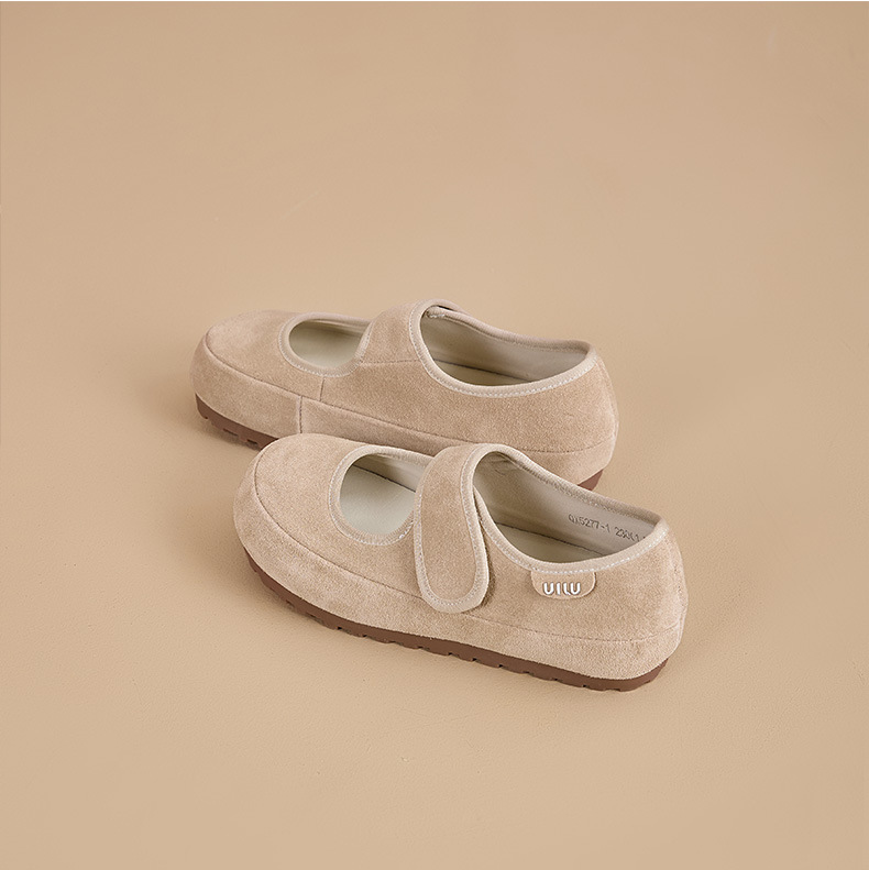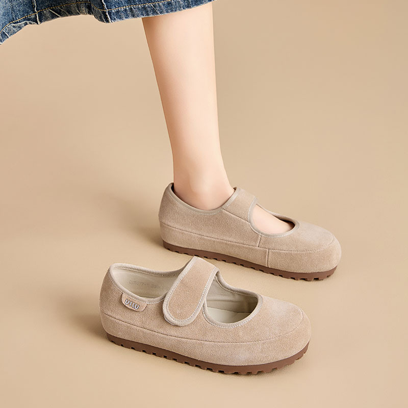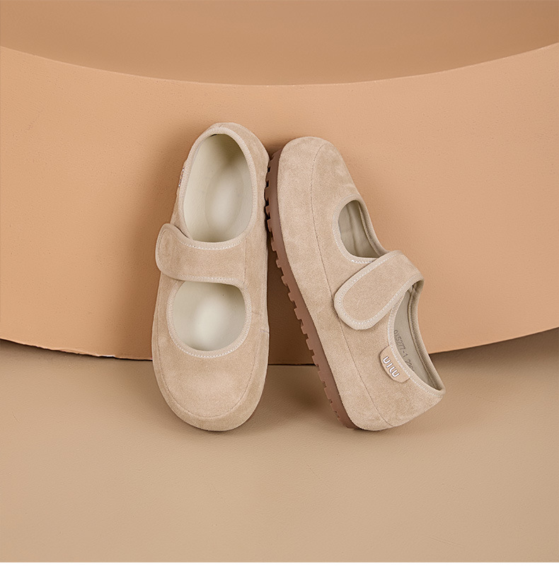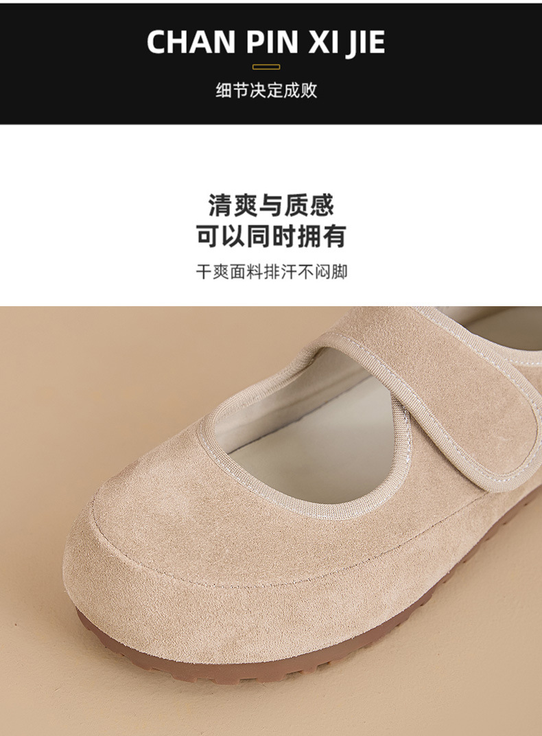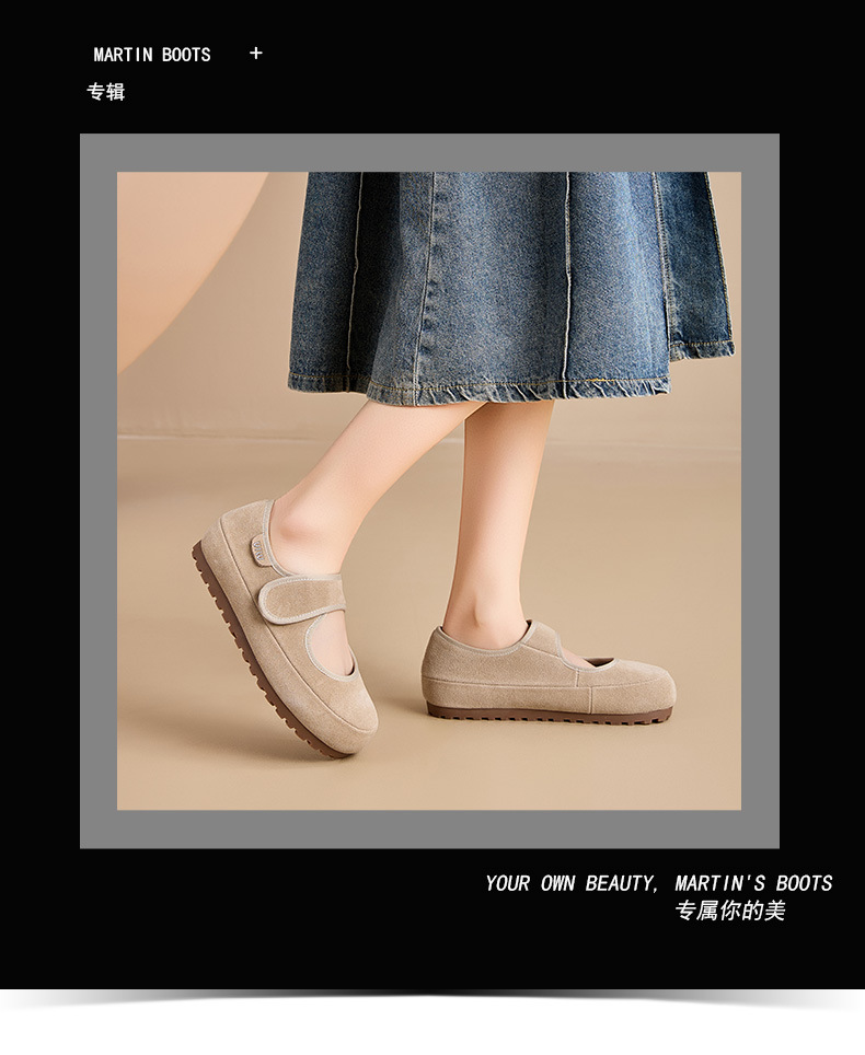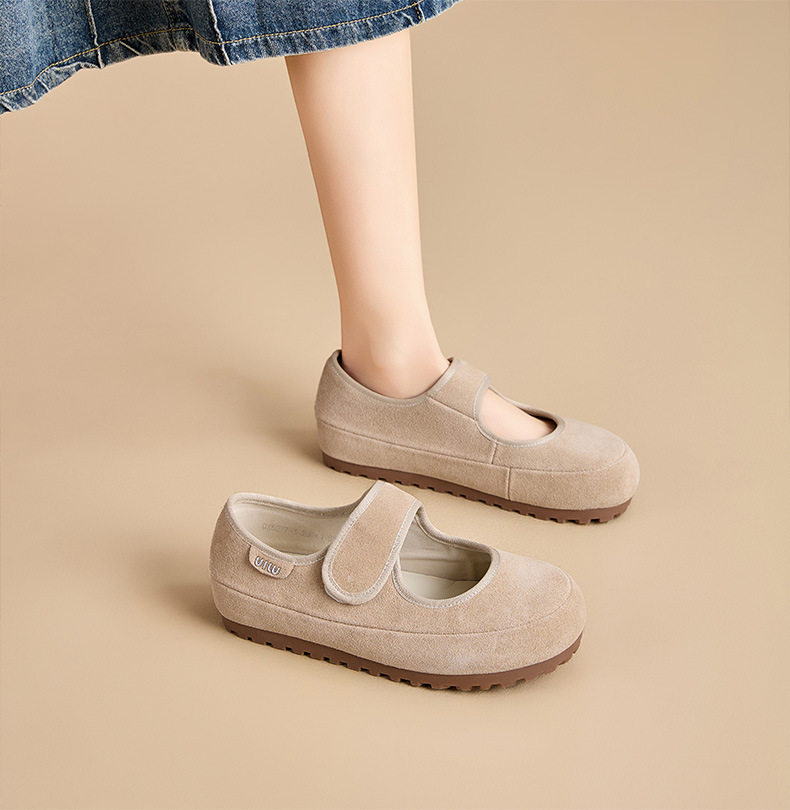 메리 제인 여성 신발 2025 봄 새로운 편안한 서리 가죽 정품 가죽 귀여운 벨크로 얕은 노란색 신발스토어 가기