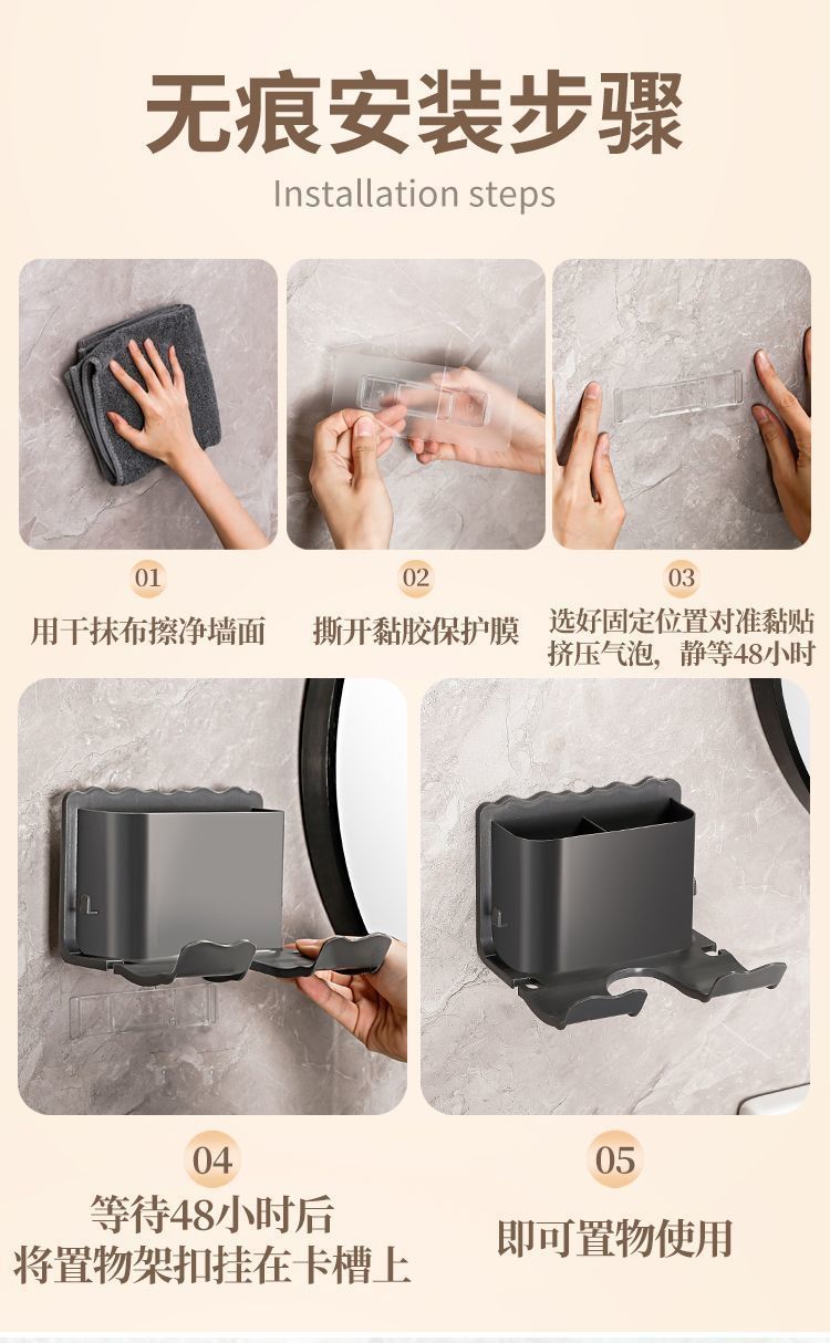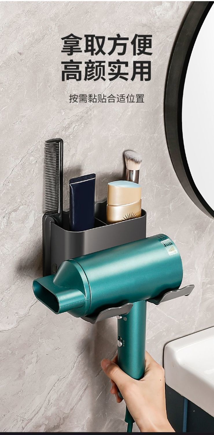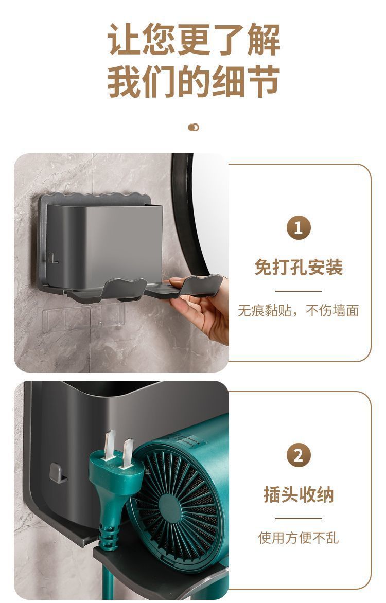 화장실 스토리지 랙 새로운 헤어 드라이어 스토리지 랙 욕실 벽 통합 펀치없는 벽 장착 헤어 드라이어 브래킷스토어 가기