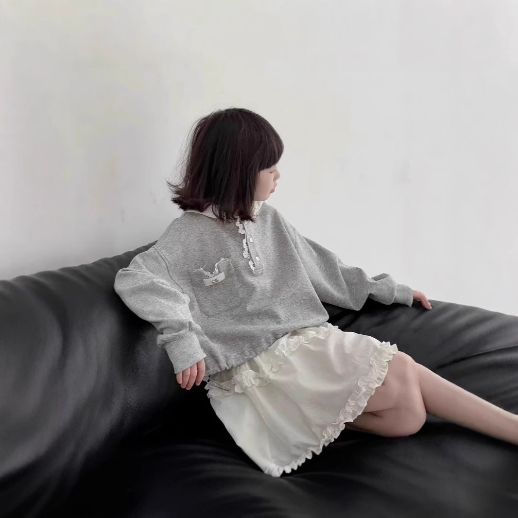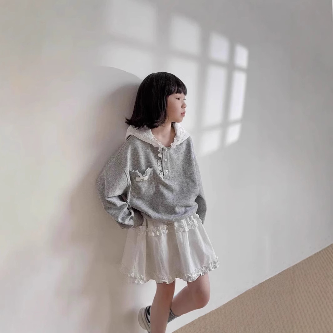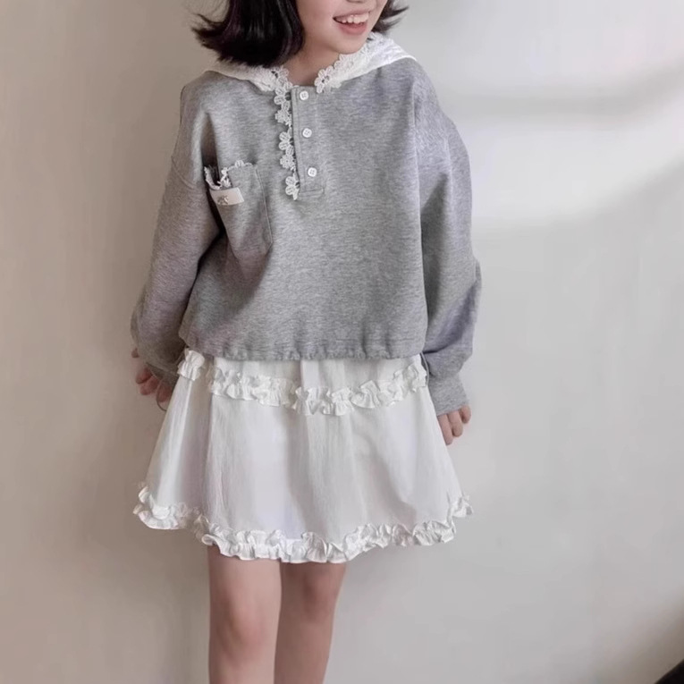 레이스 걸스 후드 땀 2025 봄 새로운 어린이 봄과 가을 스타일 한국 스타일 서양식 탑