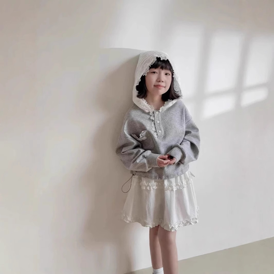 레이스 걸스 후드 땀 2025 봄 새로운 어린이 봄과 가을 스타일 한국 스타일 서양식 탑스토어 가기
