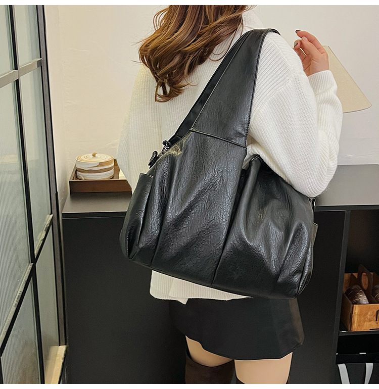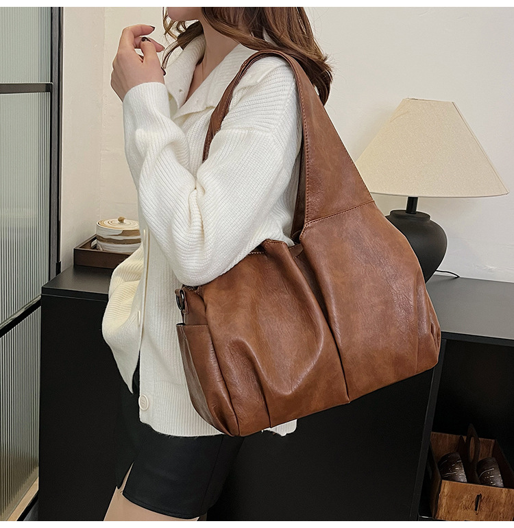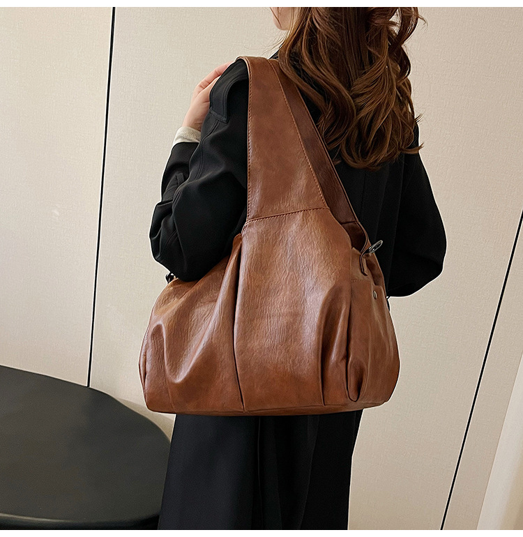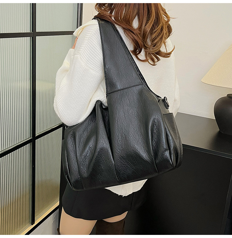 올해 인기있는 대용량 가방 여성 2025 새로운 패션 간단한 복고풍 단색 통근 틈새 숄더백
