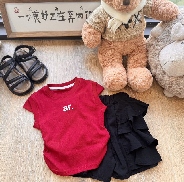 여자 민소매 세트 여름 외국 스타일 한국 스타일 케이크 스커트 슬리밍 캐주얼 플리츠 탑 2 조각 유행 50012