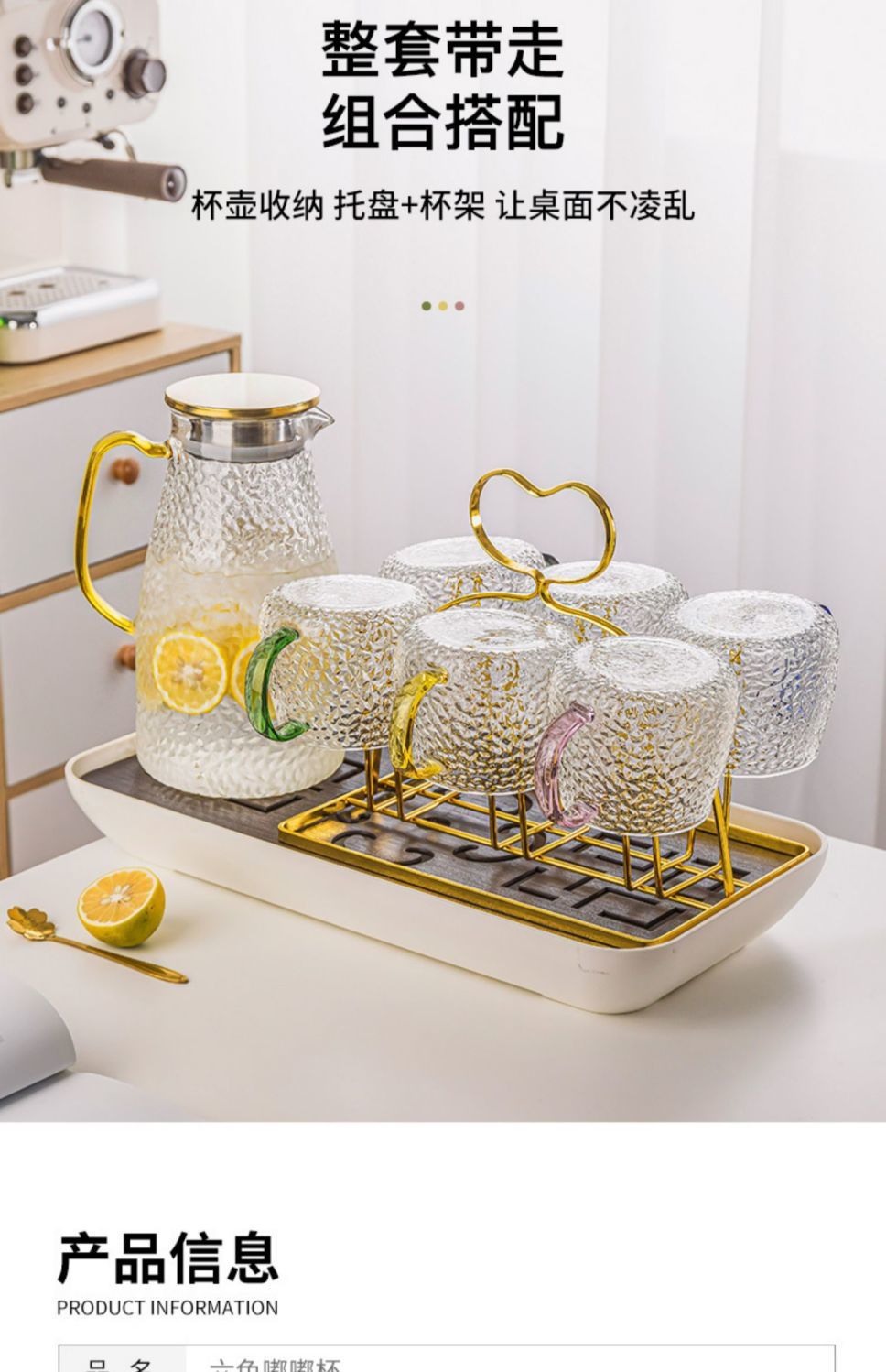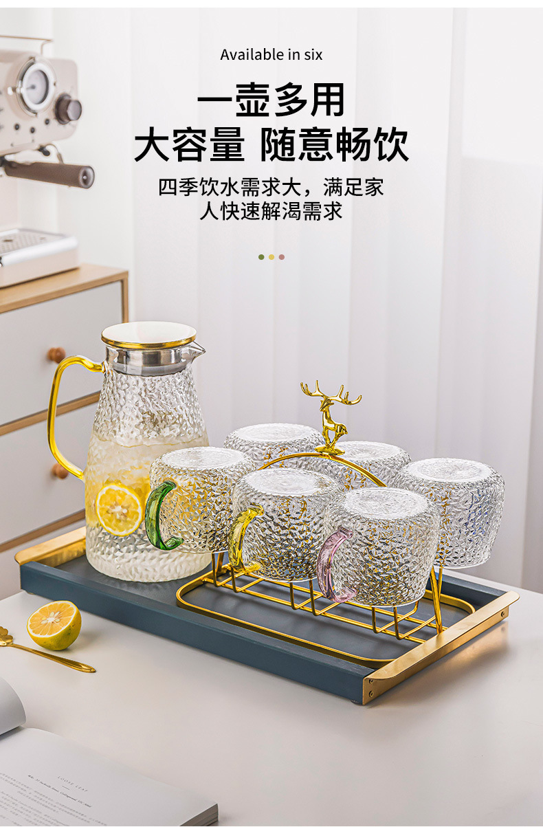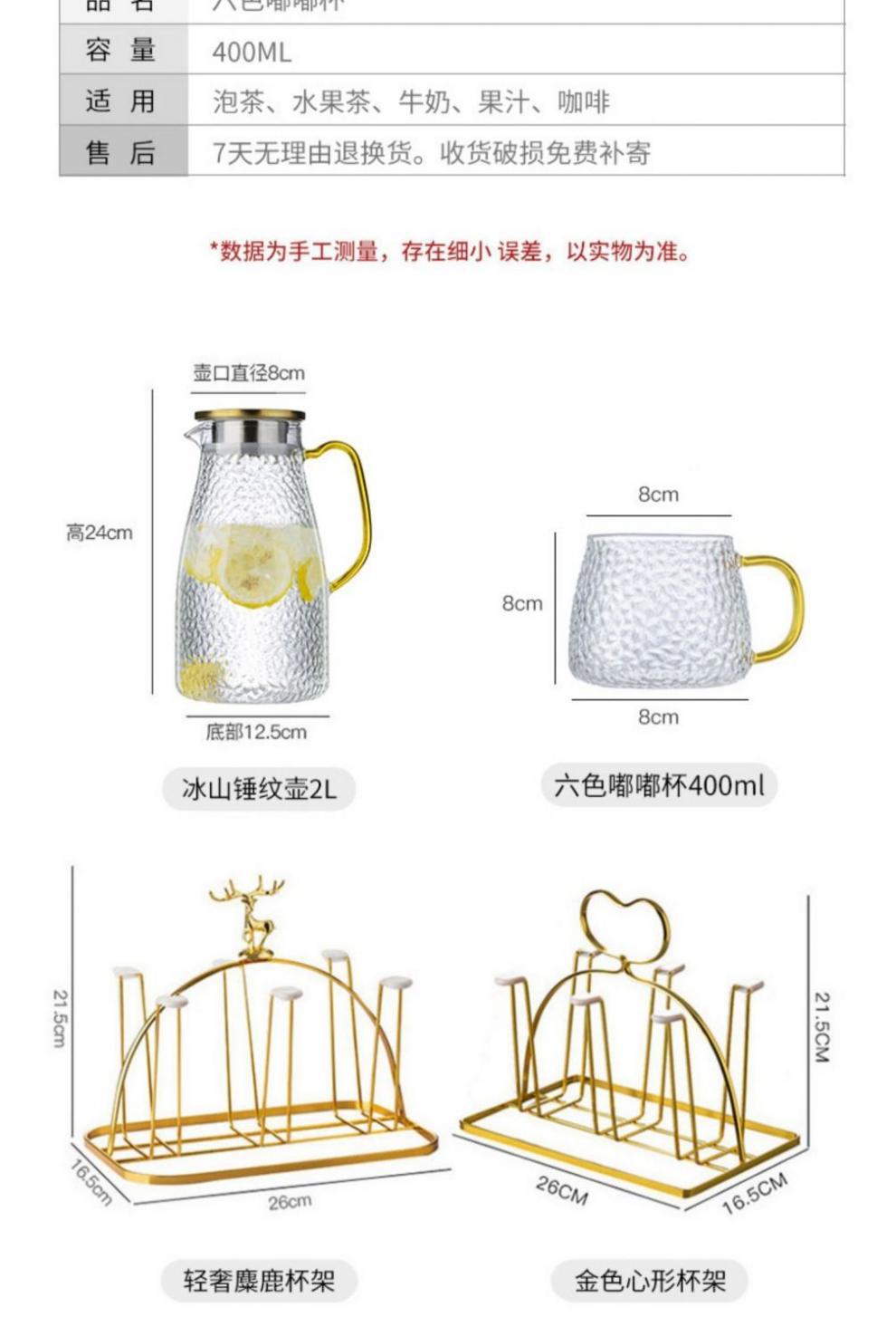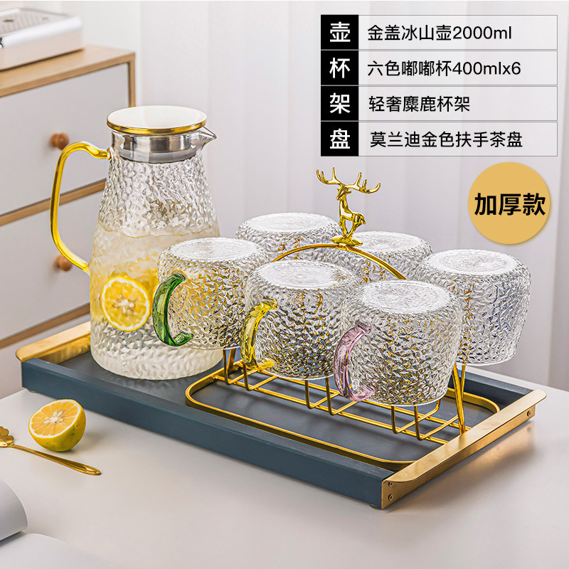 • 6색 컵 빙산 망치 패턴 냄비 + 엘크 컵 홀더 골드 팔걸이 차 트레이