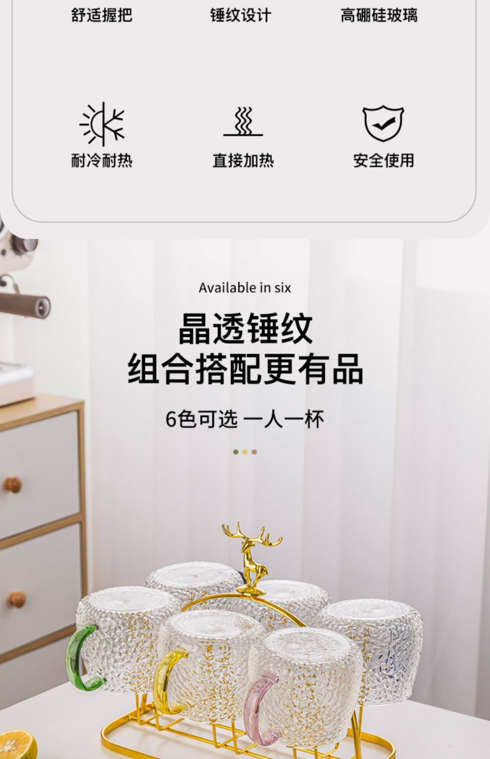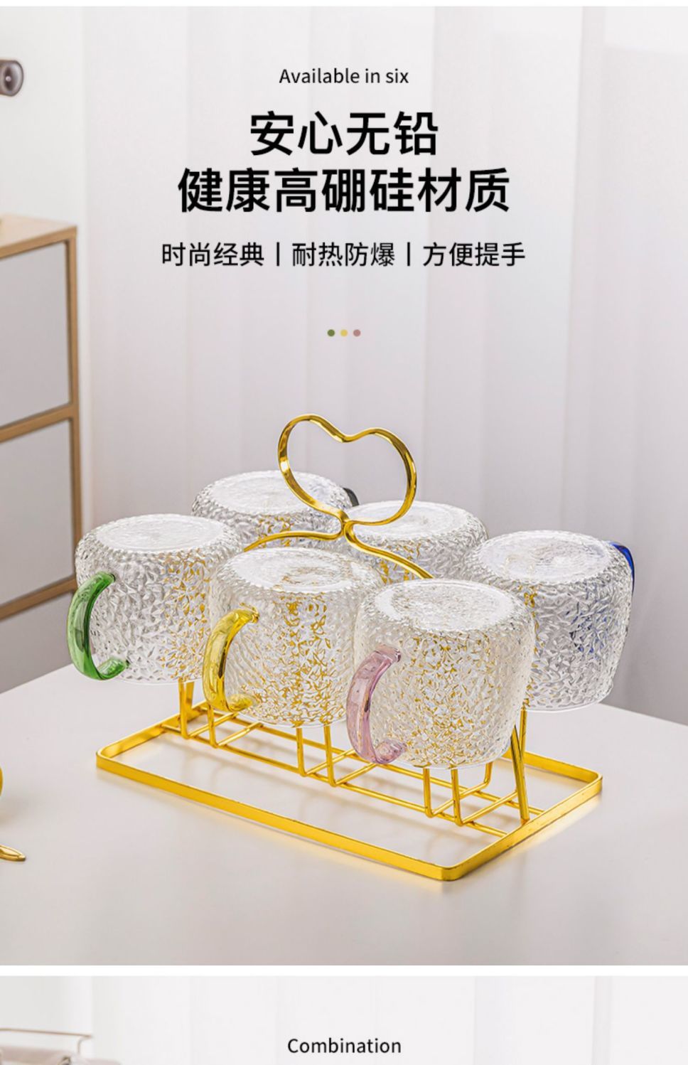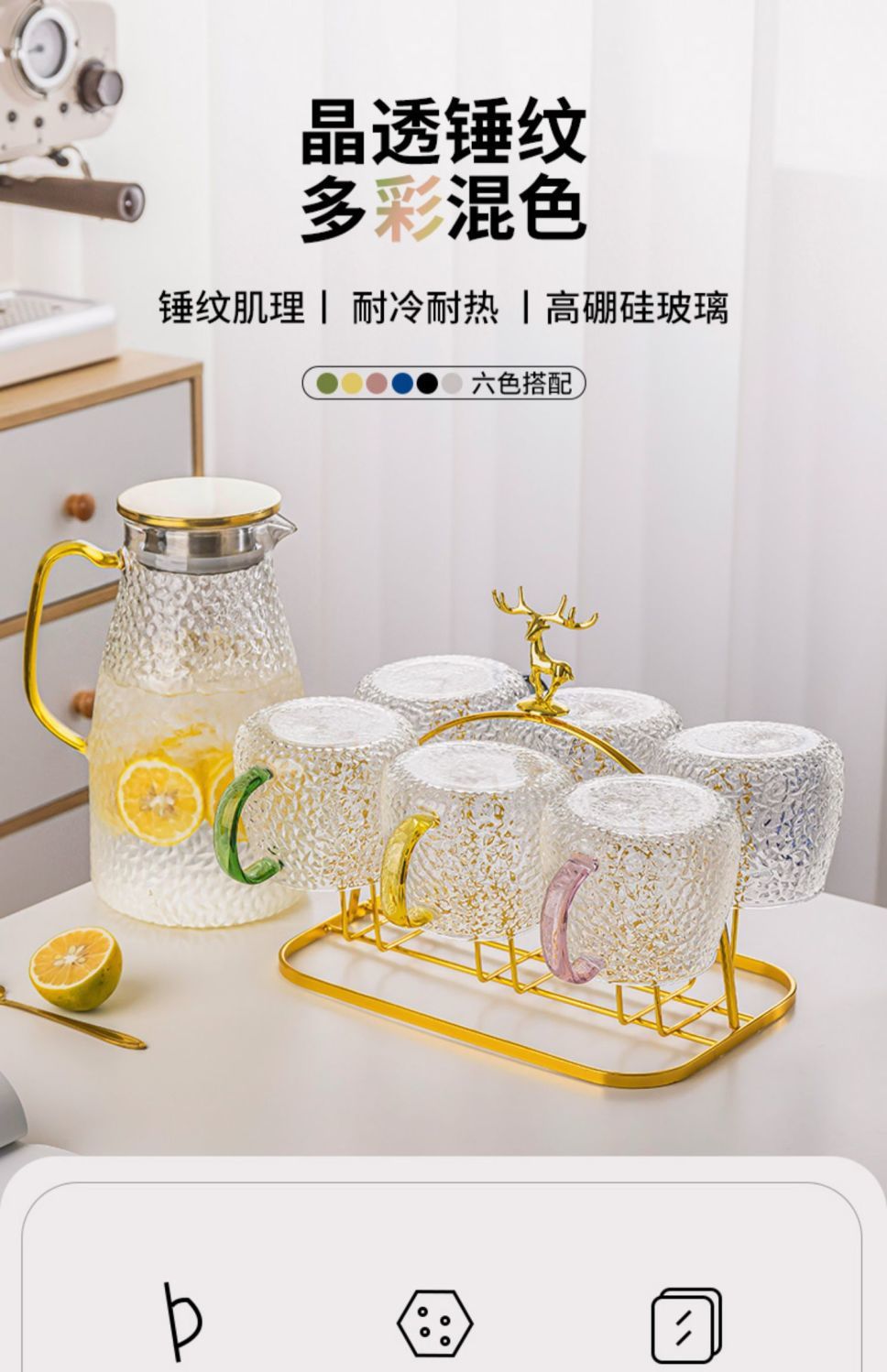 • 6색 컵 빙산 망치 패턴 냄비 + 엘크 컵 홀더 골드 팔걸이 차 트레이