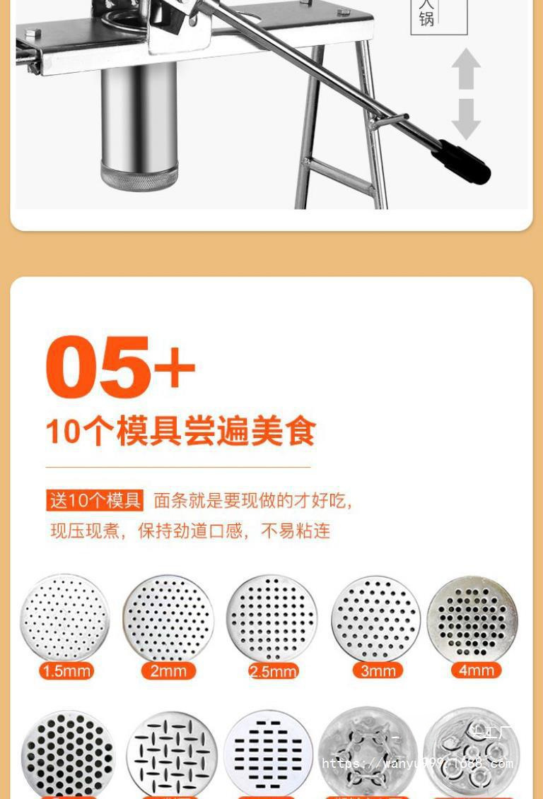 스테인레스 스틸 국수 기계 작은 국수 프레스 수동 강물 낚시 기계 7 금형 가정용 상업