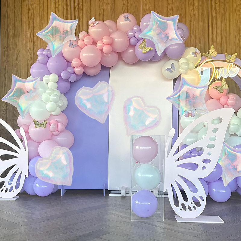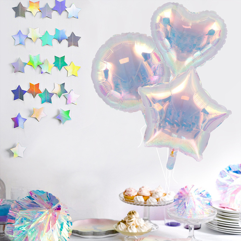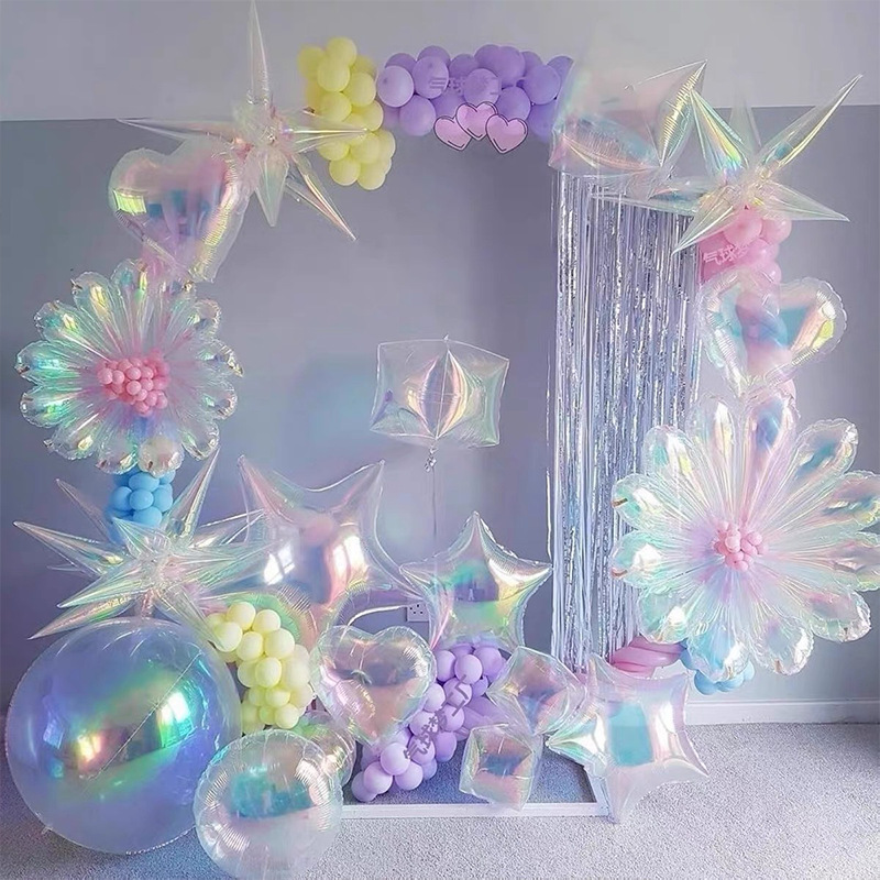 크로스 미러 투명 화려한 그라데이션 다섯개 별 사랑 결혼식 생일 파티 파티 배경 장식 알루미늄 풍선스토어 가기