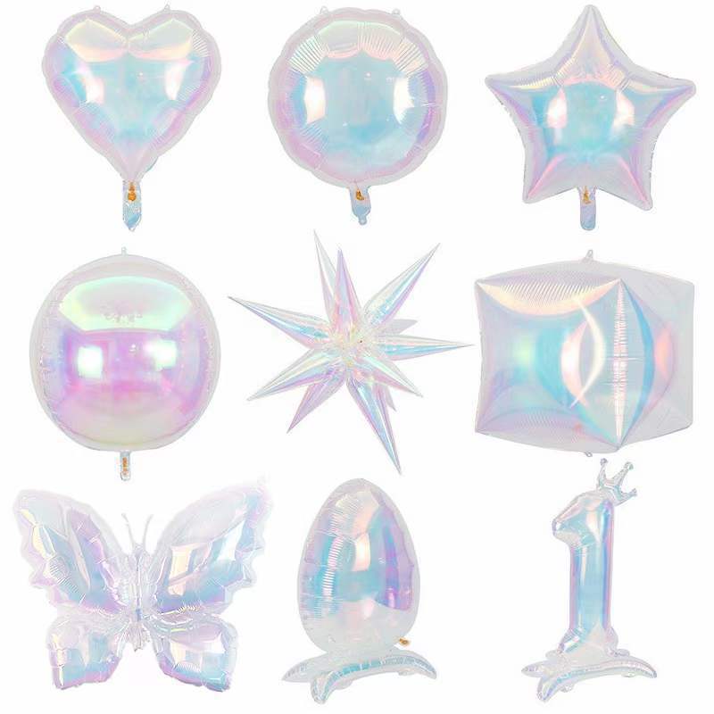 크로스 미러 투명 화려한 그라데이션 다섯개 별 사랑 결혼식 생일 파티 파티 배경 장식 알루미늄 풍선