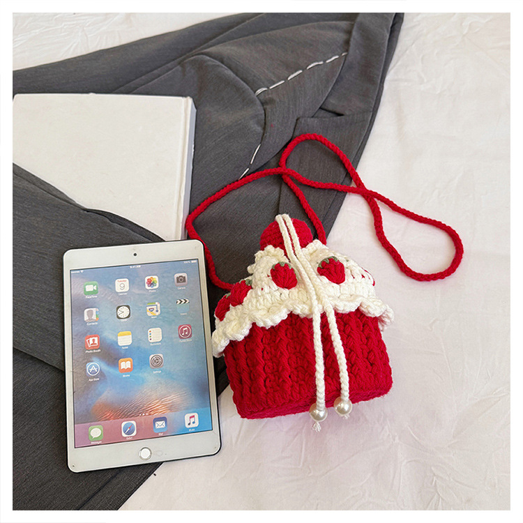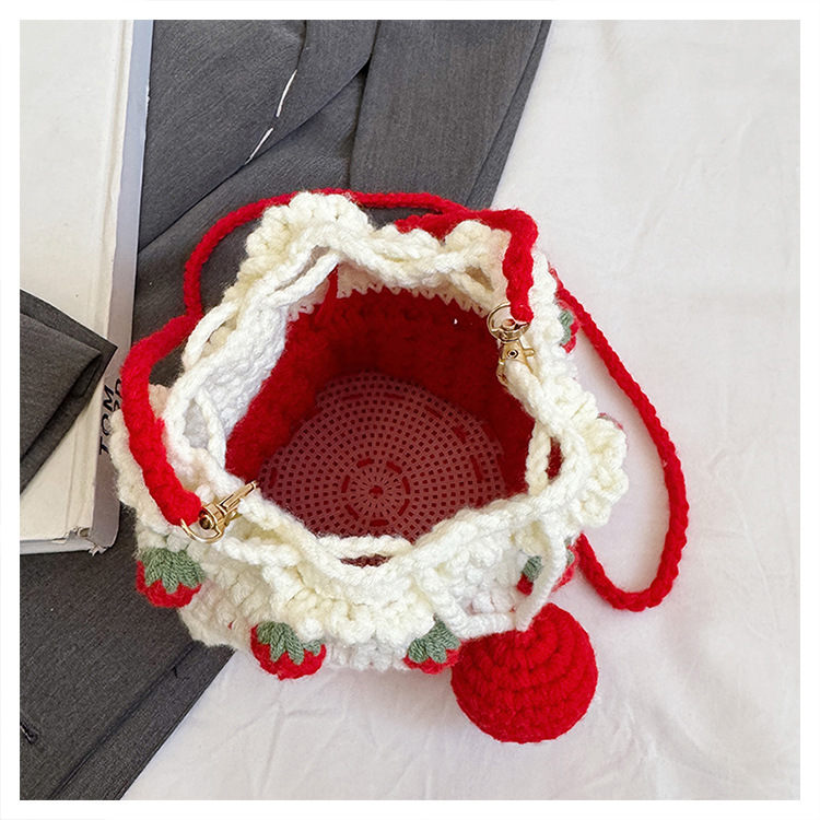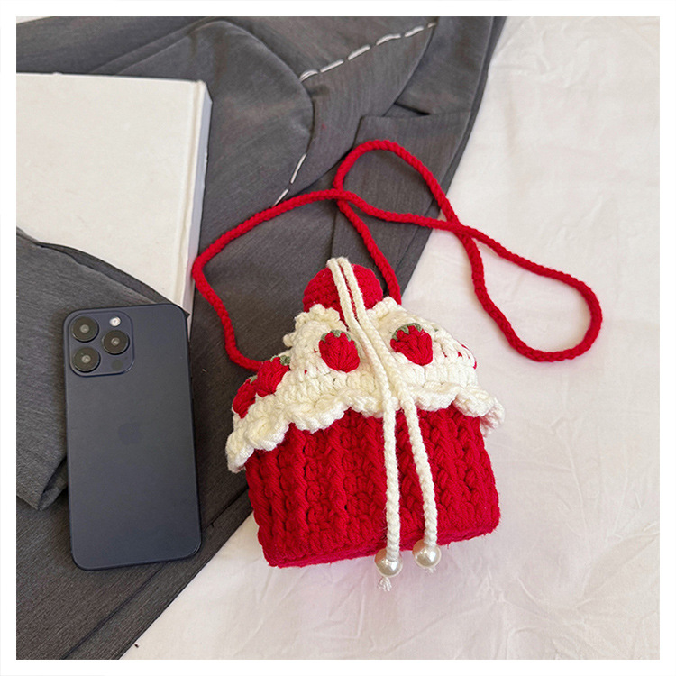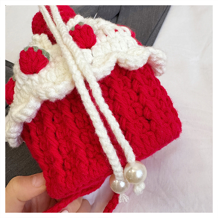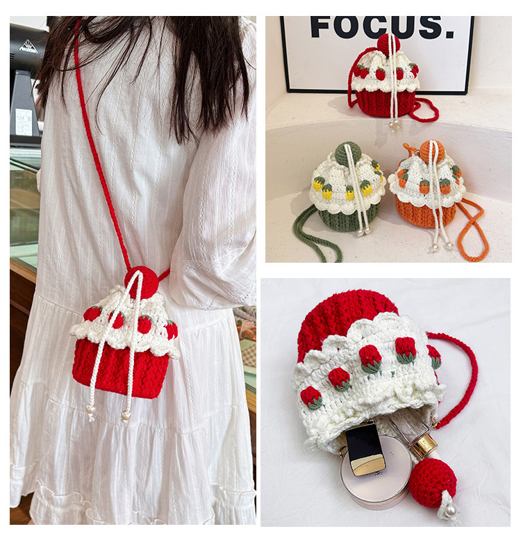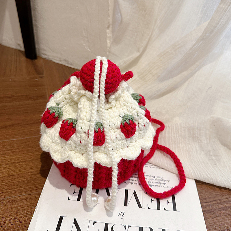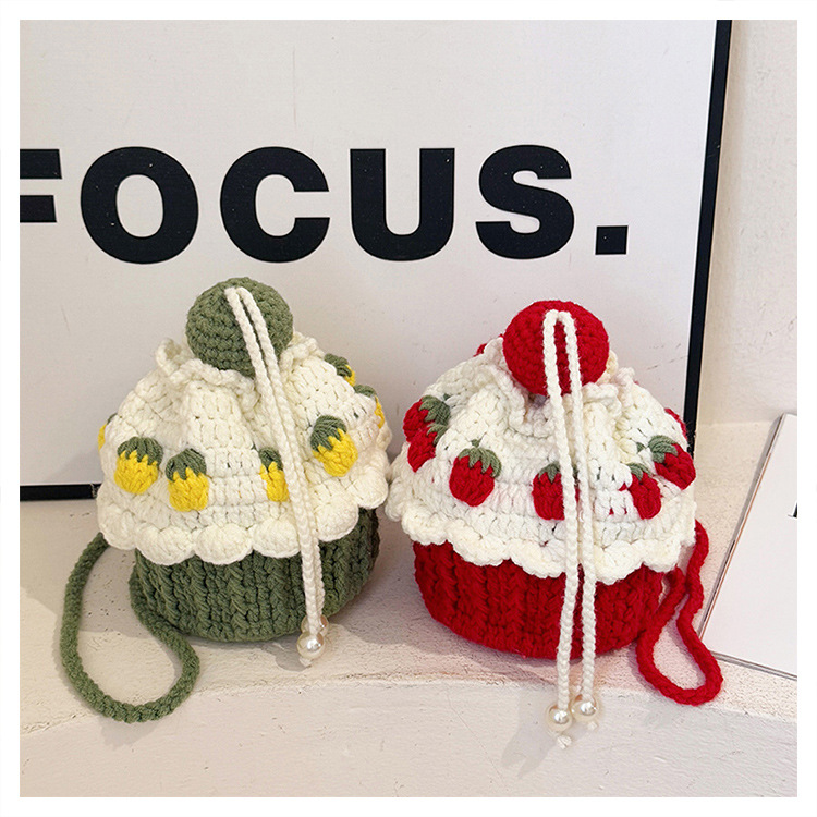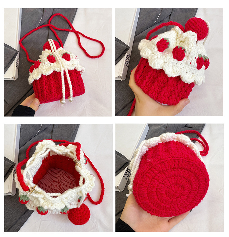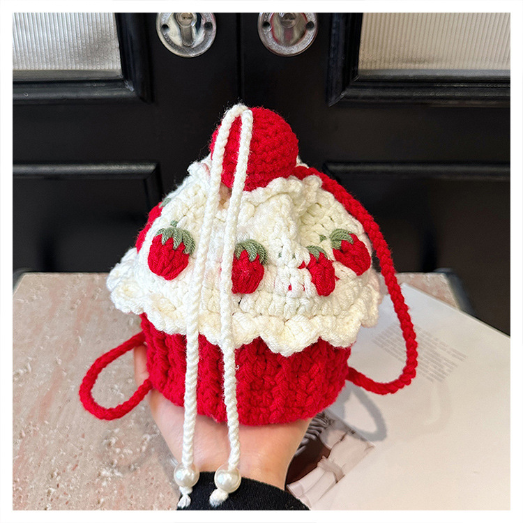 딸기 가방 수제 DIY 케이크 가방 양모 니트 크로 셰 뜨개질 마무리 어깨 가방 여자 친구 선물