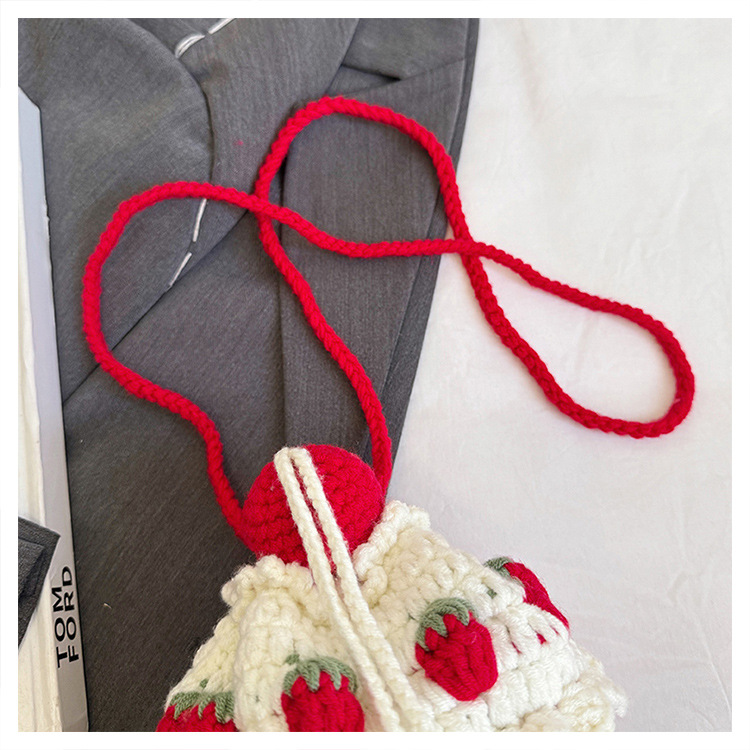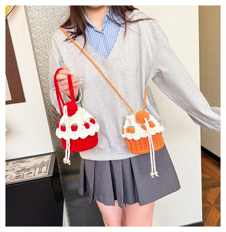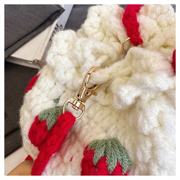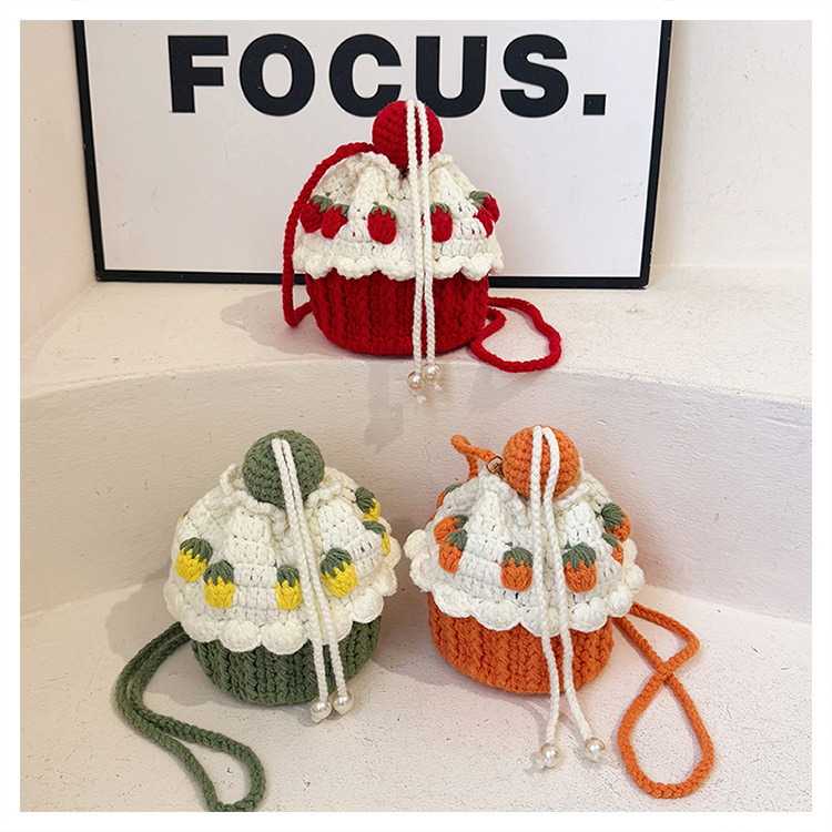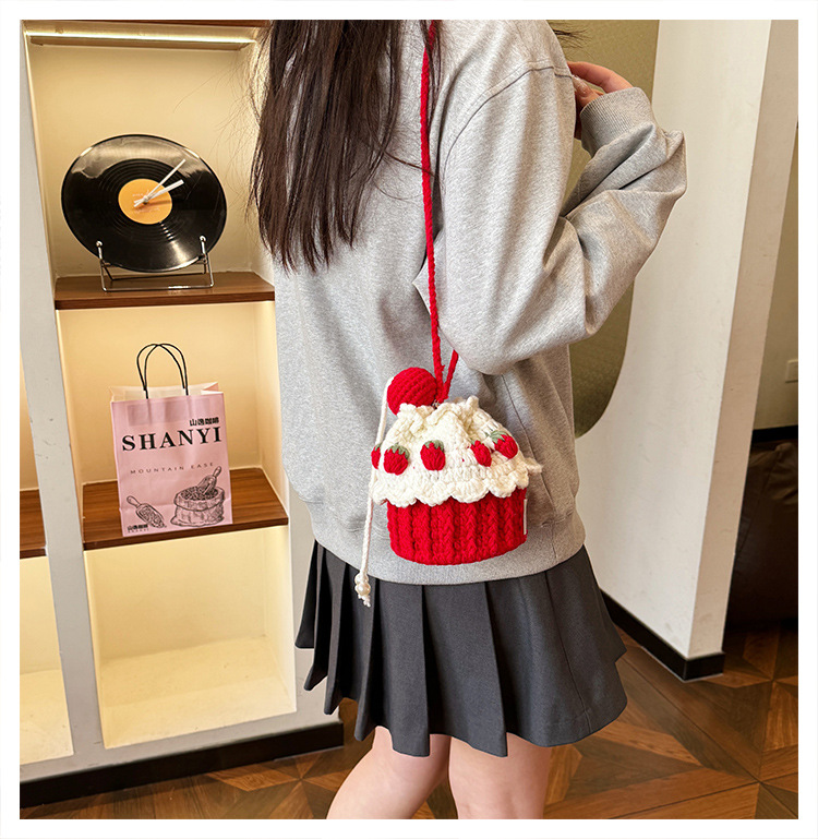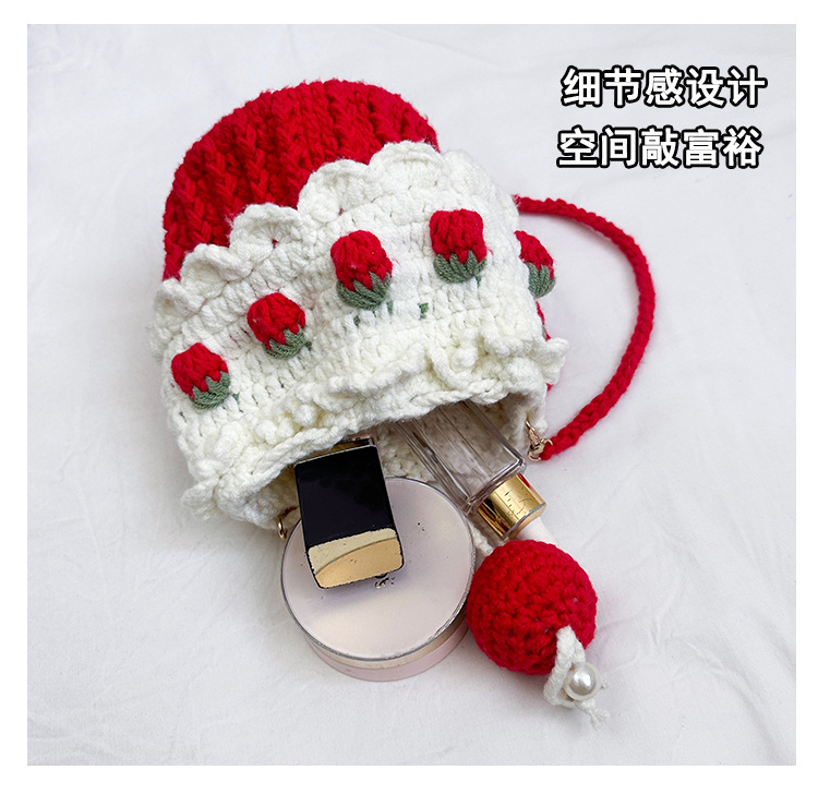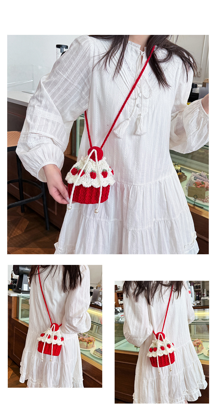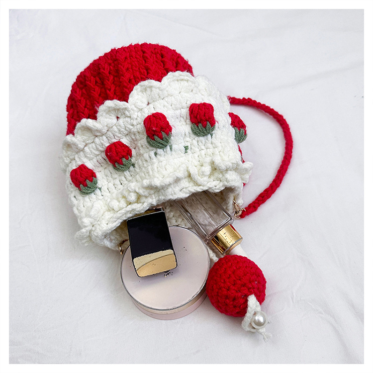 딸기 가방 수제 DIY 케이크 가방 양모 니트 크로 셰 뜨개질 마무리 어깨 가방 여자 친구 선물
