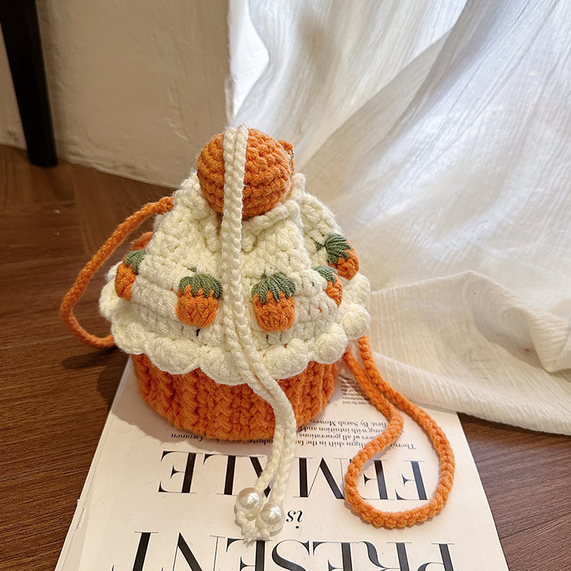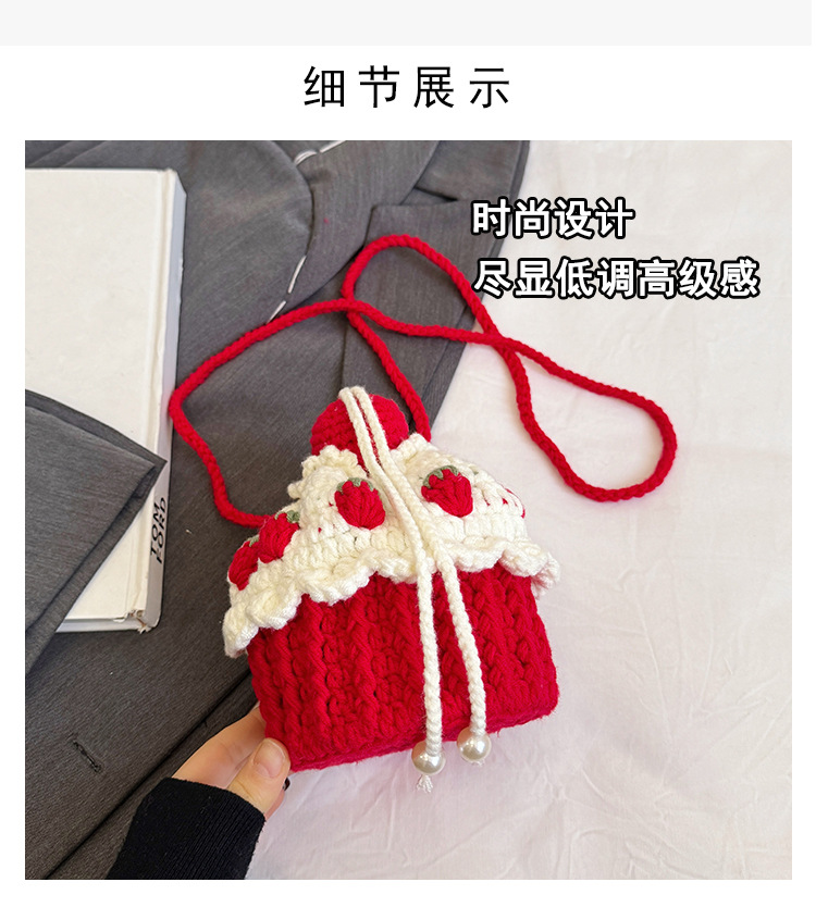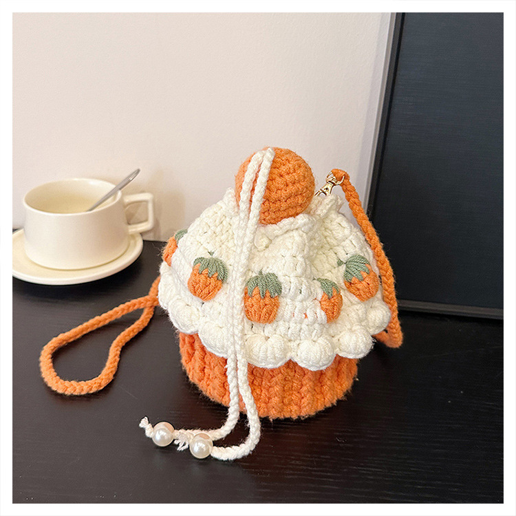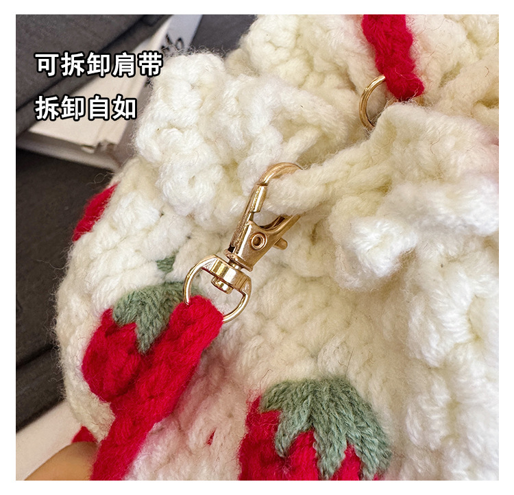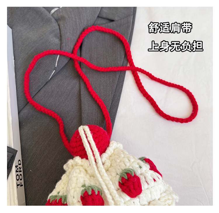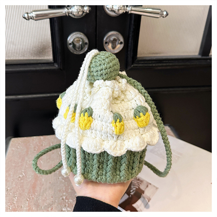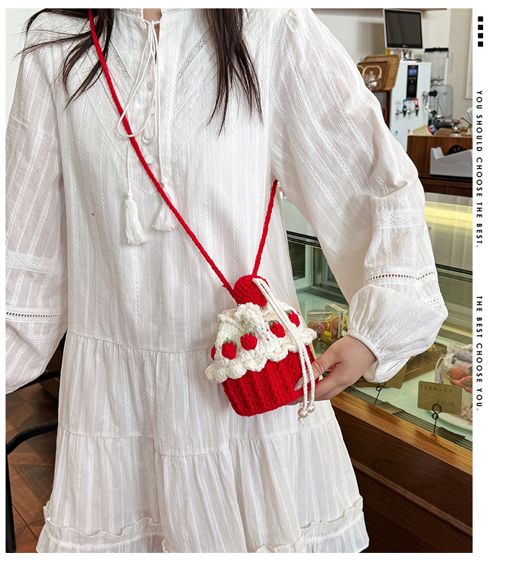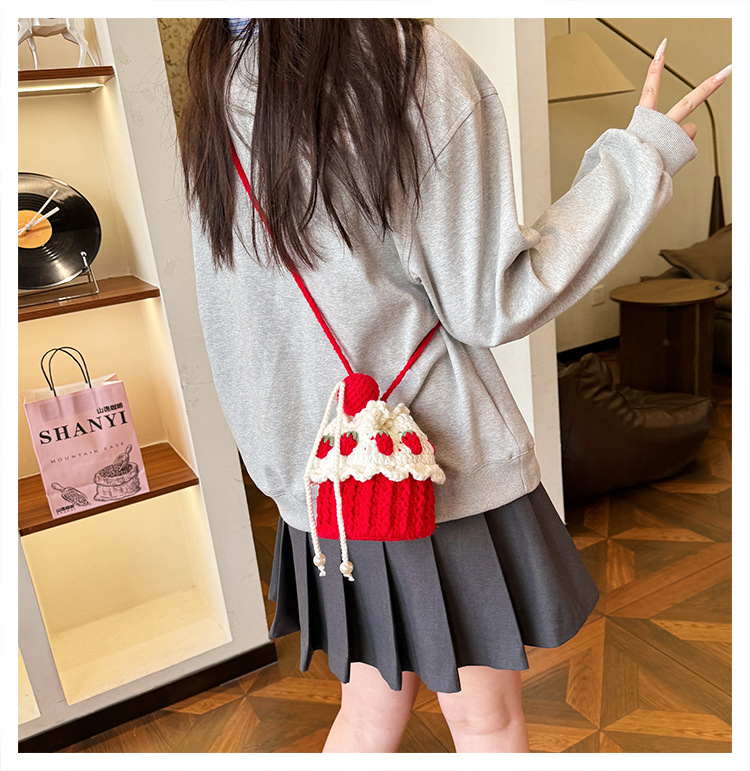 딸기 가방 수제 DIY 케이크 가방 양모 니트 크로 셰 뜨개질 마무리 어깨 가방 여자 친구 선물