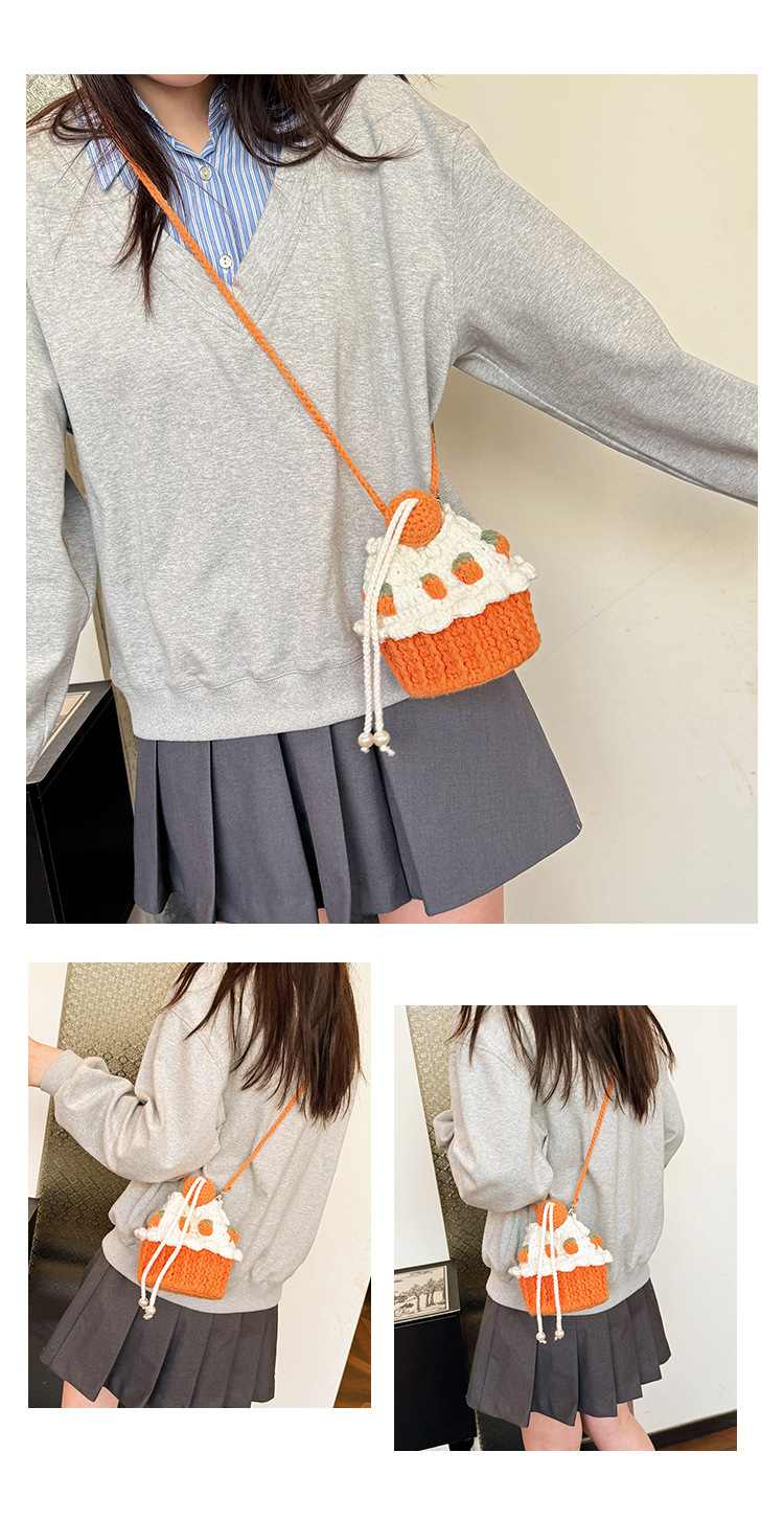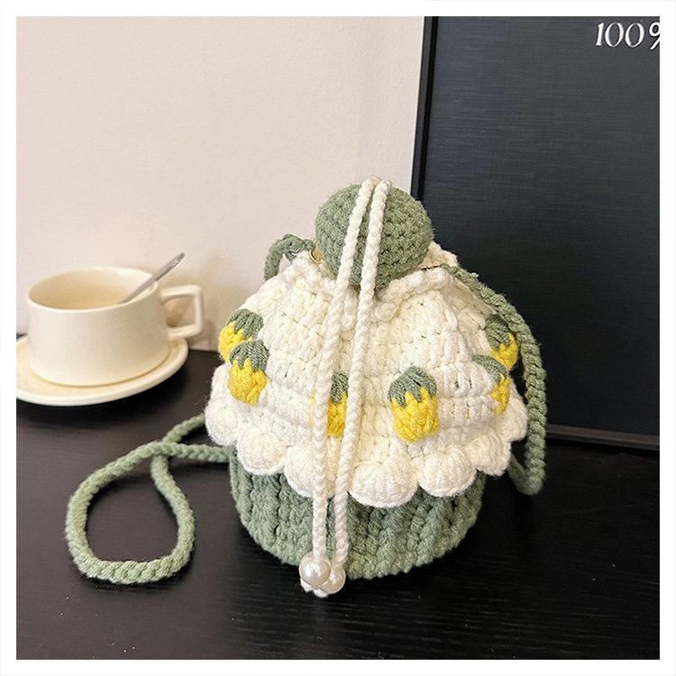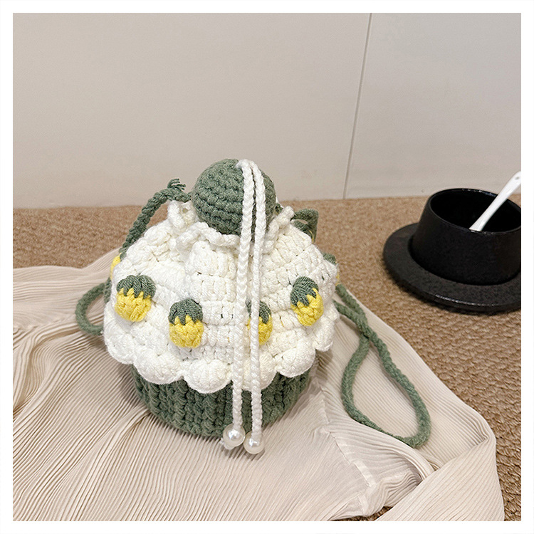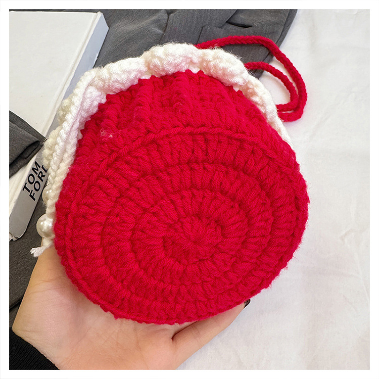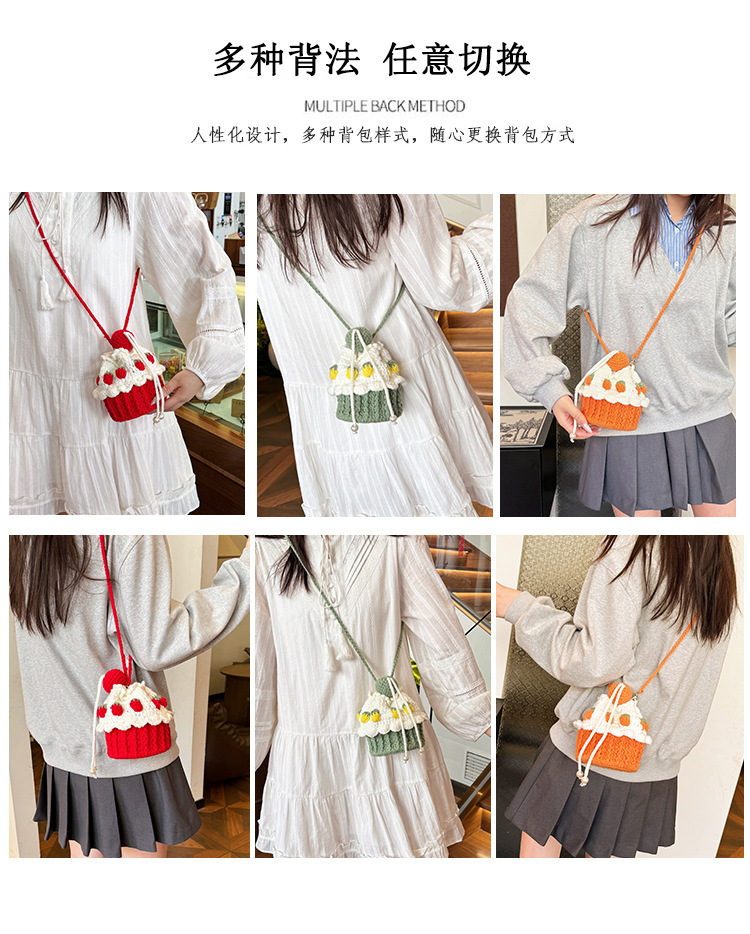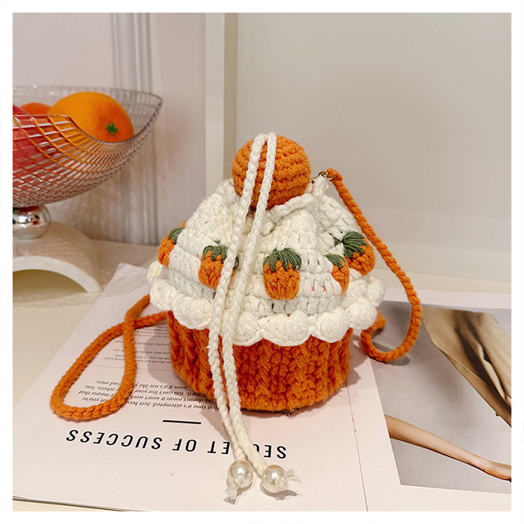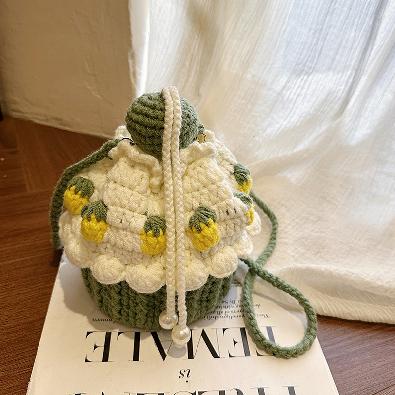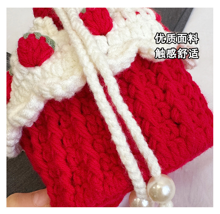 딸기 가방 수제 DIY 케이크 가방 양모 니트 크로 셰 뜨개질 마무리 어깨 가방 여자 친구 선물