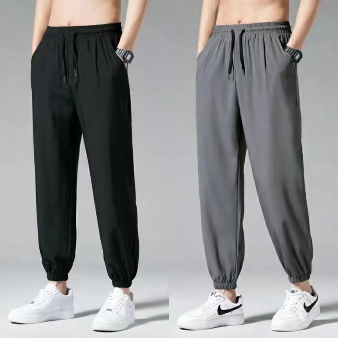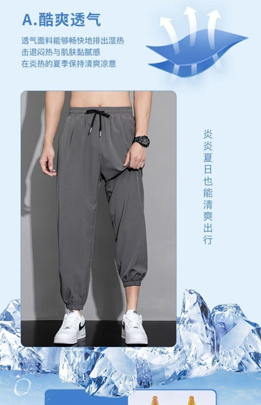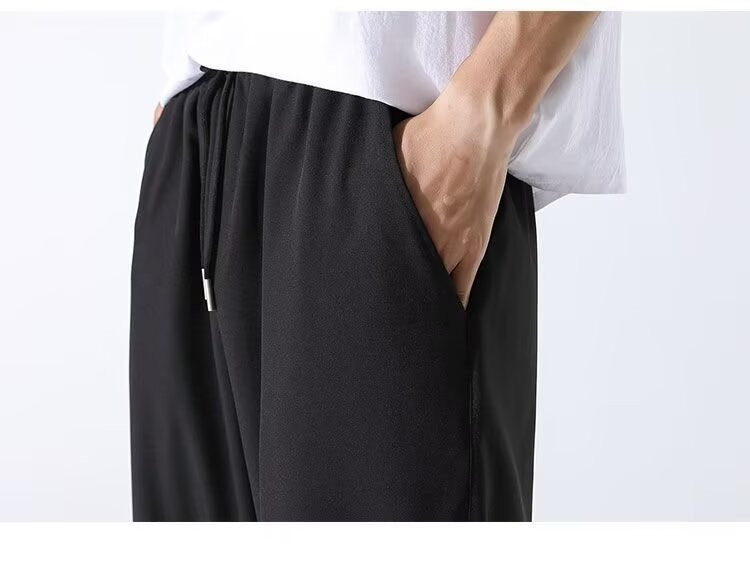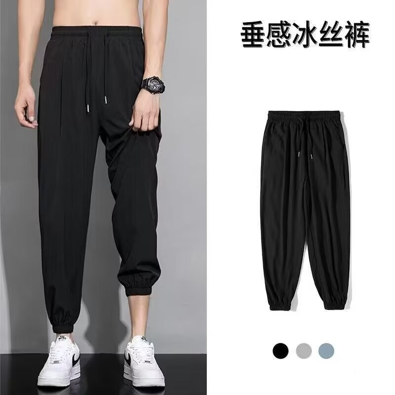 2025 년 여름 캐주얼 바지 남자 데일리 올 매치 새로운 한국식 아이스 실크 패셔너블 나인토 스포츠 롱 바지