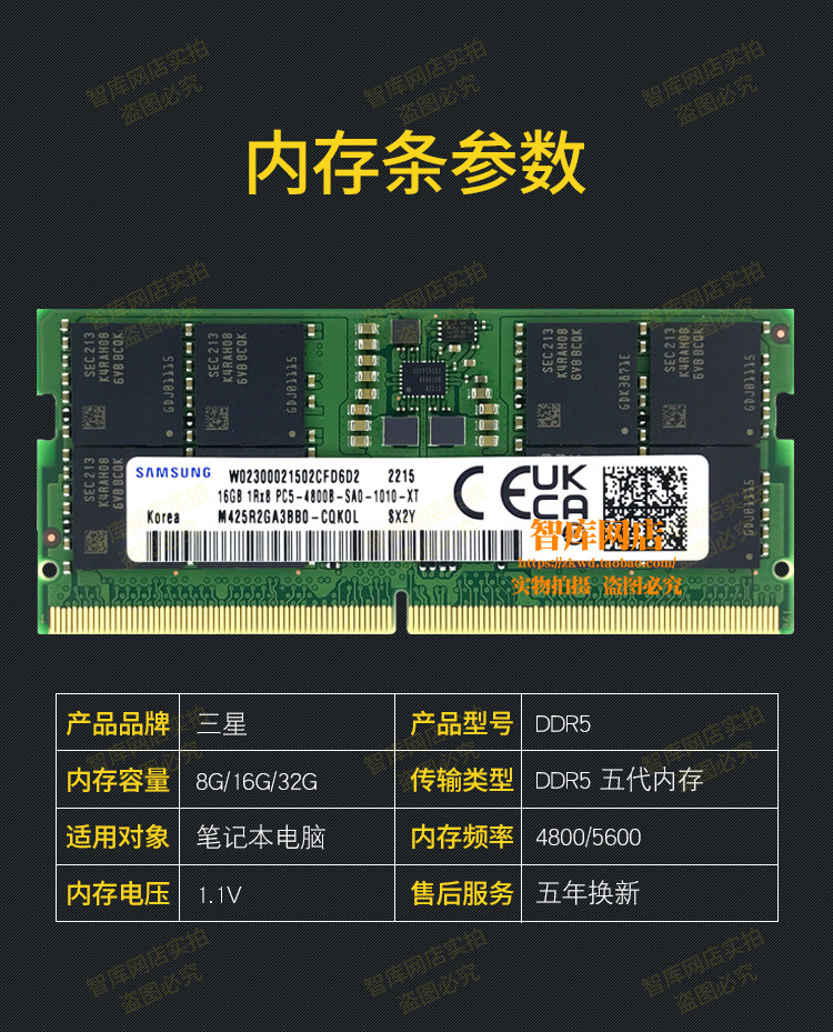 삼성 DDR5 5 세대 8G 16G 32G PC5-4800MHZ 노트북 컴퓨터 메모리 5600