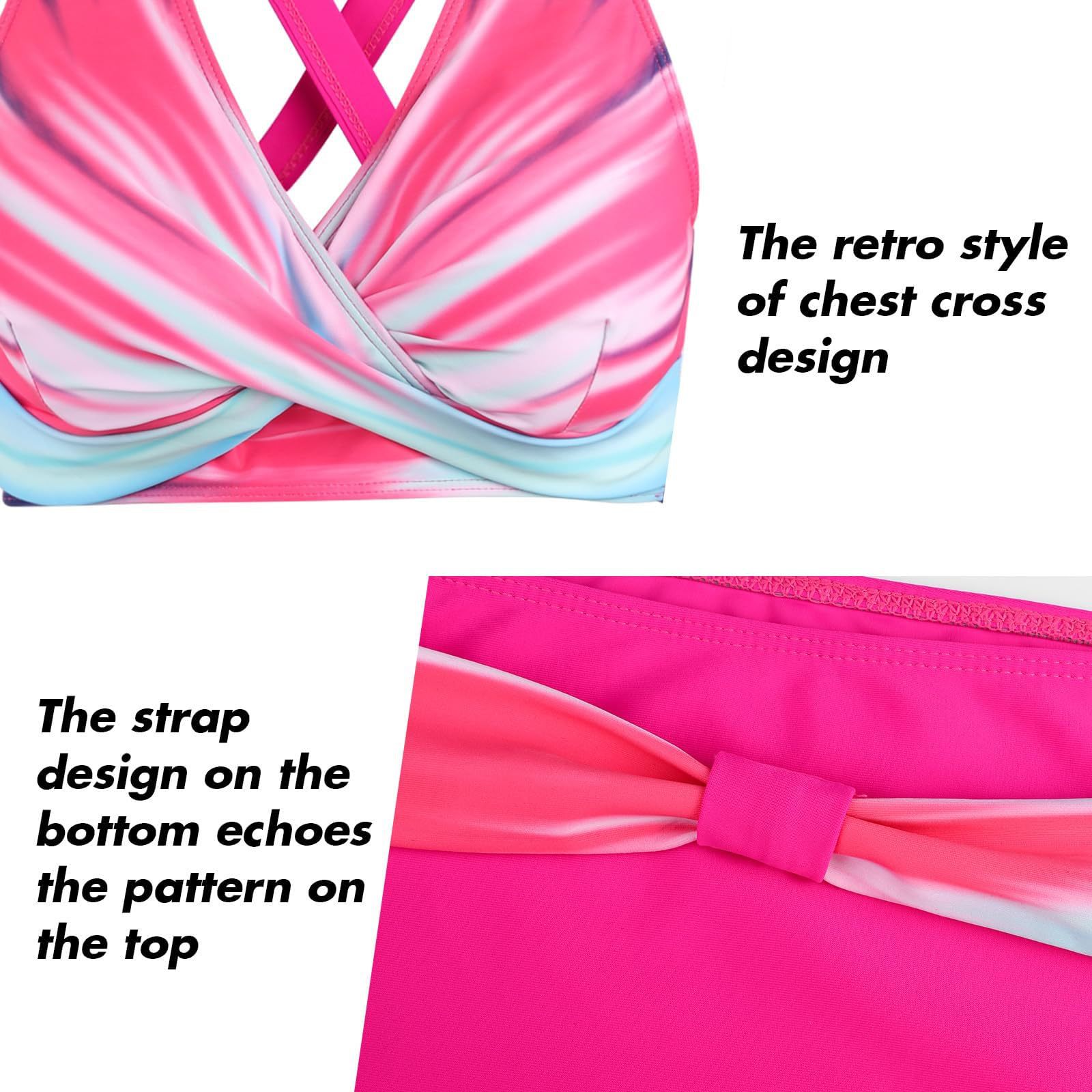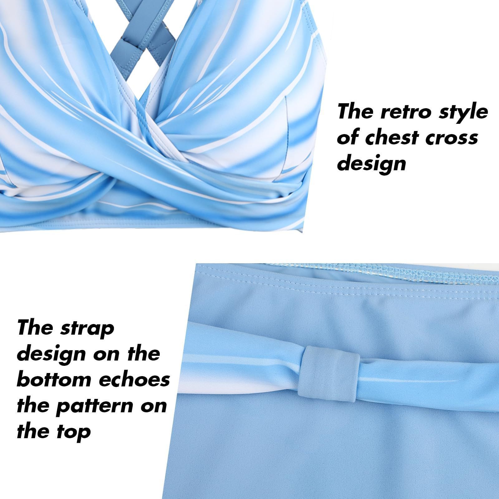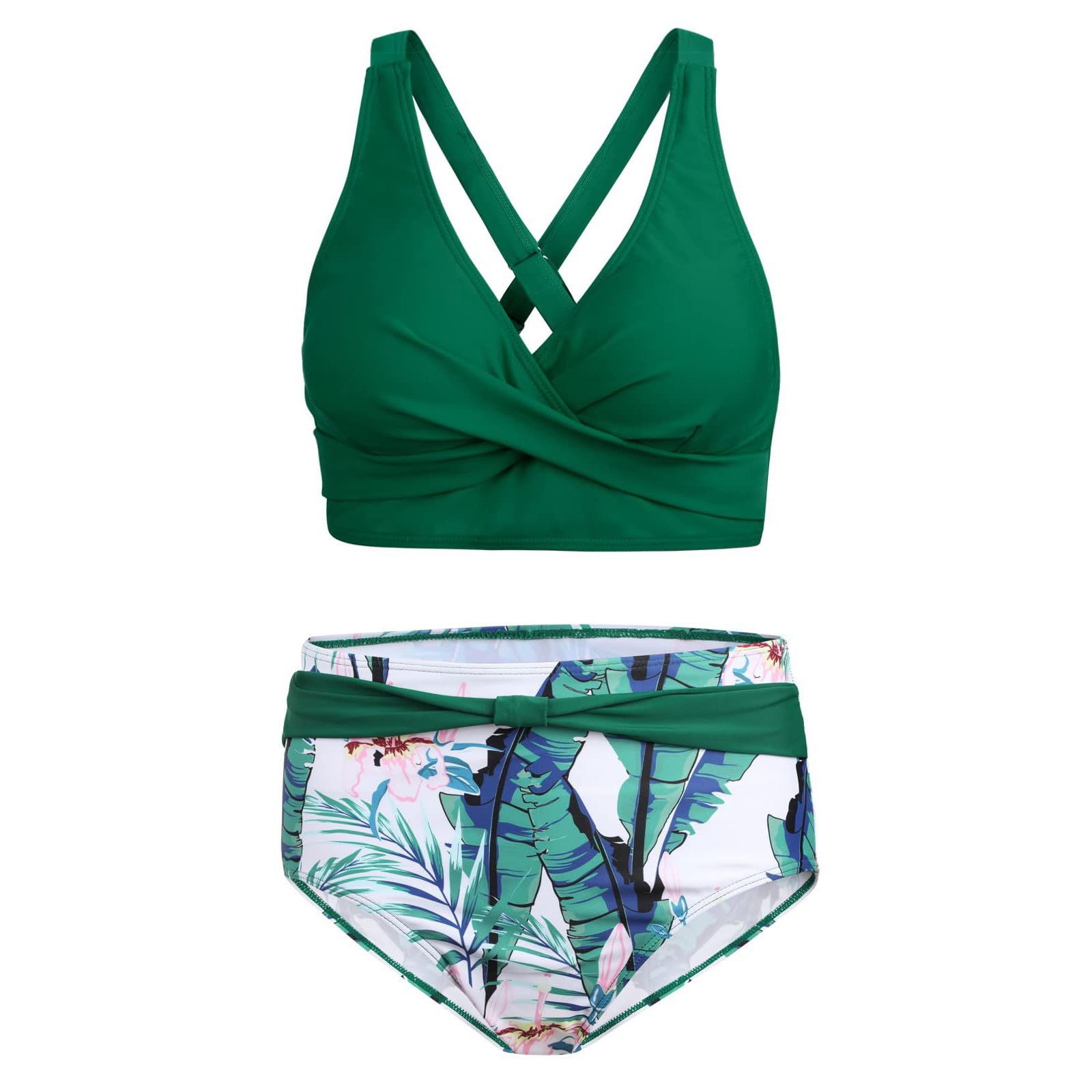 2024 새로운 분할 수영복 유럽 및 미국 비키니 세트 여성 비키니 높은 허리 솔리드 컬러 인쇄 가죽 크로스 테두리