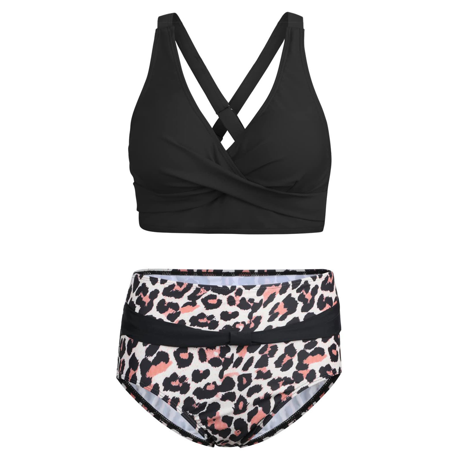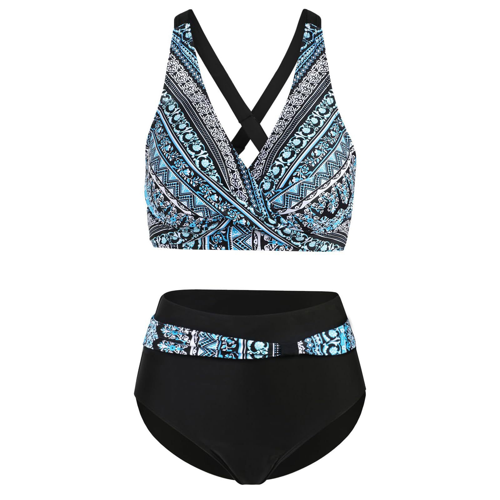 2024 새로운 분할 수영복 유럽 및 미국 비키니 세트 여성 비키니 높은 허리 솔리드 컬러 인쇄 가죽 크로스 테두리스토어 가기