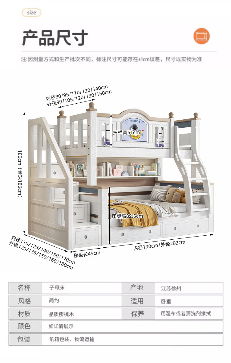 백 크라운 체리 우드 단단한 나무 높고 낮은 침대 성인 2 층 침대 엄마와 아이 침대 어린이 침대 침대 침대 침대