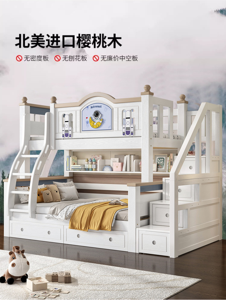 백 크라운 체리 우드 단단한 나무 높고 낮은 침대 성인 2 층 침대 엄마와 아이 침대 어린이 침대 침대 침대 침대스토어 가기