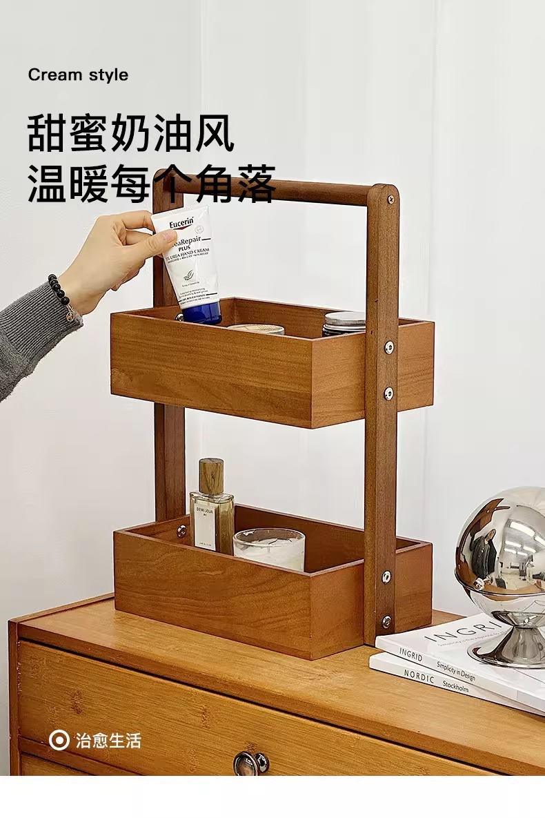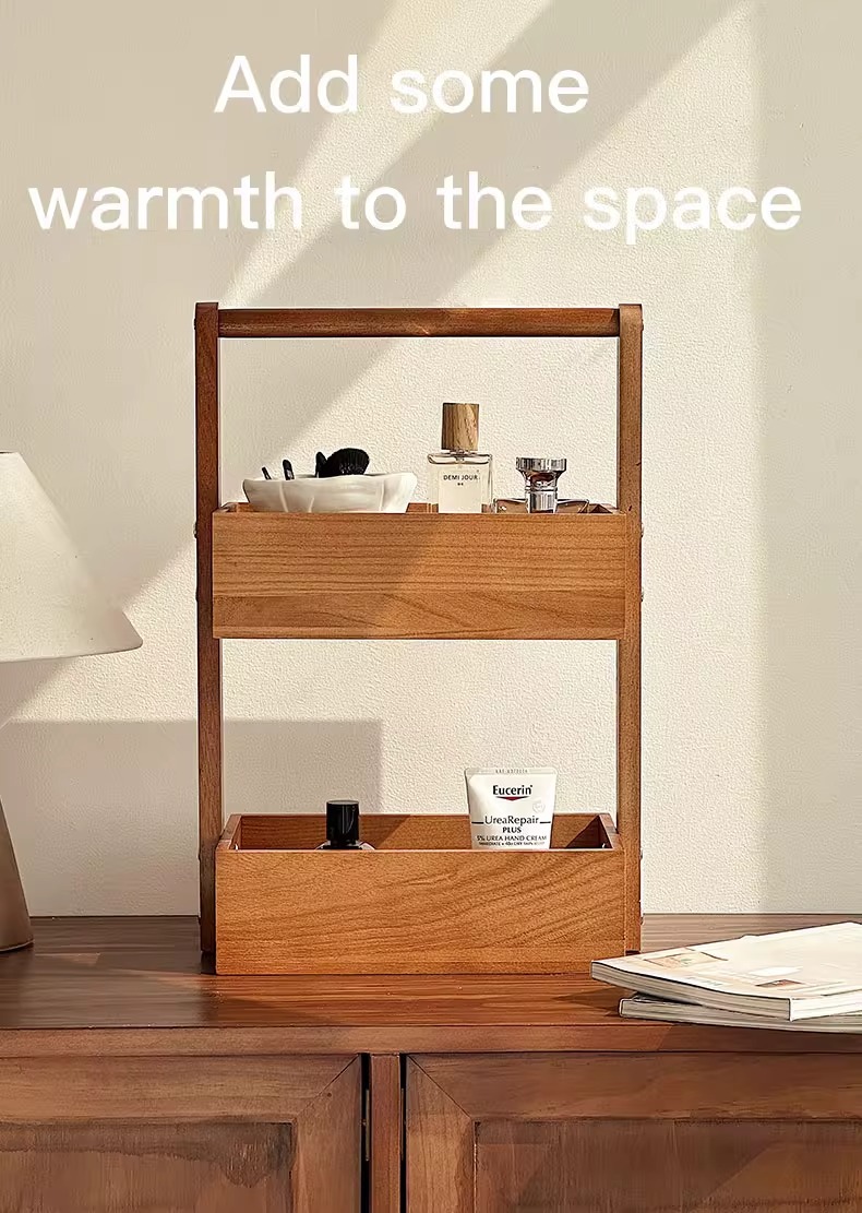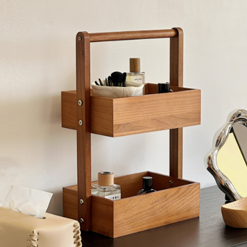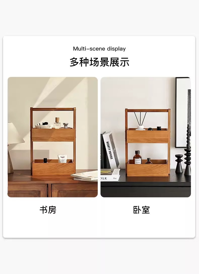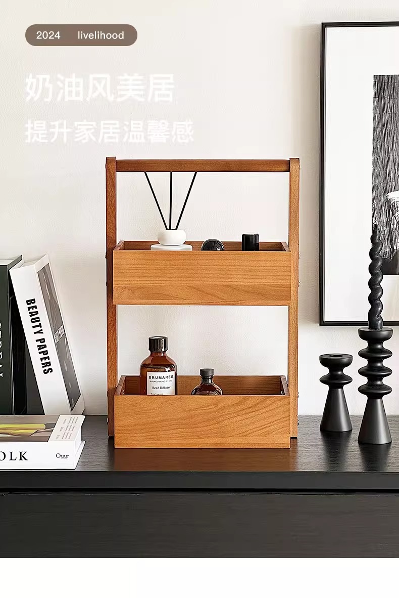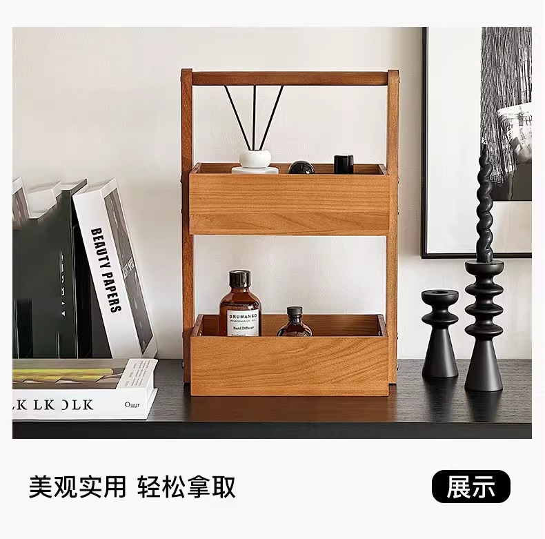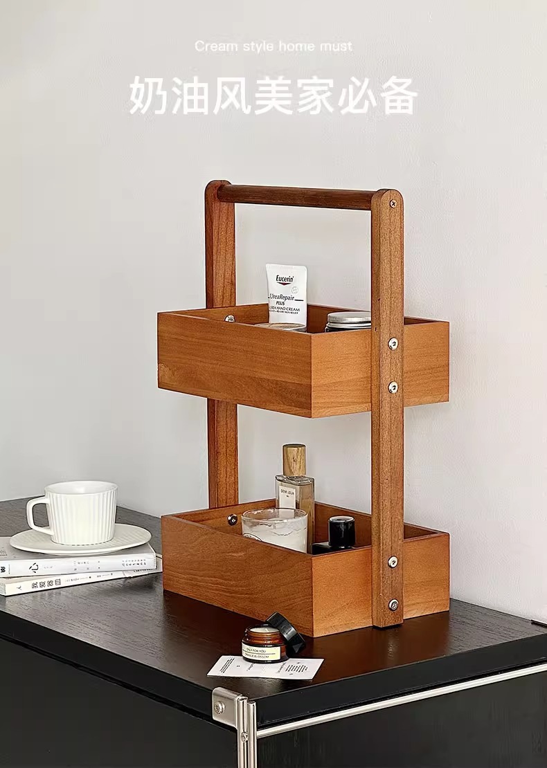 더블 레이어 단단한 나무 스토리지 랙 나무 다층 스토리지 거실 화장품 스토리지 랙 데스크탑 스낵 과일 및 야채 스토리지 바구니