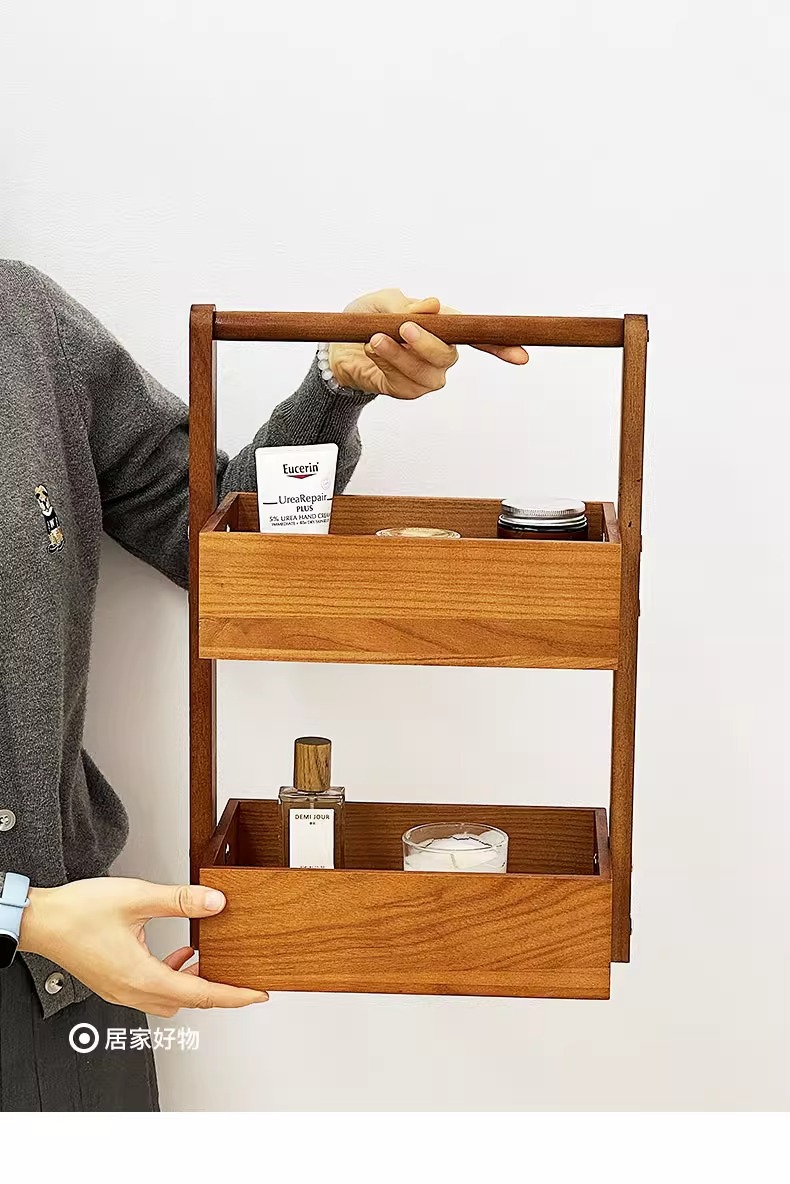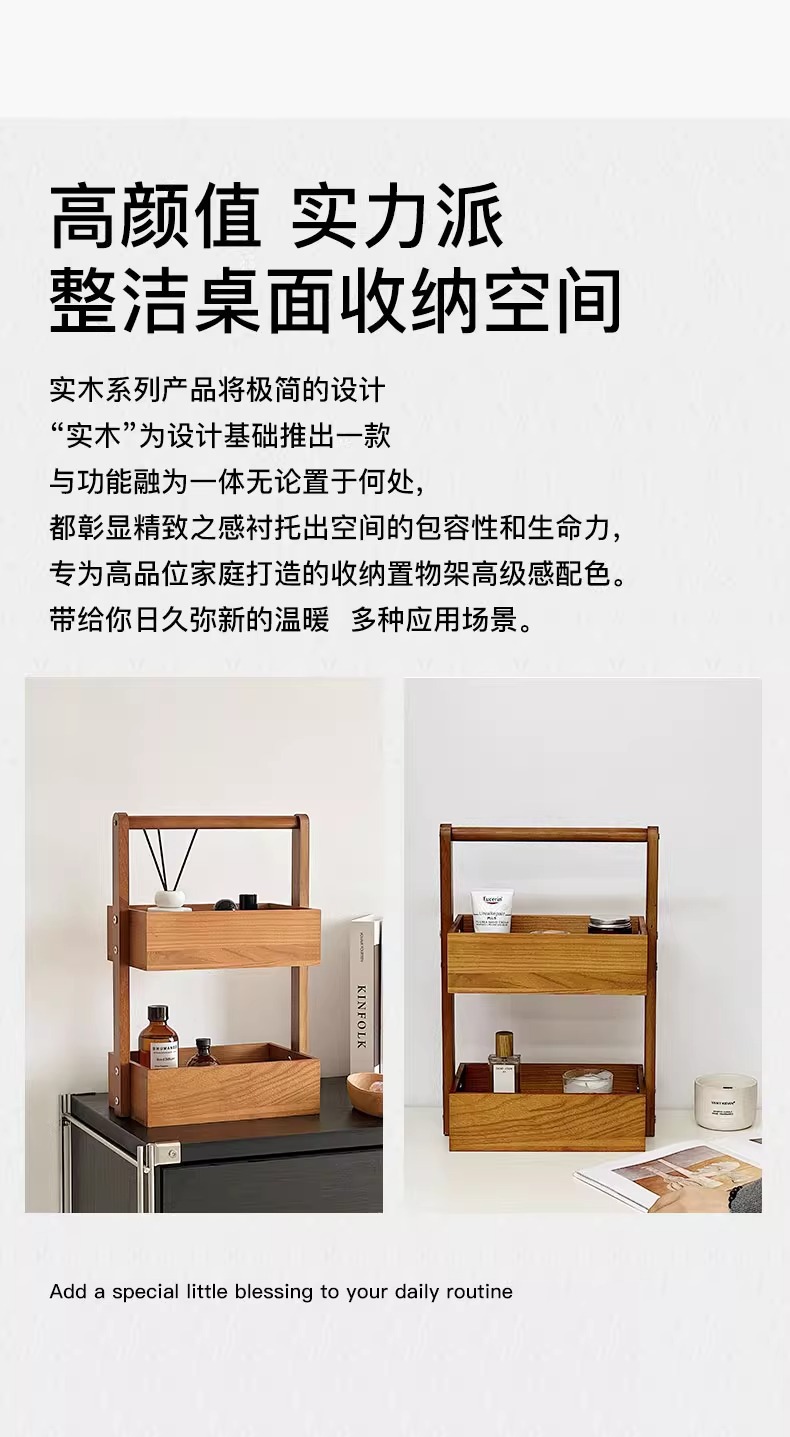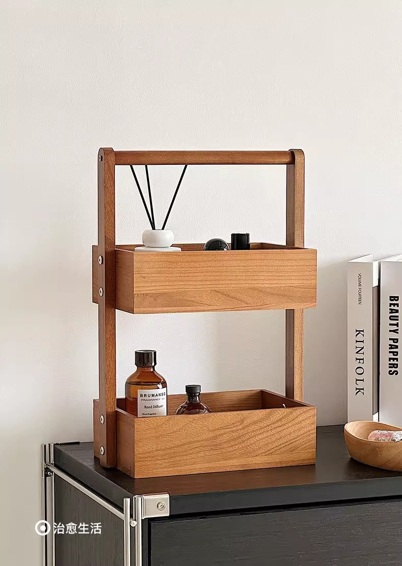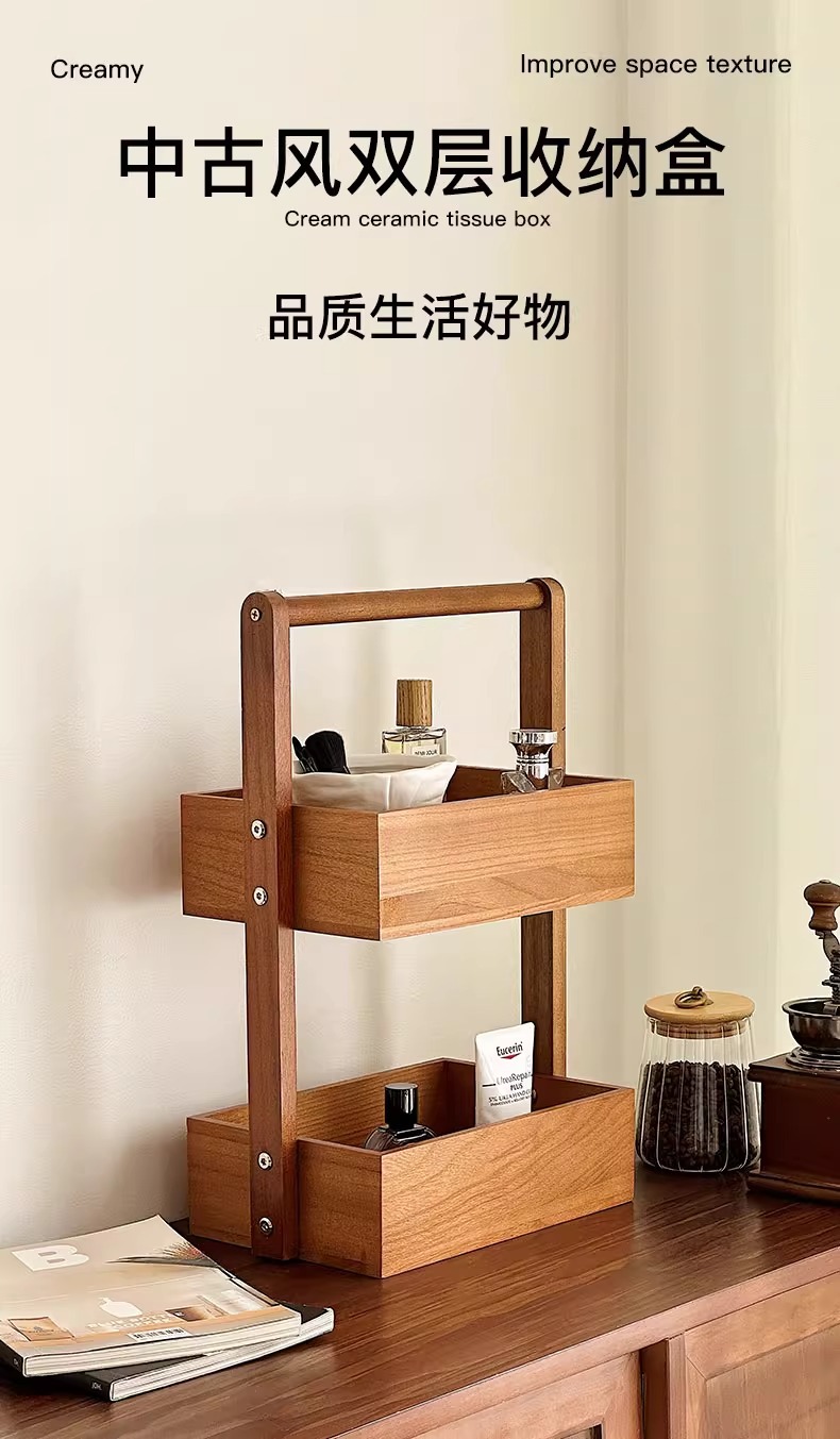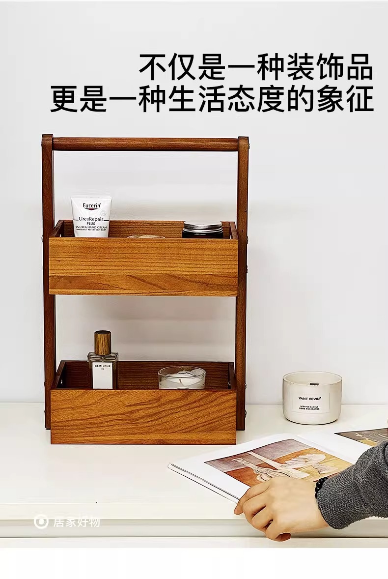 더블 레이어 단단한 나무 스토리지 랙 나무 다층 스토리지 거실 화장품 스토리지 랙 데스크탑 스낵 과일 및 야채 스토리지 바구니