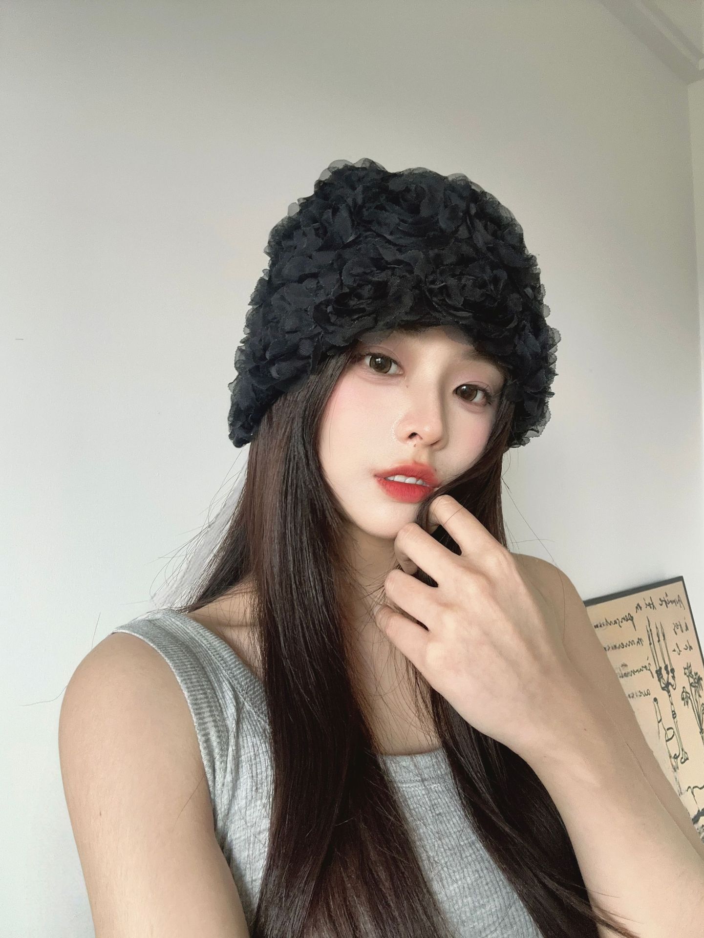 틈새 빈티지 3 차원 장미 꽃 풀오버 모자 여성의 봄과 여름 중공 통기성 발가락 모자 차가운 모자 트렌디 올매치스토어 가기