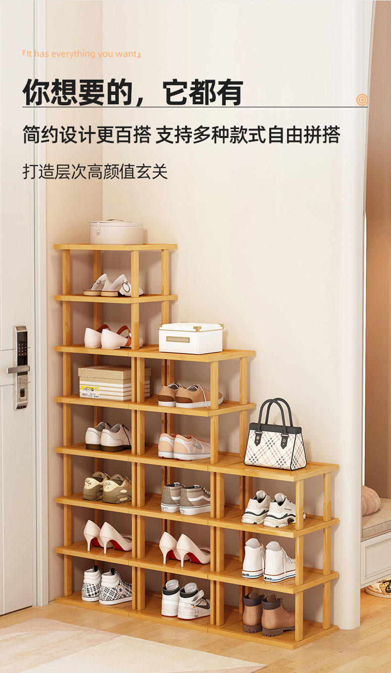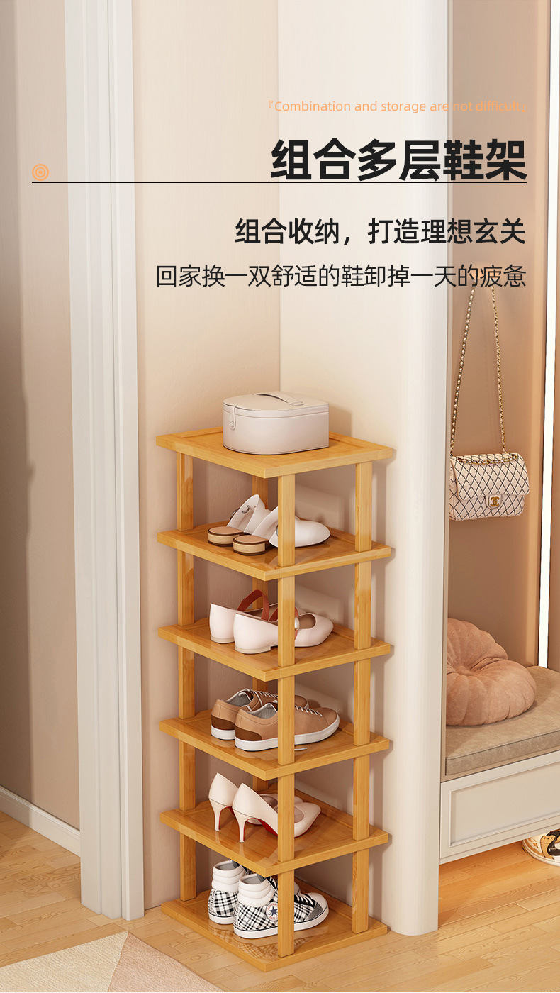간단한 신발 랙 다층 공간 절약 가정용 문 입구 좁은 작은 대나무 신발 캐비닛 조립 조합 신발 디스플레이 랙