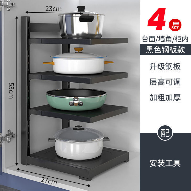 • 업그레이드된 두꺼운 선반, 먼지 낙하 방지 [4단] 높이 53 - 블랙 플래그십 냄비 받침대 + 선반