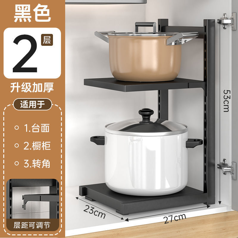 • 업그레이드된 두꺼운 선반, 먼지 낙하 방지 [2단] 높이 53 - 블랙 플래그십 냄비 받침대 + 선반