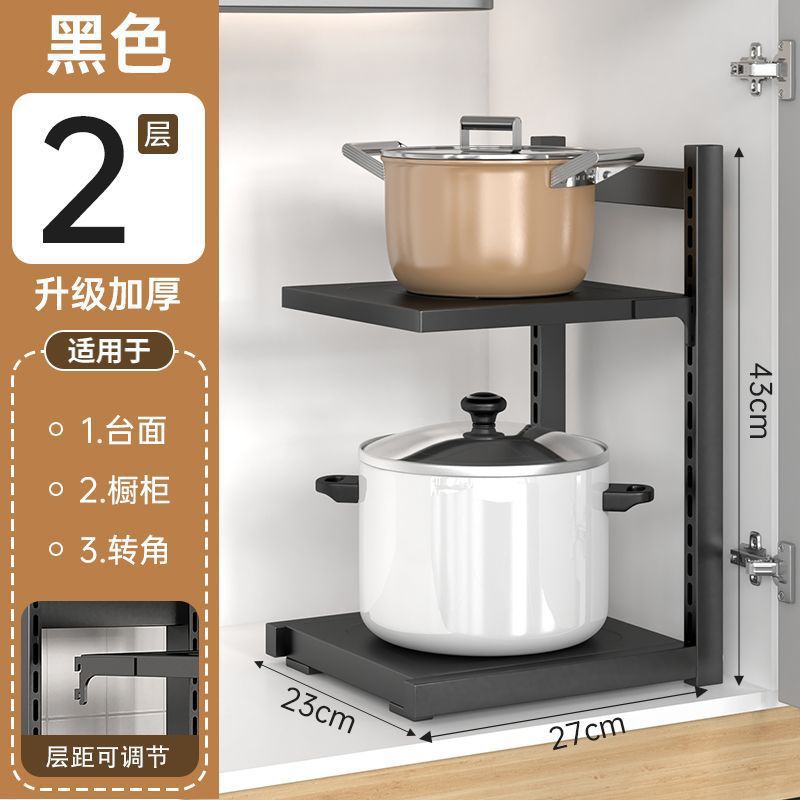 • 업그레이드된 두꺼운 선반, 먼지 낙하 방지 [2단] 높이 43 - 블랙 플래그십 냄비 받침대 + 선반