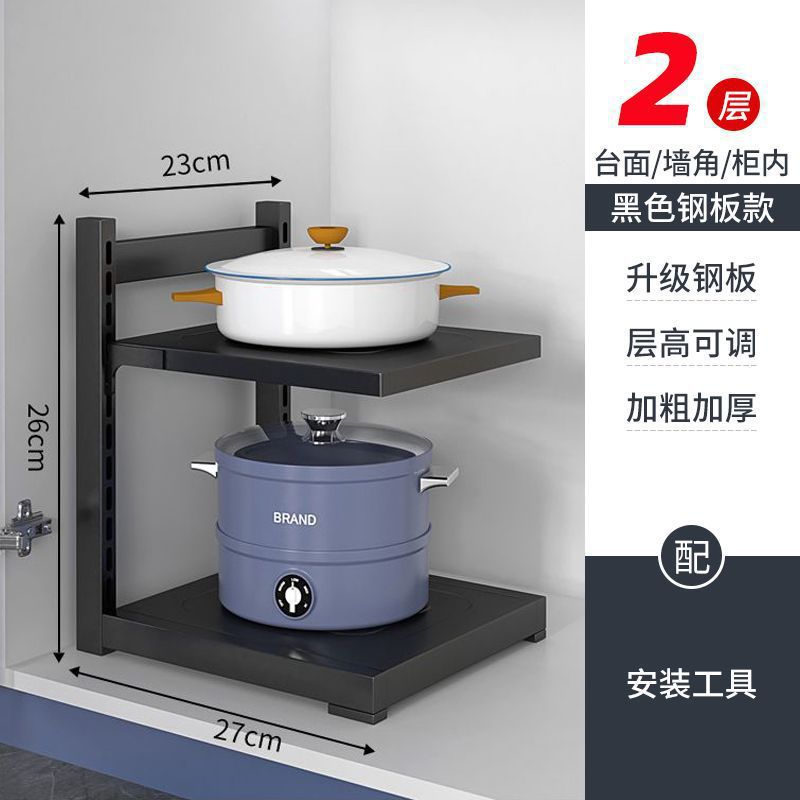 • 업그레이드된 두꺼운 선반, 먼지 낙하 방지 [2단] 높이 26 - 블랙 플래그십 냄비 받침대 + 선반
