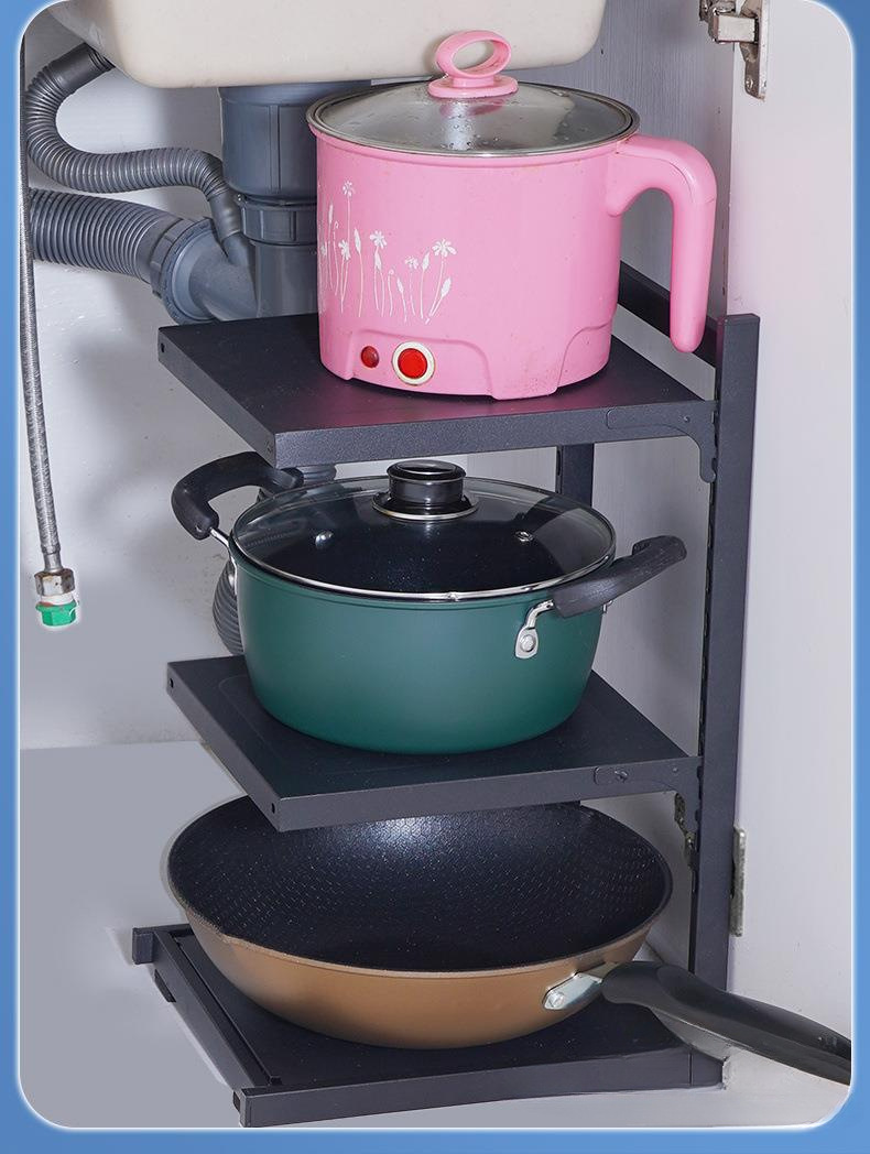 냄비 랙 특수 저장 냄비 저장 주방 스테인레스 스틸 선반 저장 랙 낮은 싱크 다층 가정용 캐비닛