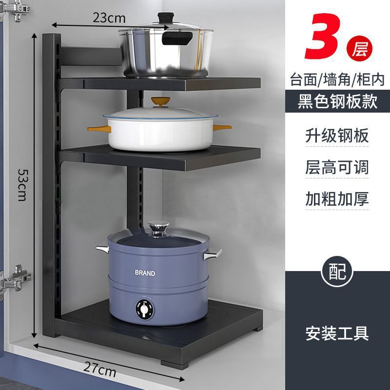 • 업그레이드된 두꺼운 선반, 먼지 낙하 방지 [3단] 높이 53 - 블랙 플래그십 냄비 받침대 + 선반