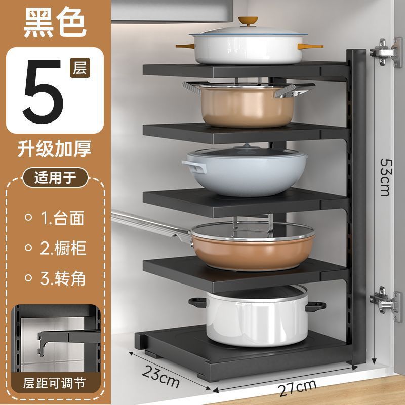 • 업그레이드된 두꺼운 선반, 먼지 낙하 방지 [5단] 높이 53 - 블랙 플래그십 냄비 받침대 + 선반
