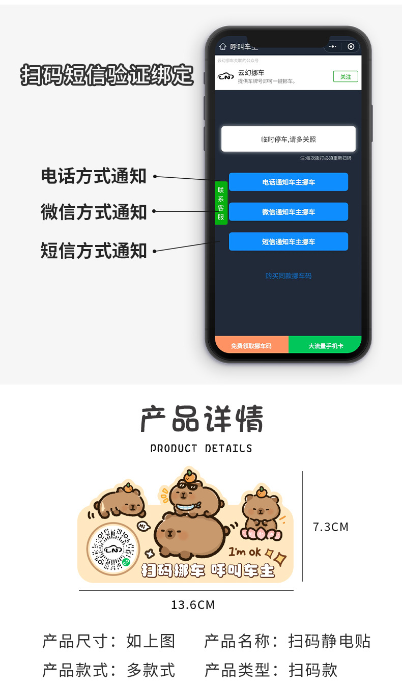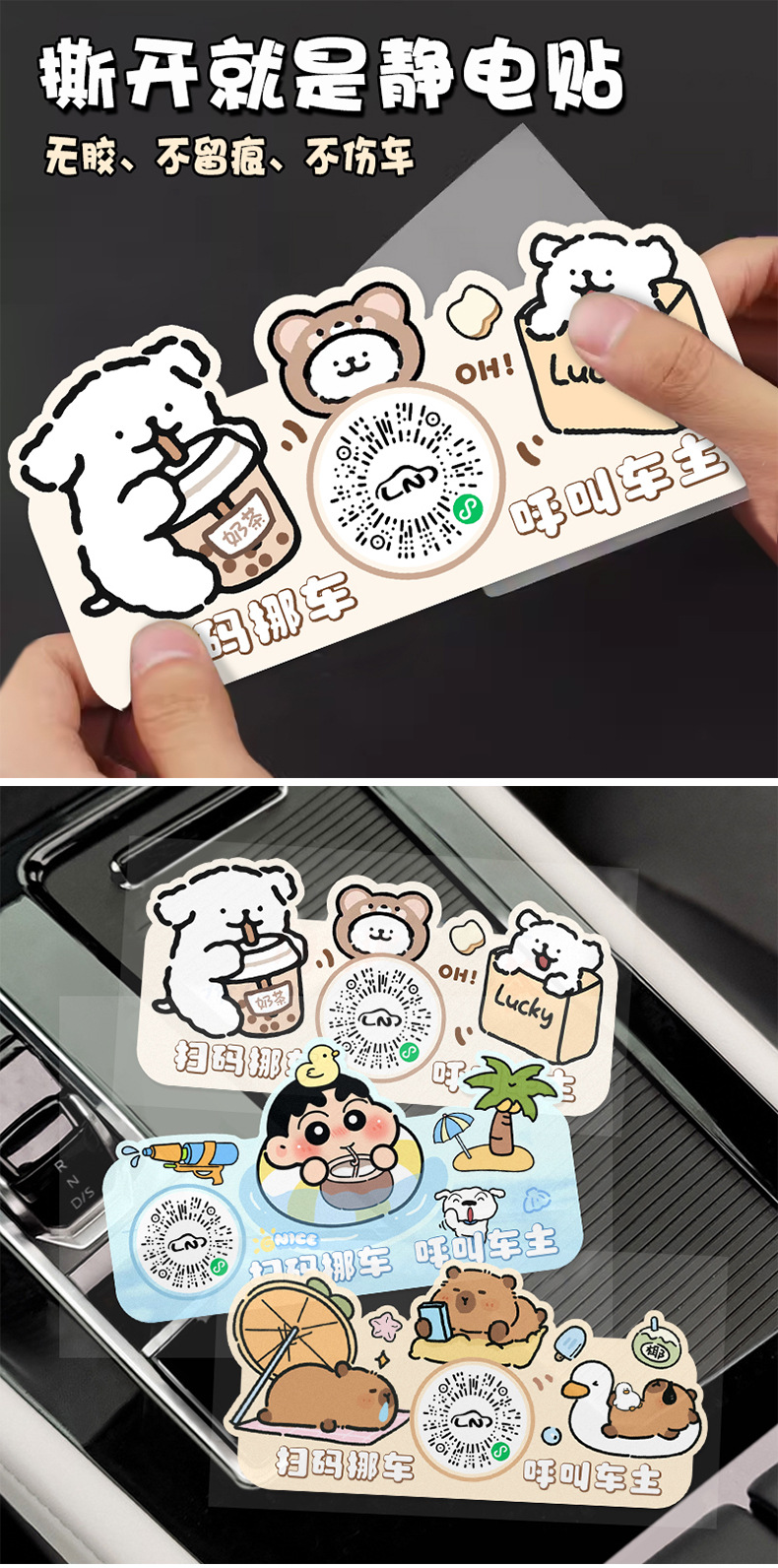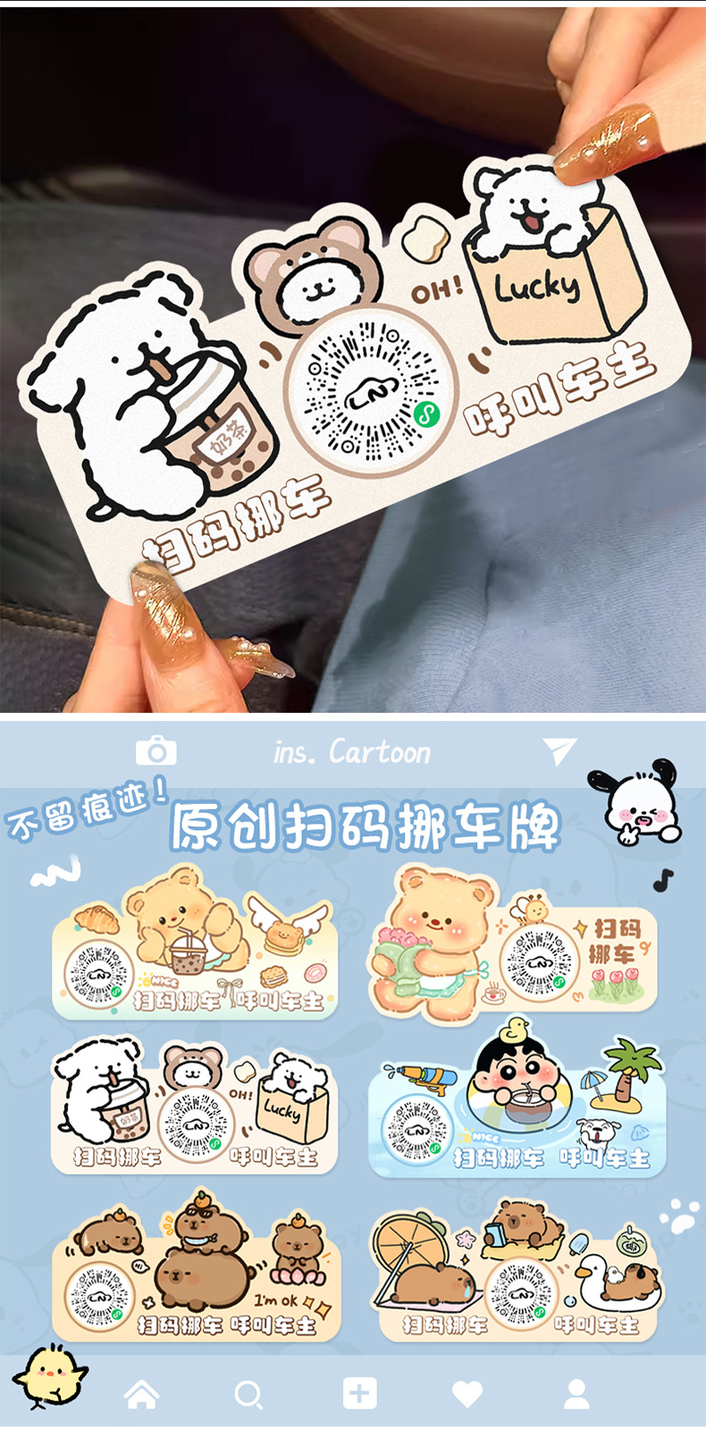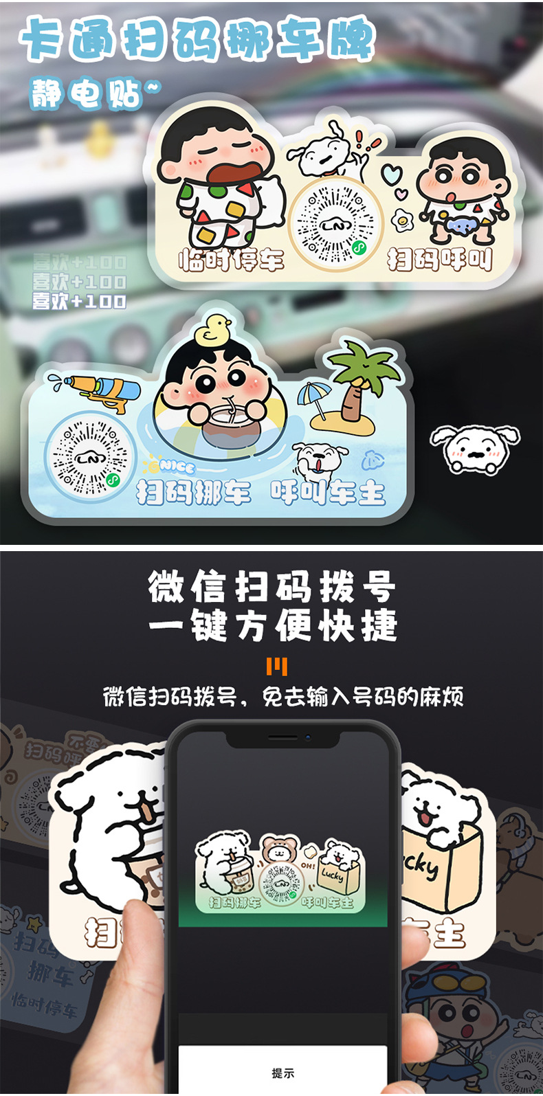 라인 강아지 자동차 임시 주차 스캔 코드 교대 번호판 창조적 인 자동차 이동 자동차 2 차원 코드 정전기 스티커 개인 정보