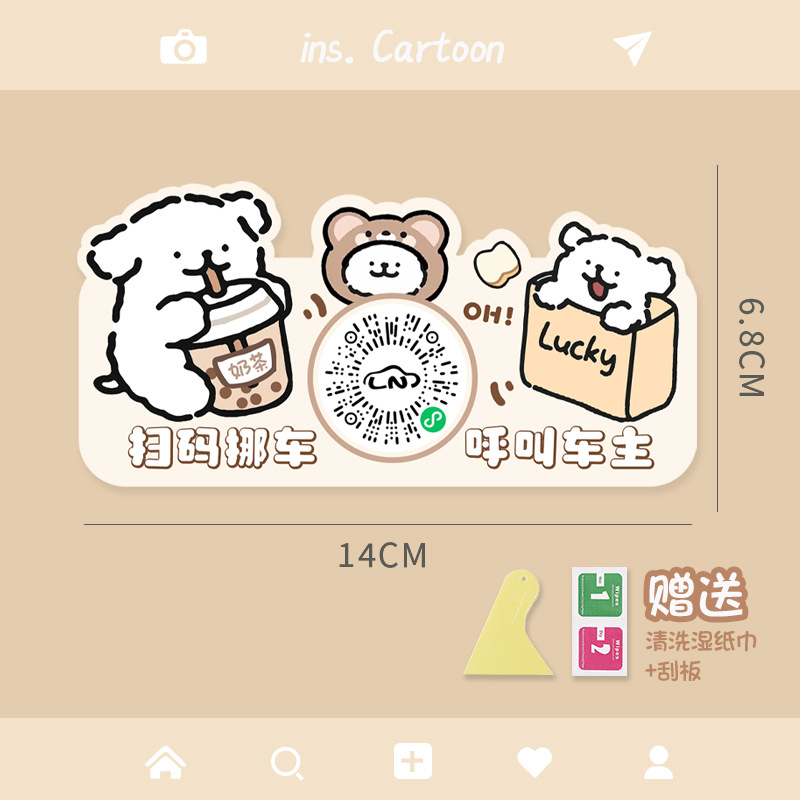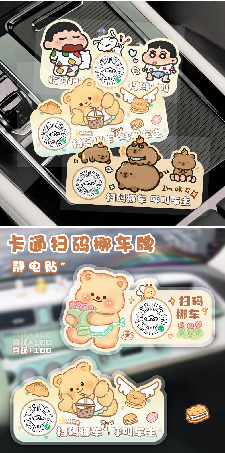 라인 강아지 자동차 임시 주차 스캔 코드 교대 번호판 창조적 인 자동차 이동 자동차 2 차원 코드 정전기 스티커 개인 정보스토어 가기