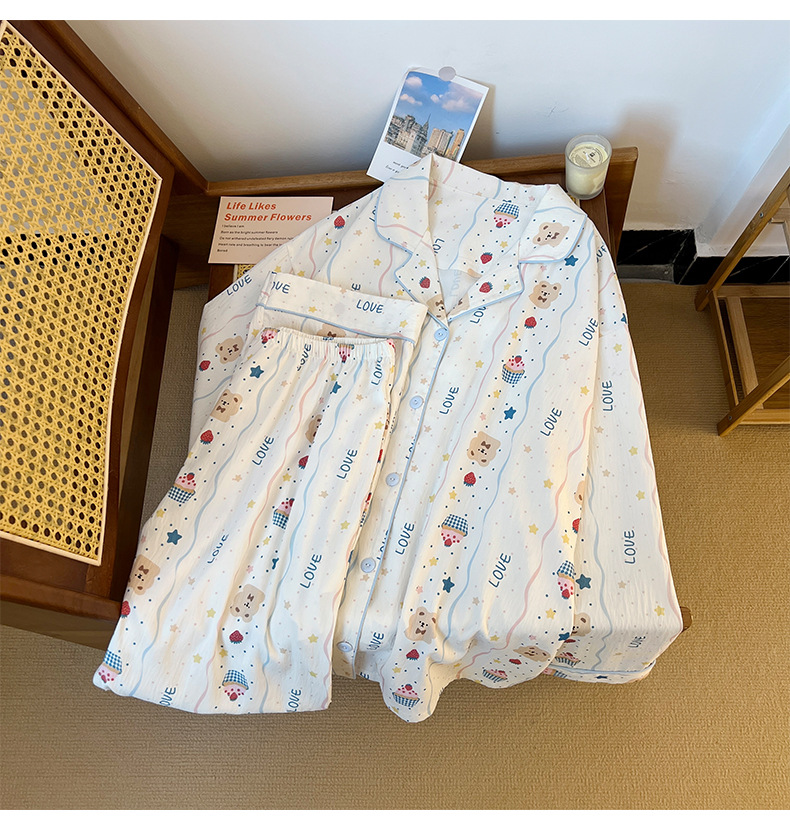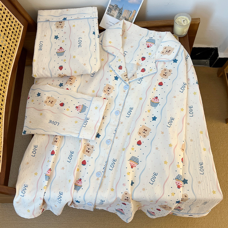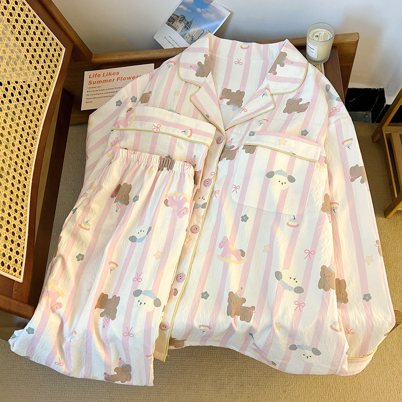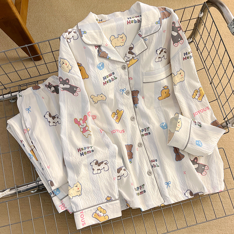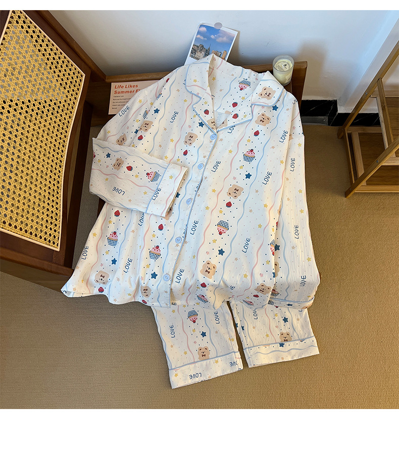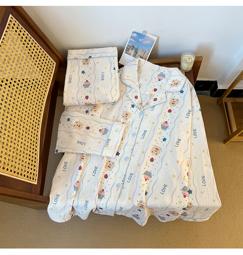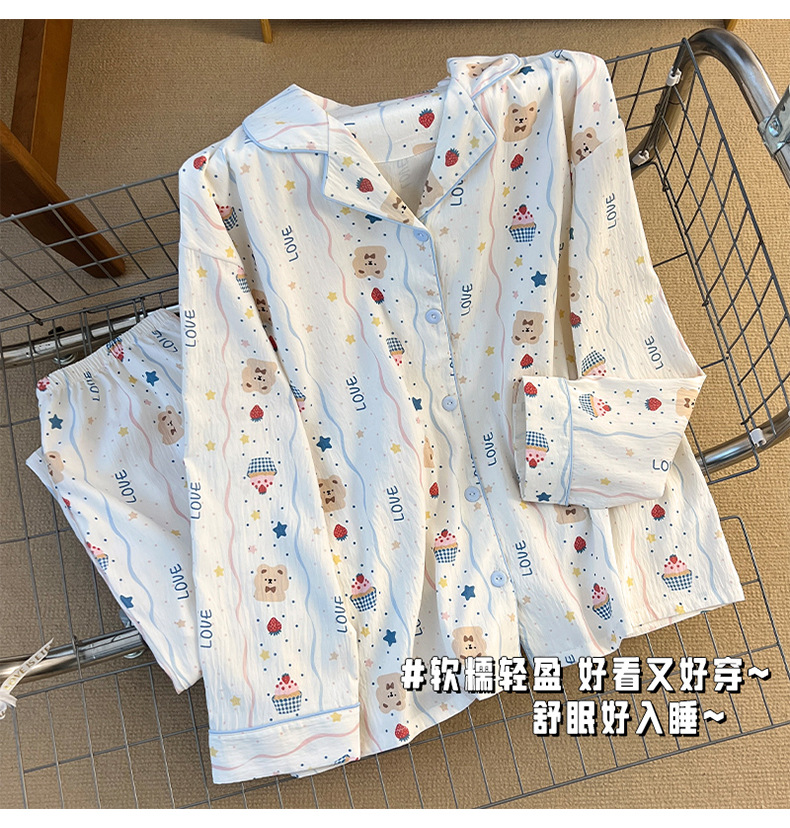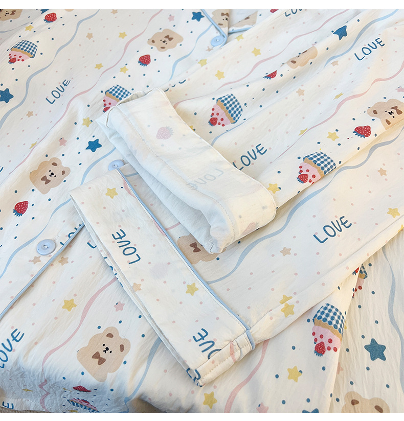 구름면 벨트 가슴 패드 잠옷 봄과 가을 새로운 만화 달콤한 소녀 긴 소매 옷 파자마 여성 홈 옷 세트스토어 가기