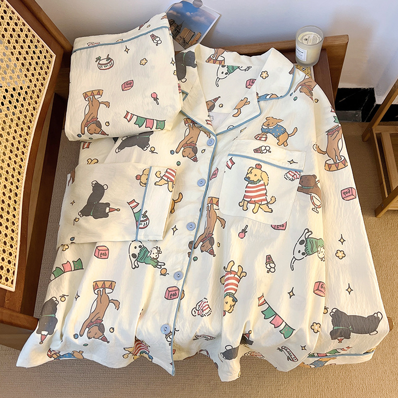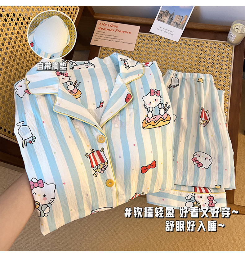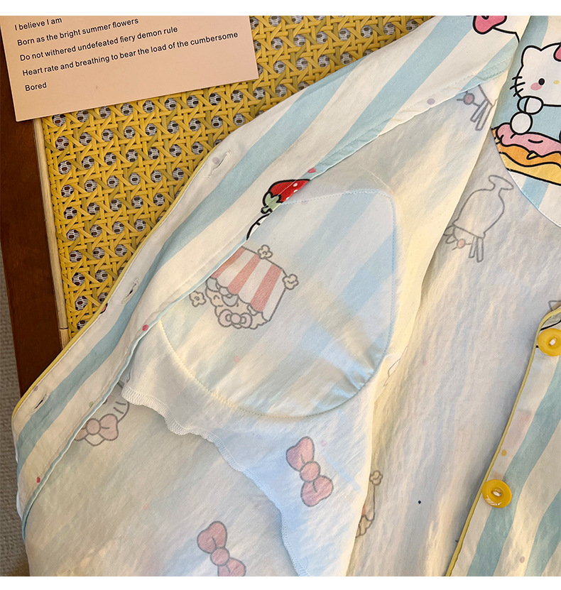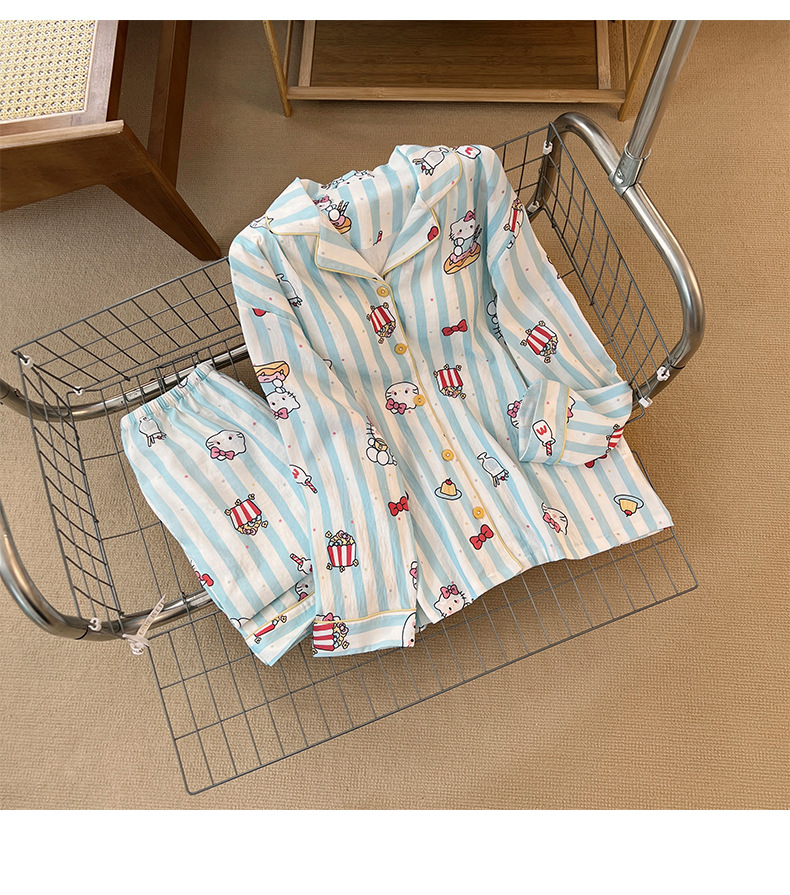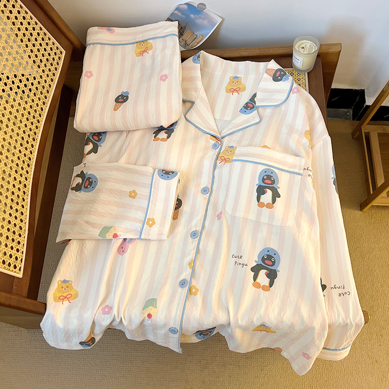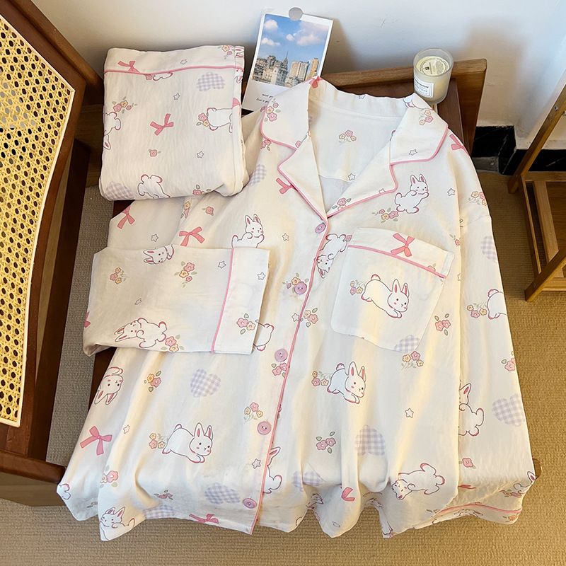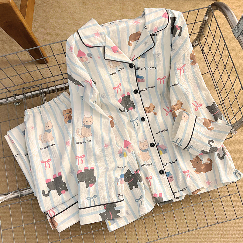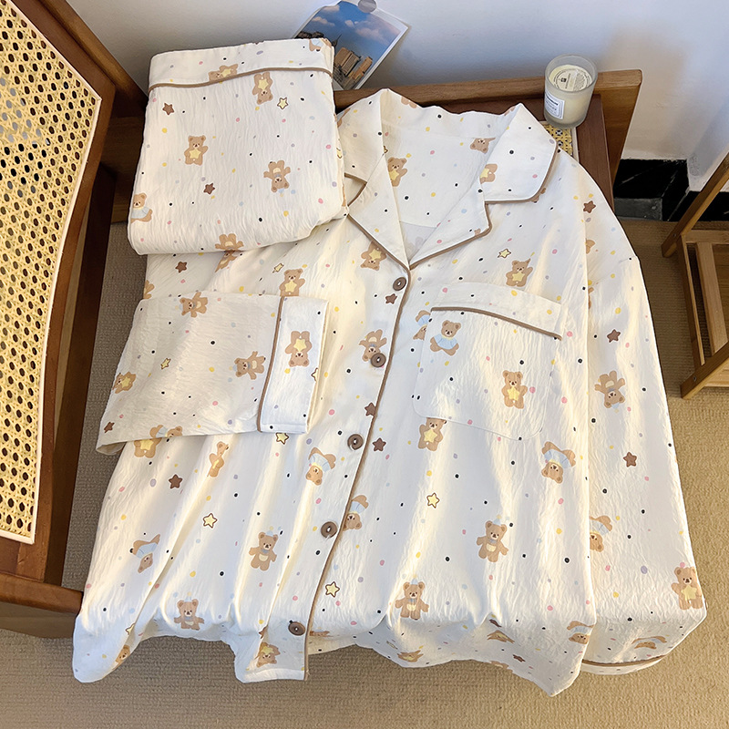 구름면 벨트 가슴 패드 잠옷 봄과 가을 새로운 만화 달콤한 소녀 긴 소매 옷 파자마 여성 홈 옷 세트스토어 가기