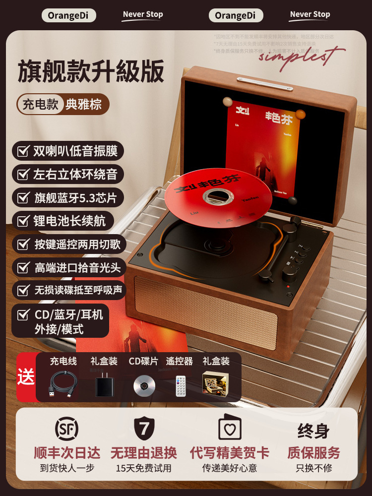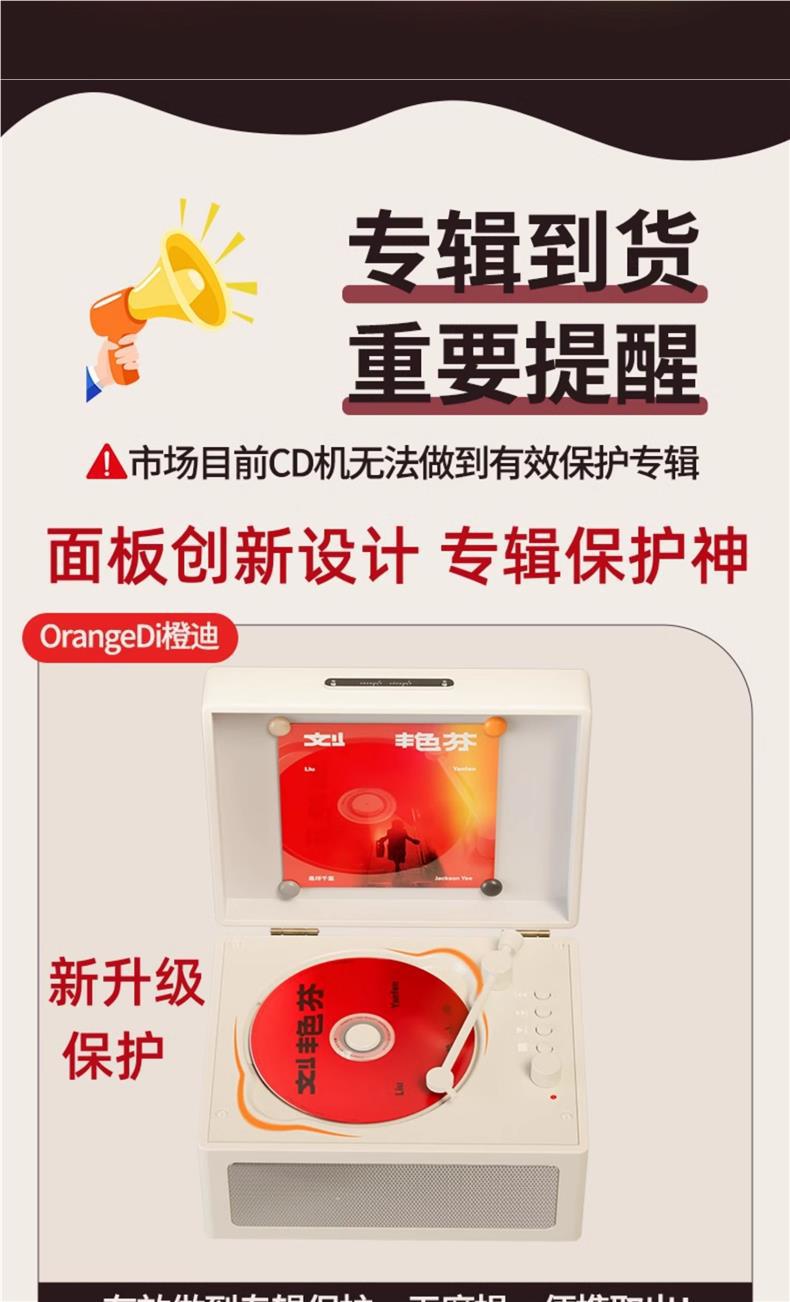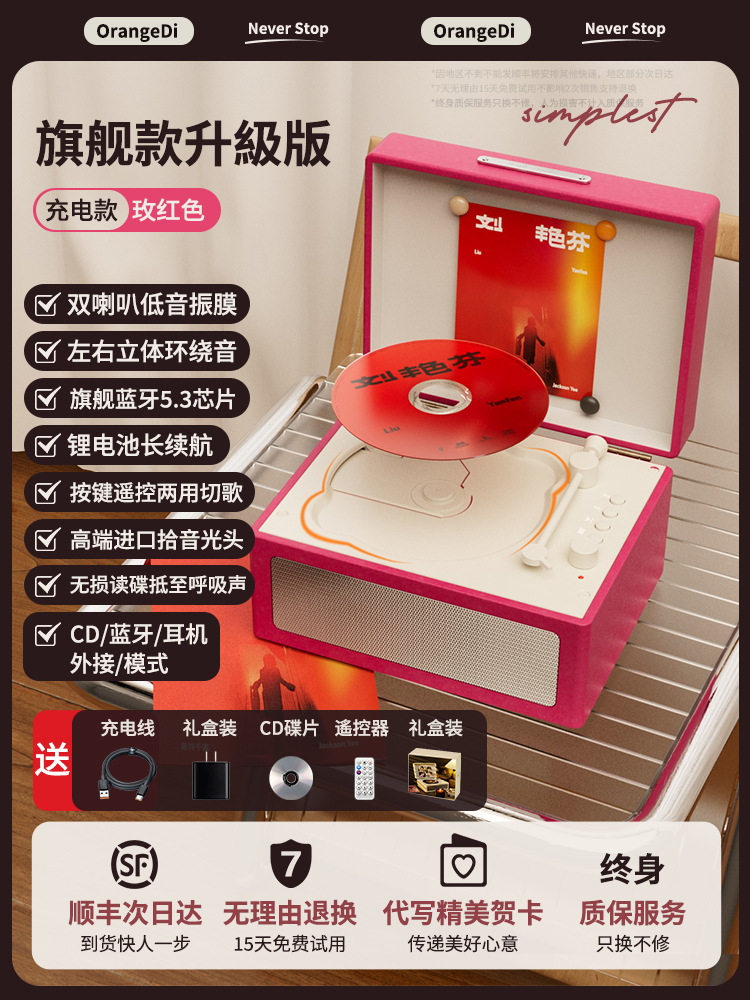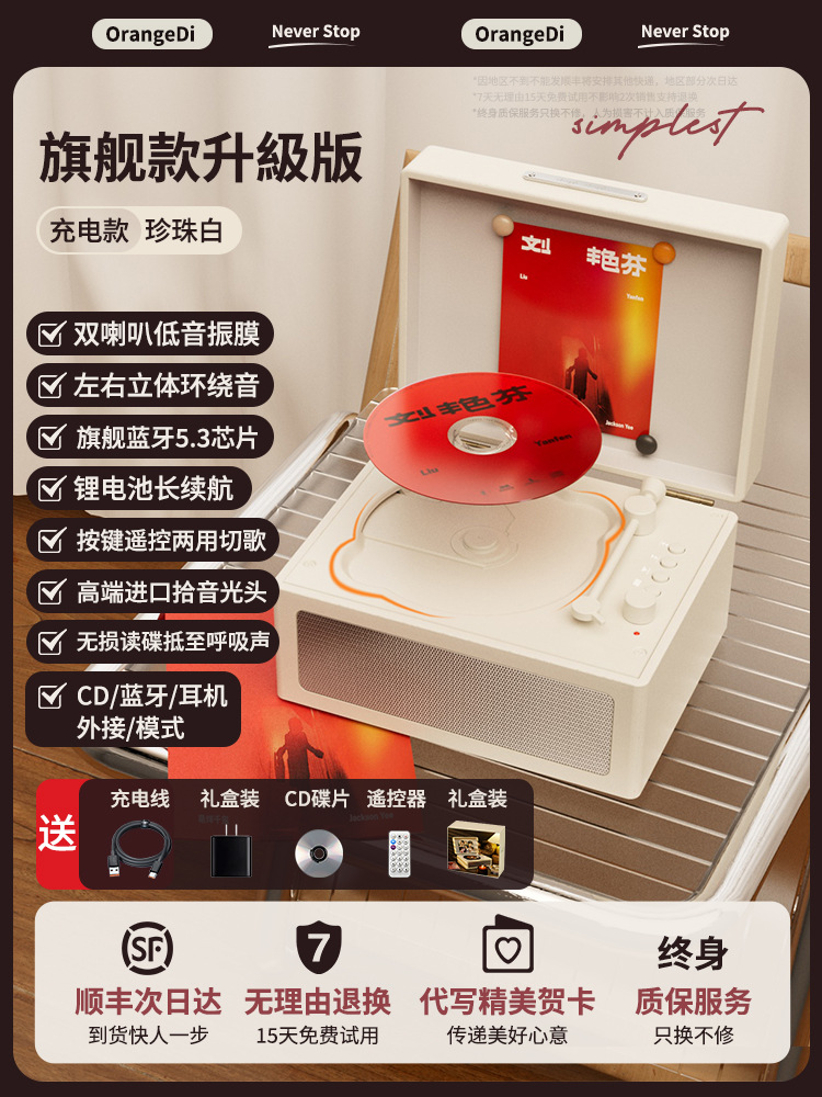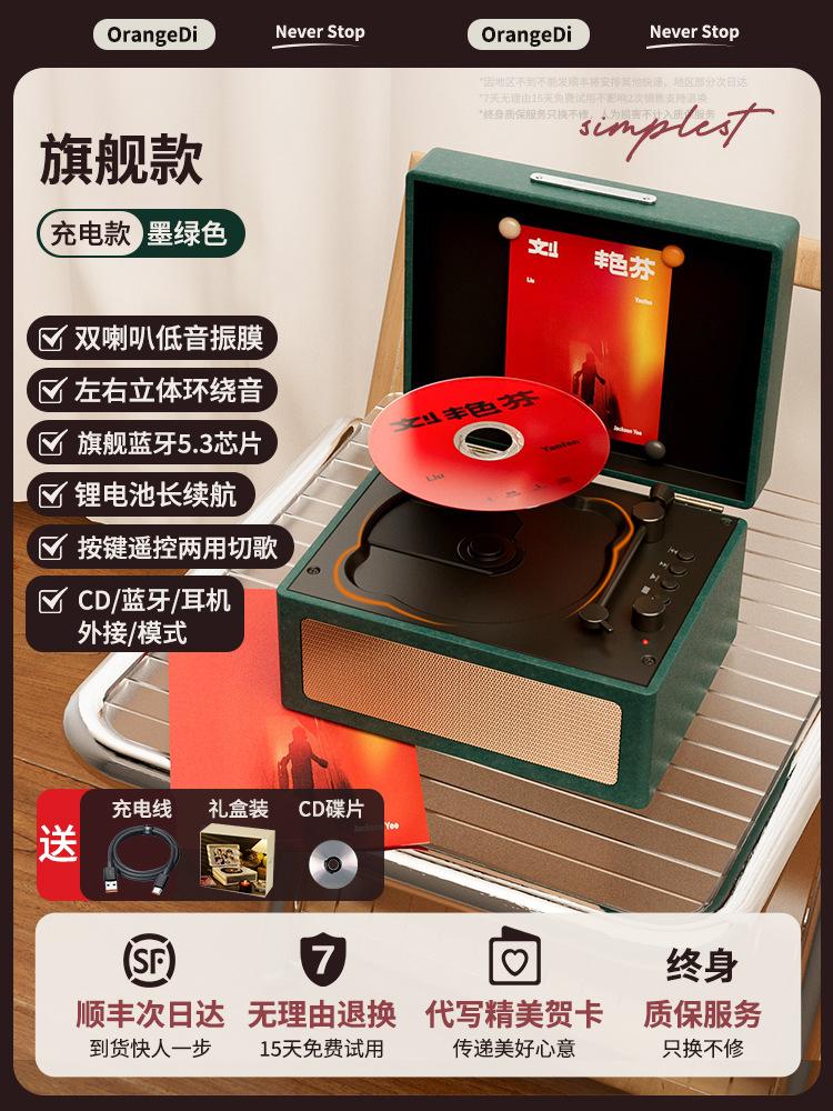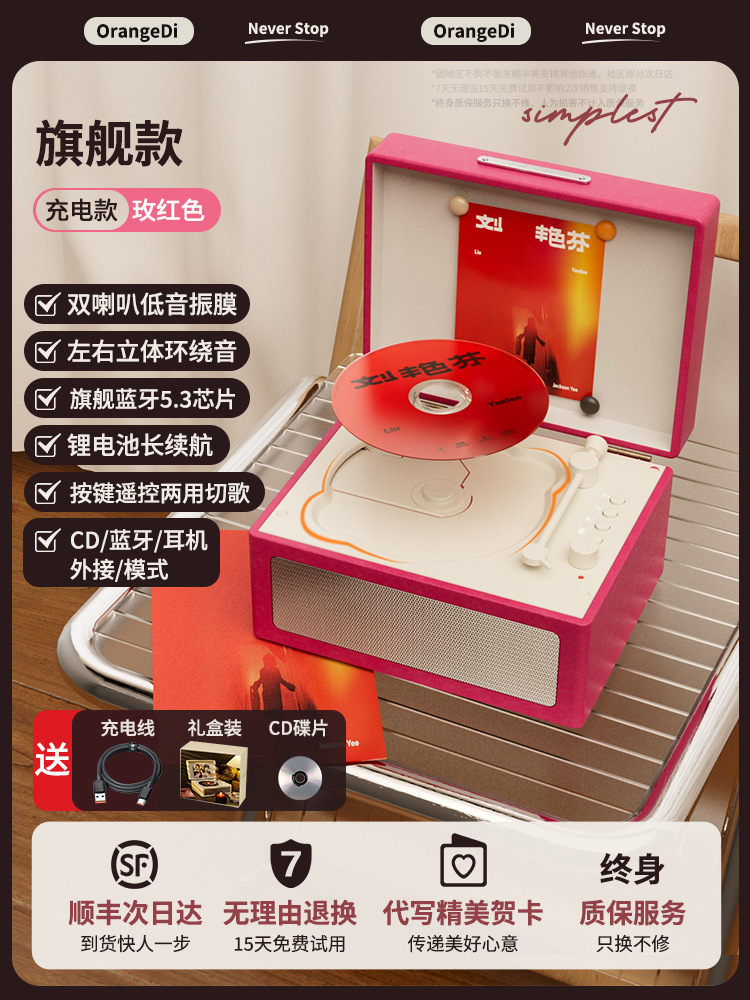 오렌지 디 레트로 CD 플레이어 음악 앨범 블루투스 스피커 플레이어 오디오 CD 휴대용 생일 선물