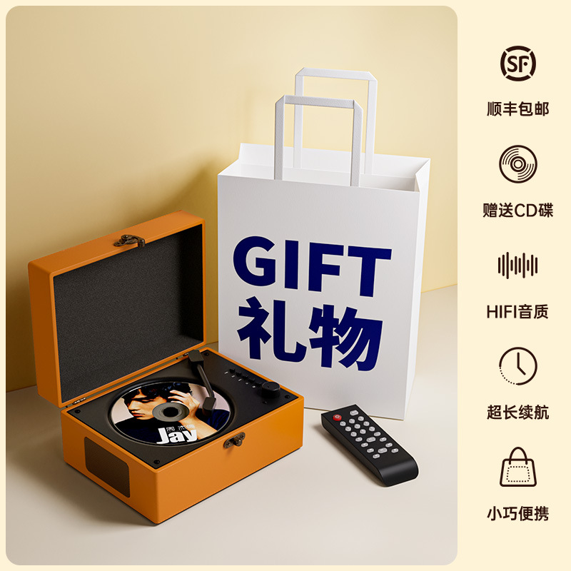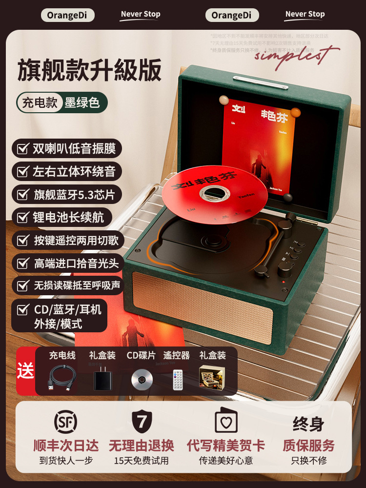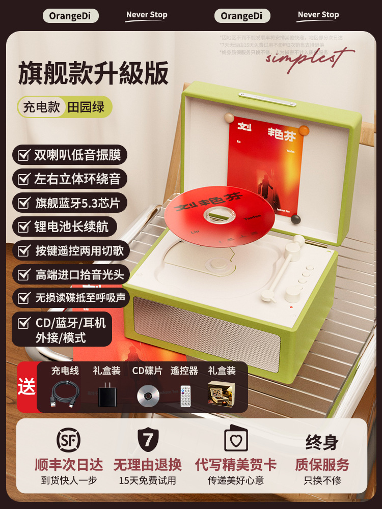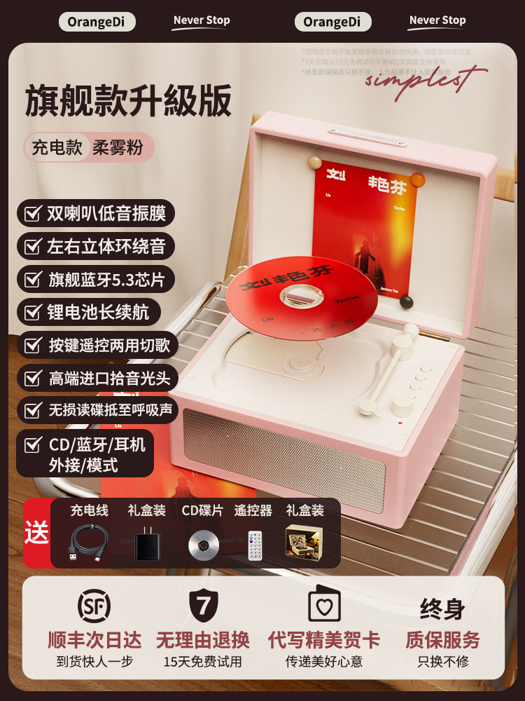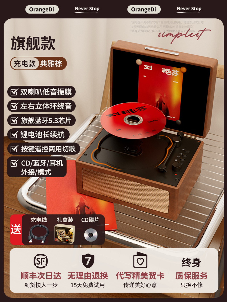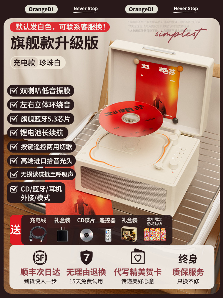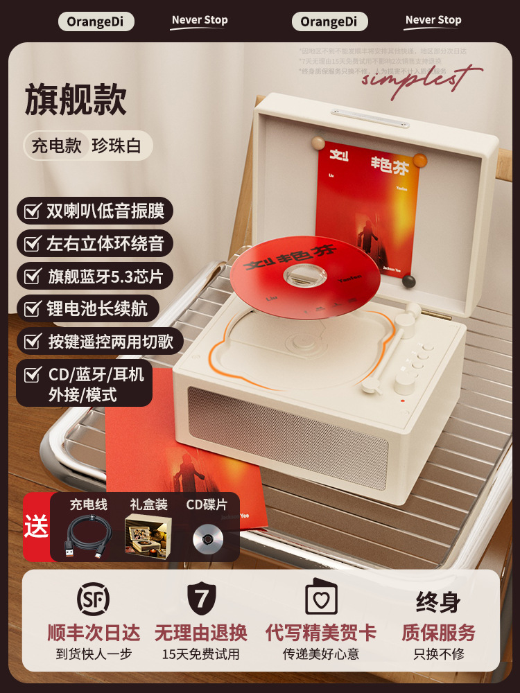 오렌지 디 레트로 CD 플레이어 음악 앨범 블루투스 스피커 플레이어 오디오 CD 휴대용 생일 선물스토어 가기