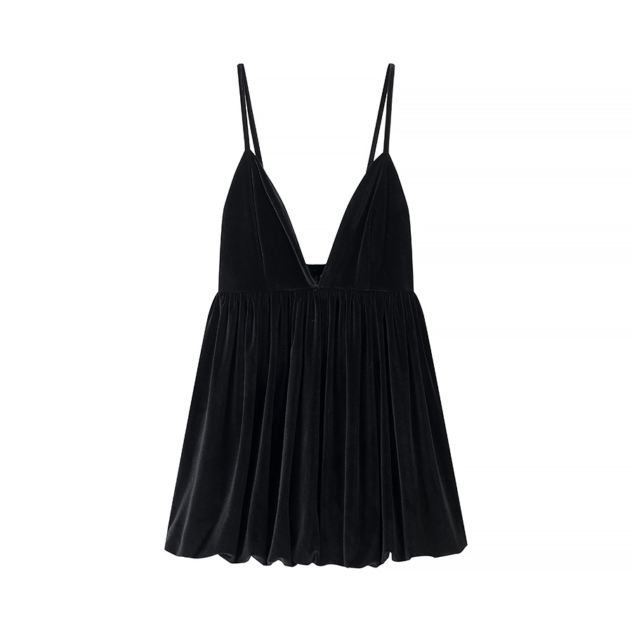UC & ZA 국경 아마존 여성 의류 유럽과 미국 스타일 프랑스 벨벳 섹시 딥 V 하이 허리 스트랩 랜턴 원피스