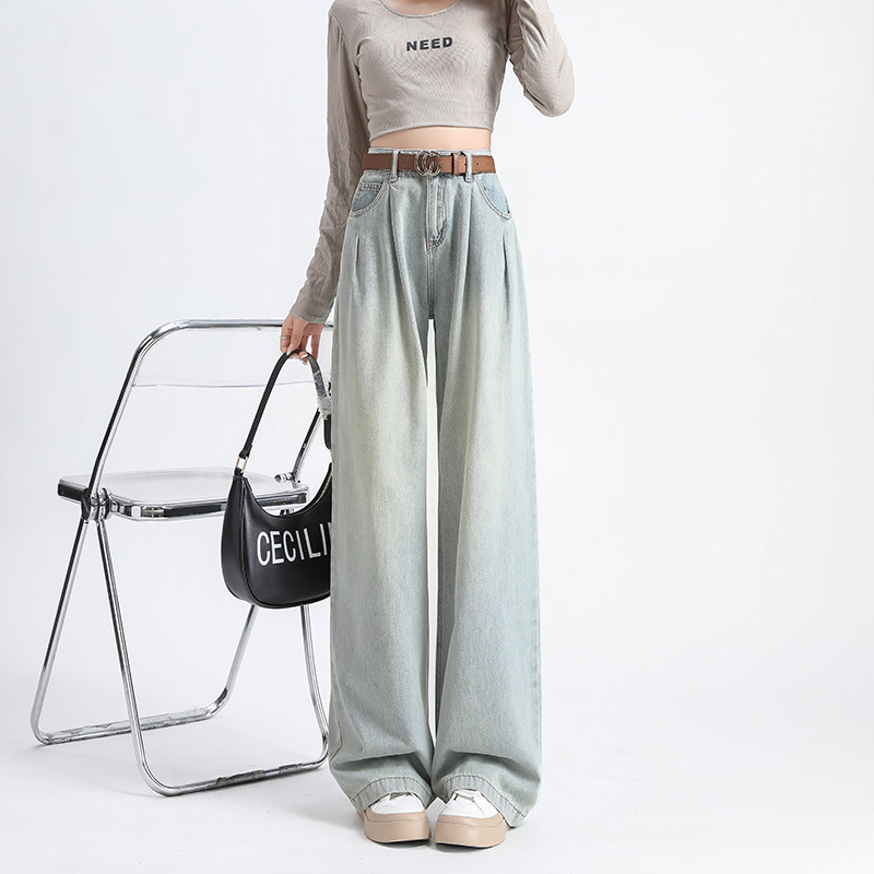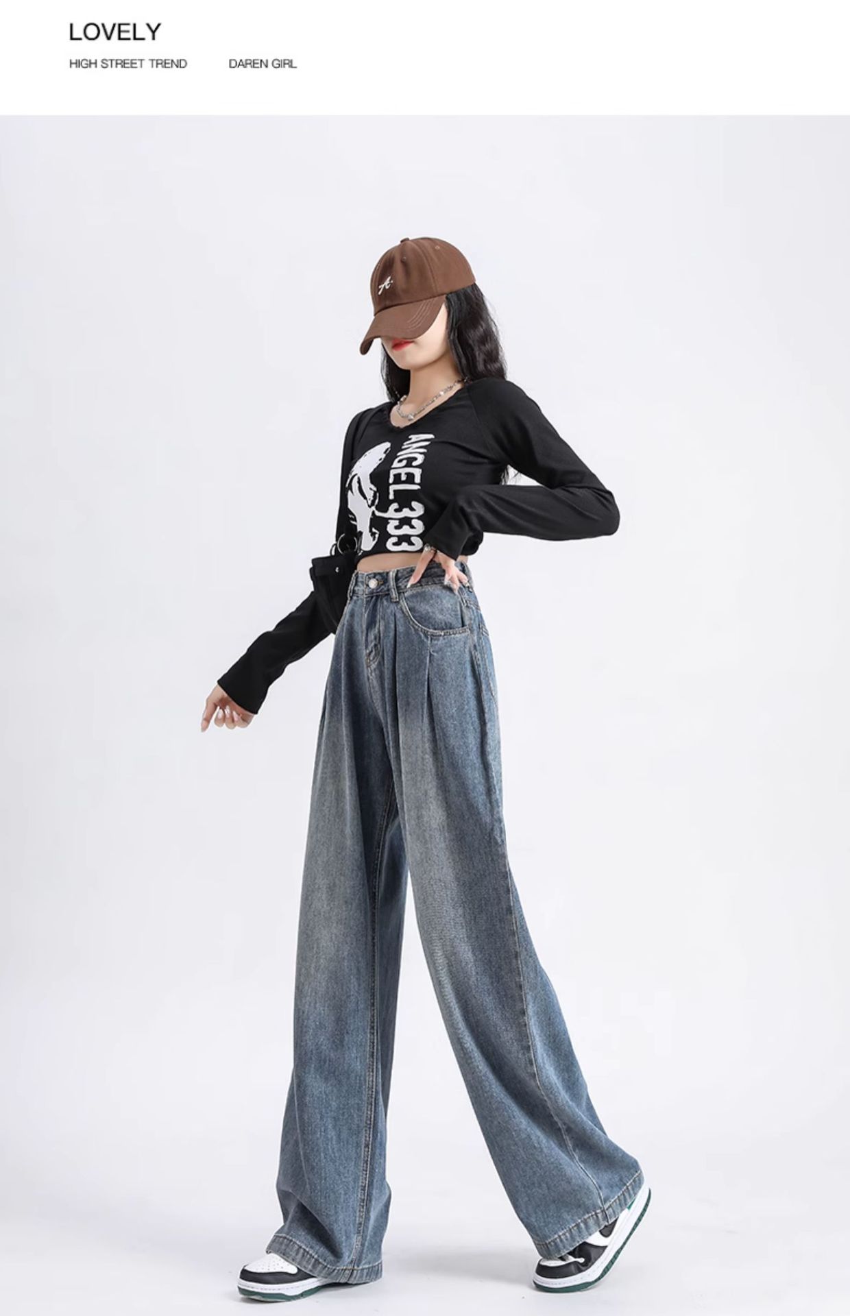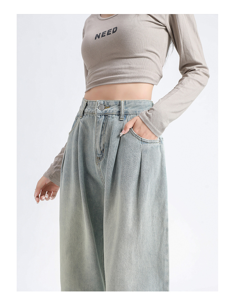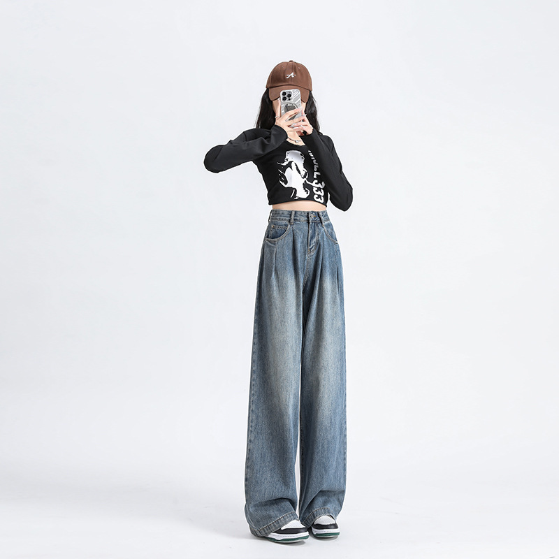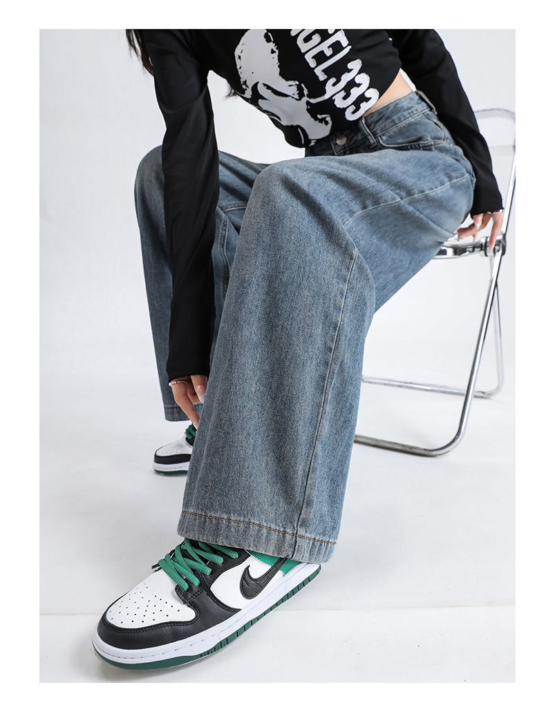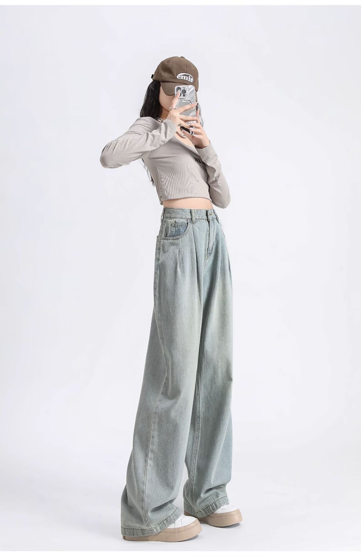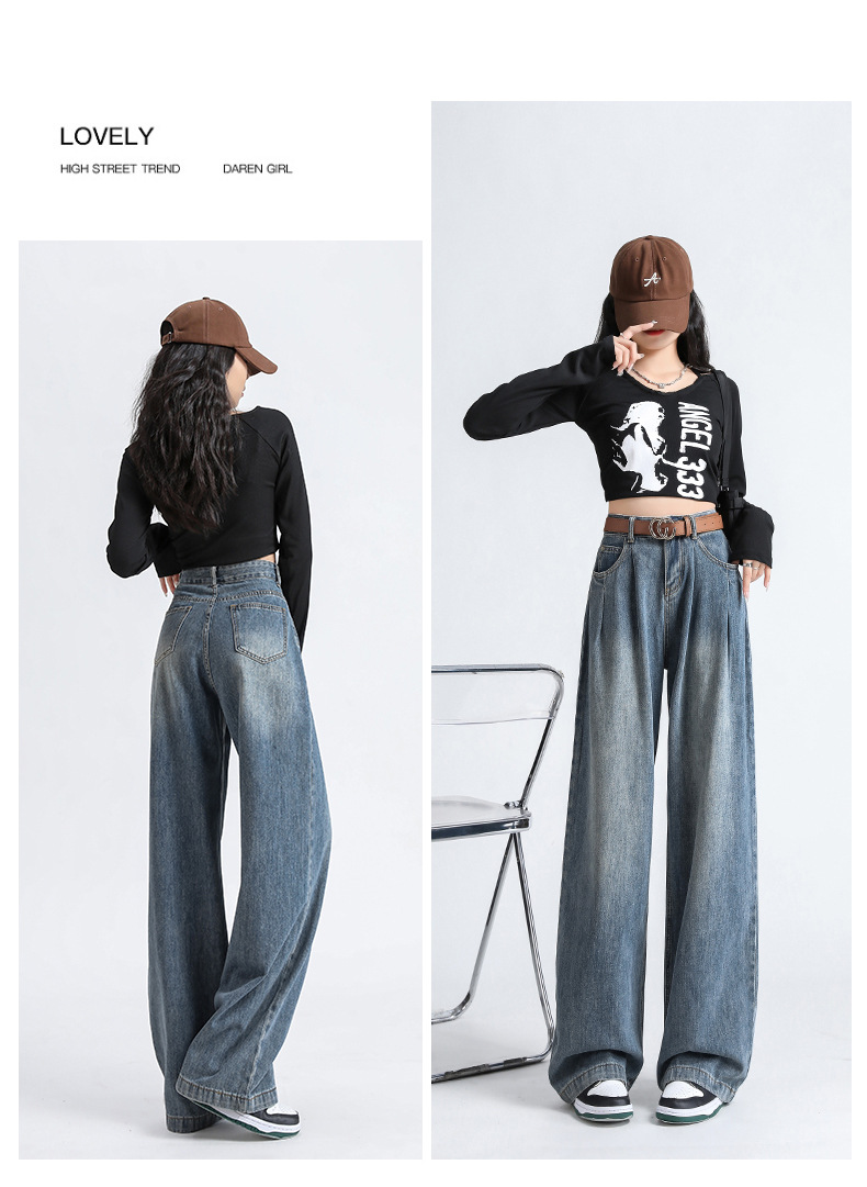 배 모양의 피규어 레트로 와이드 레그 청바지 여성용 하이 웨이스트 힙을 덮는 벨리 커버 슬리밍 Sag Loose All-Matching Pants 여성스토어 가기
