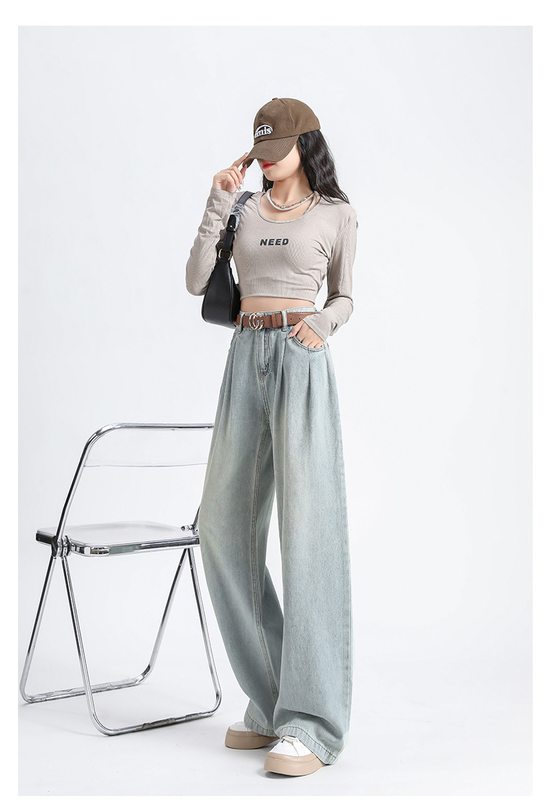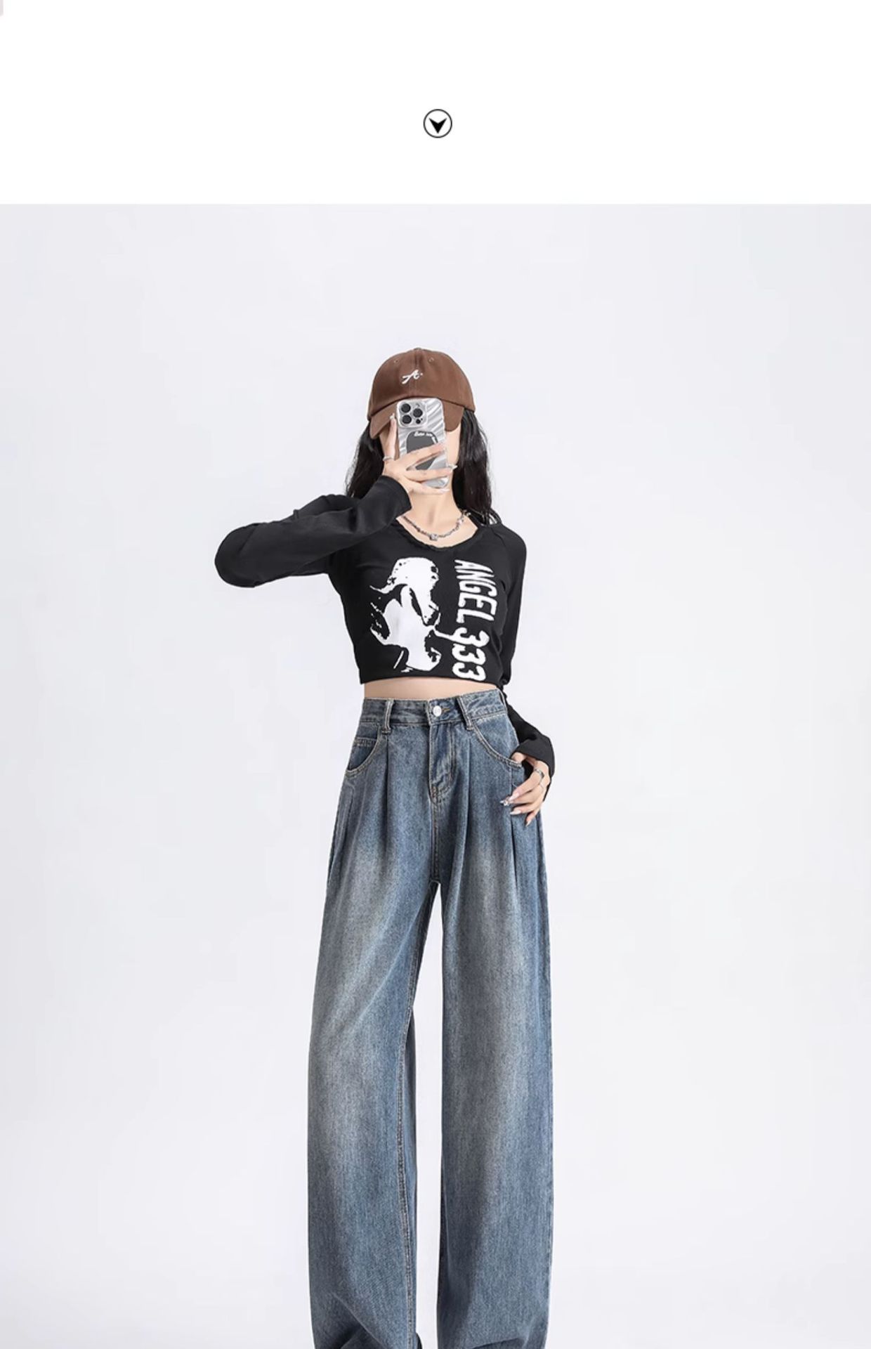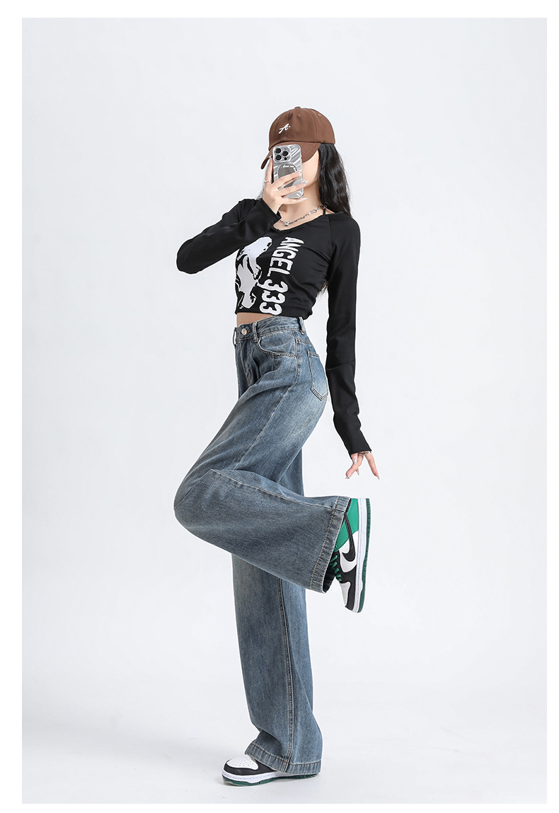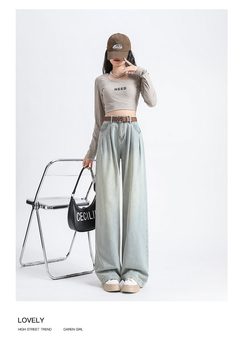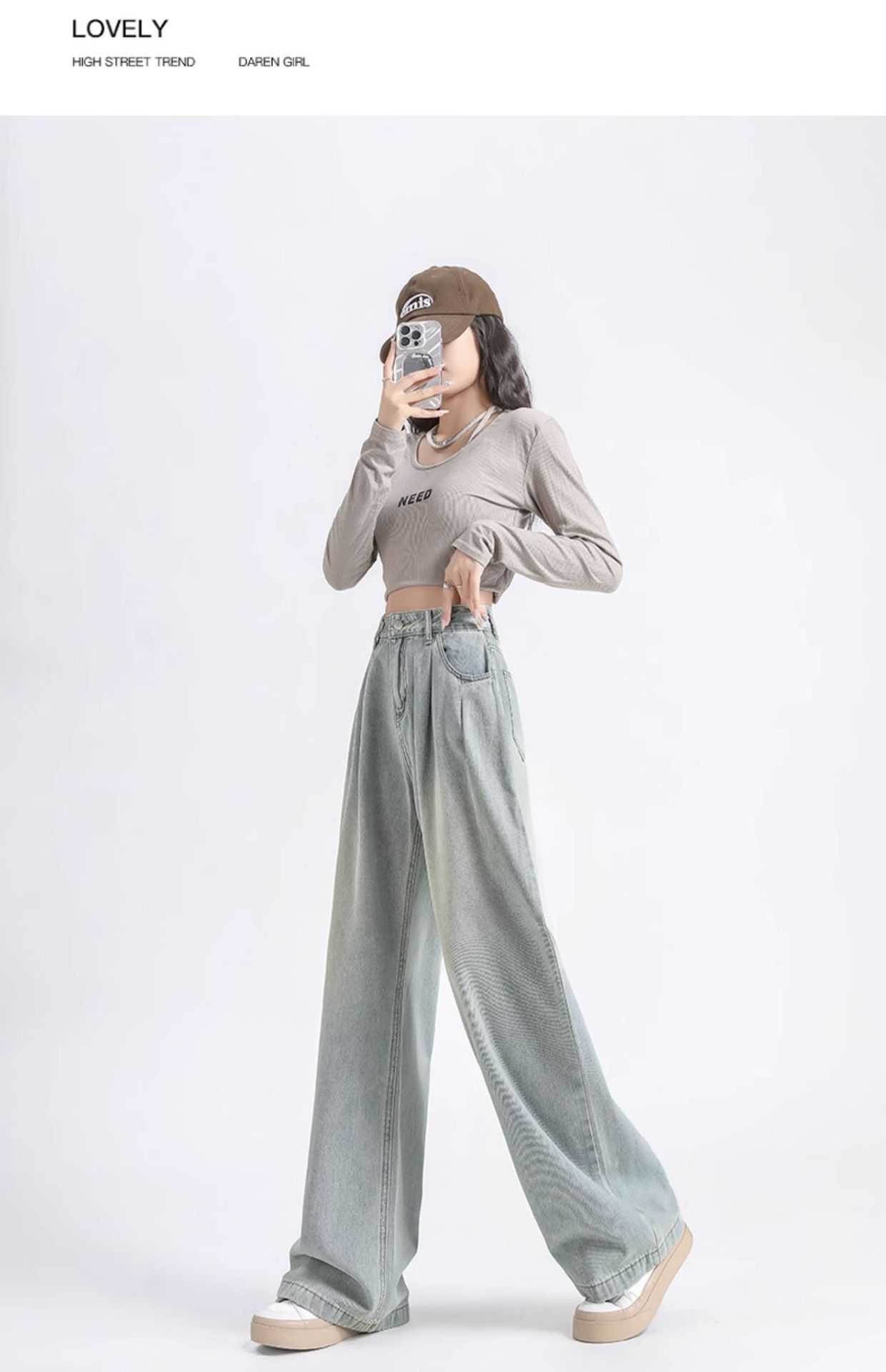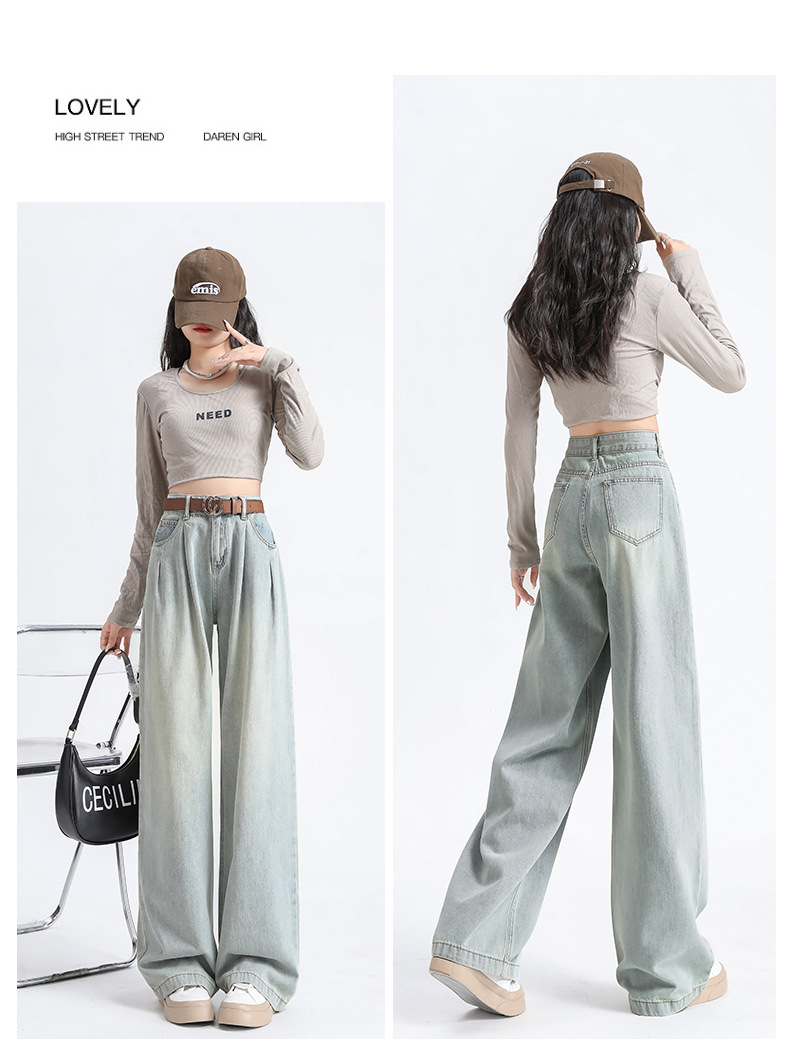 배 모양의 피규어 레트로 와이드 레그 청바지 여성용 하이 웨이스트 힙을 덮는 벨리 커버 슬리밍 Sag Loose All-Matching Pants 여성스토어 가기